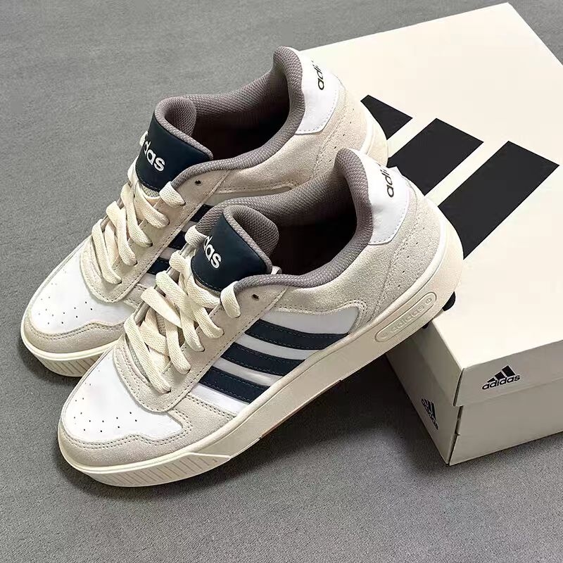 谁懂啊!这双阿迪达斯D-PAD CLASSIC真的长在我审美点上了😭 奶白+藏蓝的配色,复古又清新,不管是学生党还是打工人都能轻松hold住! ✨ 颜值暴击 - 奶fufu配色:米白翻毛皮+藏蓝三条杠,温柔又有质感,自带复古滤镜,上脚直接变身韩系欧尼/美式少年。 - 细节拉满:鞋头透气孔+后跟小锯齿设计,既有篮球鞋的硬朗感,又不失板鞋的休闲感,细节控狂喜! 👟 实穿体验 - 脚感在...