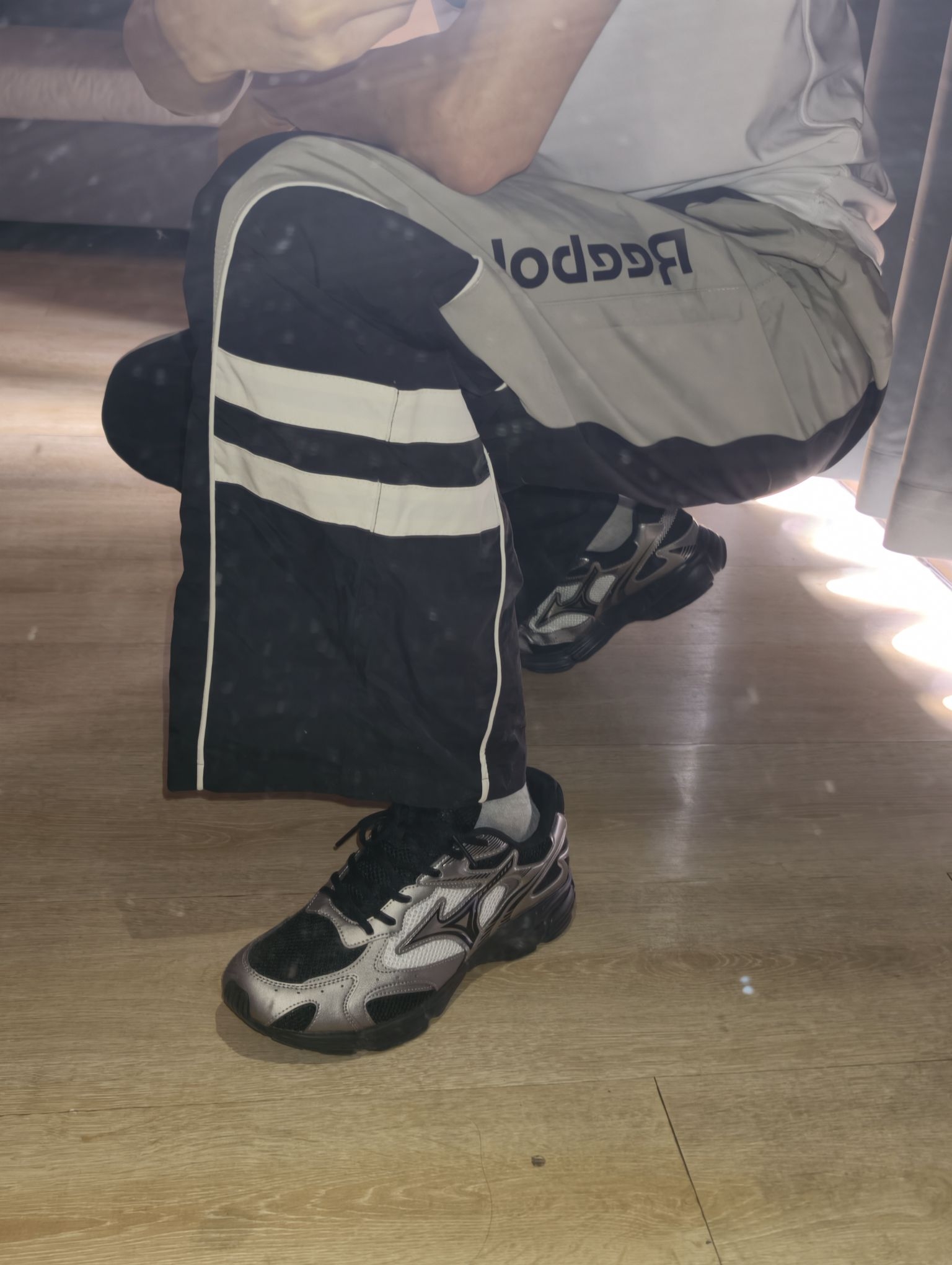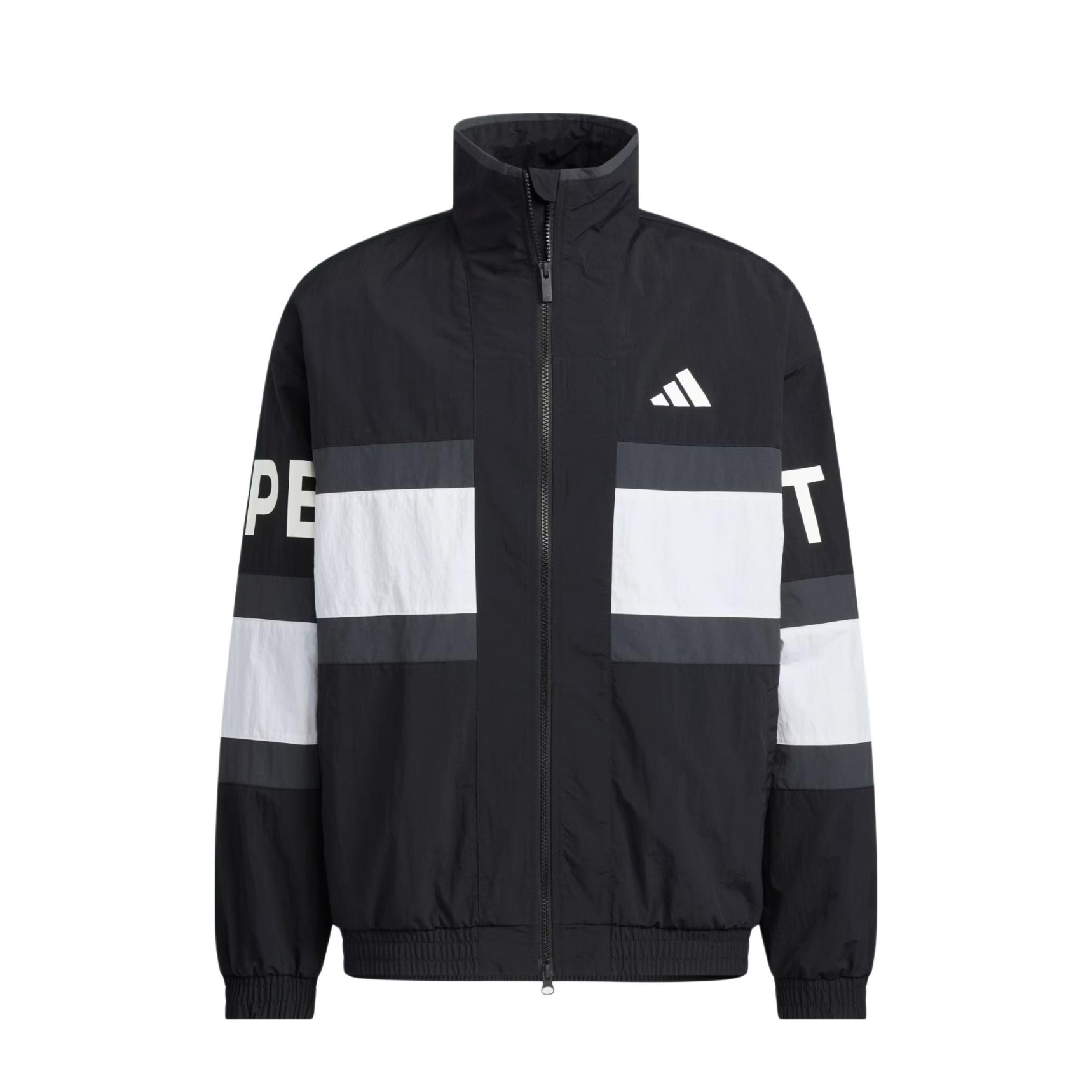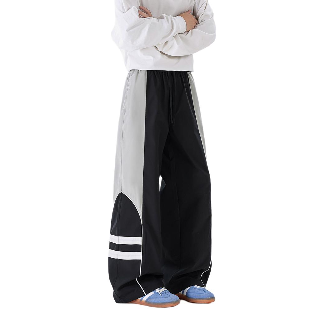 这件黑白拼接运动外套走的是复古街头风,大面积黑色+白色块的设计很有辨识度,立领和宽松版型也很有90年代运动服的感觉。面料看起来是轻薄的尼龙材质,适合春秋季叠穿或单穿。优点是视觉冲击力强,能轻松打造随性的街头感;缺点是这种亮面尼龙材质容易显皱,需要注意打理。