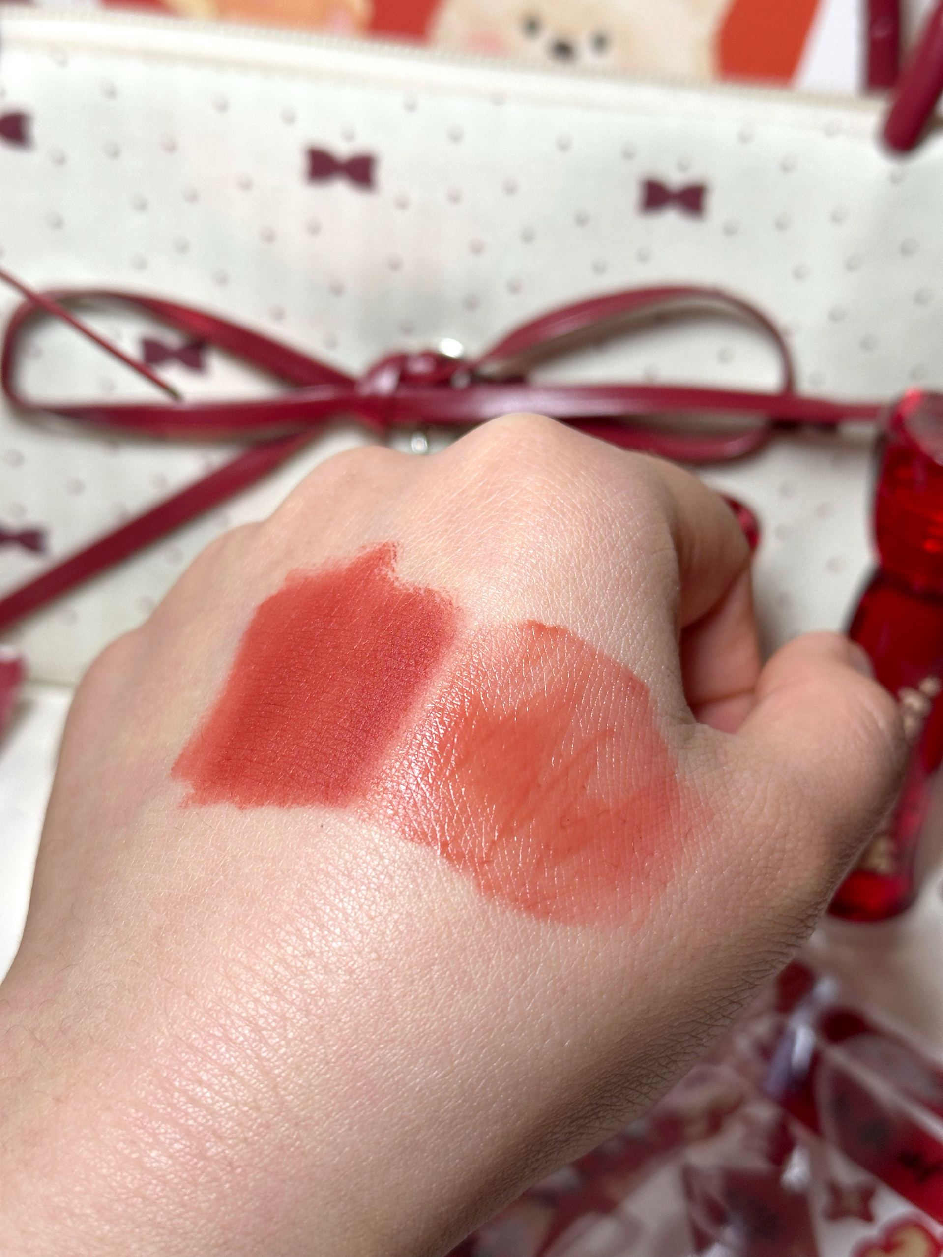 珂拉琪°新年礼盒很赞哎 大红色很应景 马年限定不一样的红,好有新年氛围~还有小对联贴画 太可爱了叭 一整套礼盒里有气垫+两支唇釉十一个包包还有一个贴画对联! 任何一个女孩收到这套都很难不开心叭公 气垫妆效很绝,细腻服帖 不卡粉 不脱妆持妆遮瑕效果都不错! 口红颜色巨好看念 AB370焦点红枫(枫糖红栗色) 很显白天 挺滋润的不显唇纹 姐感拉满的御系风~ R510闪光莓果(碎钻草莓色) 秋冬显白还能...