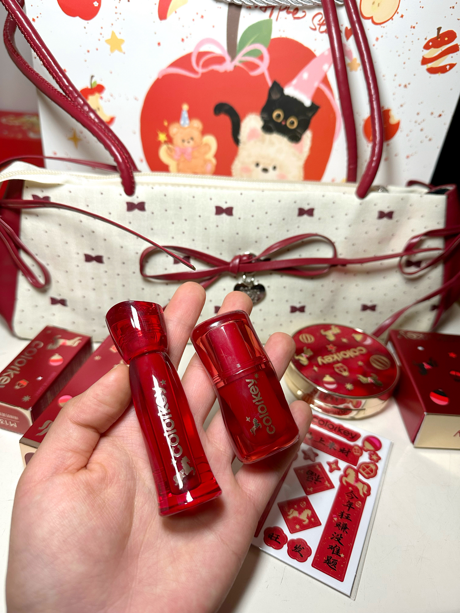 本篇笔记关联了【马年限定】colorkey/珂拉琪 水雾升级版唇釉 不易沾杯 2.5g 【不染唇版】O509橘光星河、【限定】colorkey/珂拉琪 捏捏丝绒唇泥 不沾杯 3g M13枣红泥 、【马年限定】colorkey/珂拉琪 奢宠鱼子酱持妆磨皮气垫 12g 01象牙白 白皮黄皮适用等商品,为用户提供真实的使用体验和购买参考。