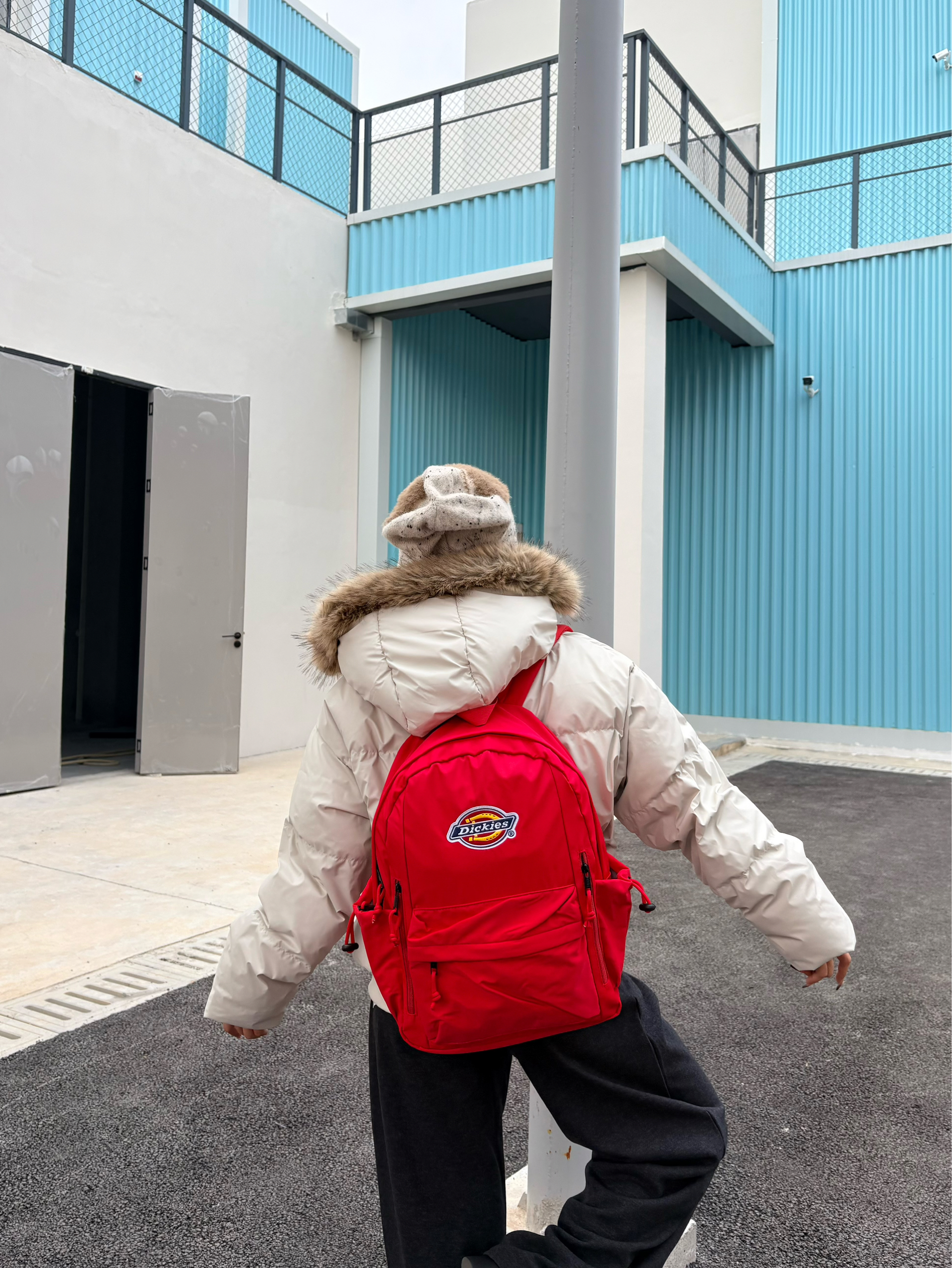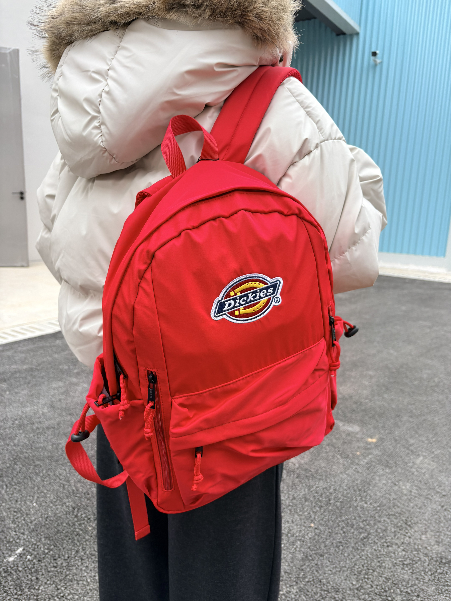 入秋之后一直在找一款实用又好看的书包,Dickies这款红色的真的戳中我了。💟 日常通勤装电脑、逛街装杂七杂八的小物件都很能装 红色特别亮眼,搭配我的羽绒服和休闲裤🎒 走在街上回头率还挺高,关键是背了好久也没变形🥰 实用性和颜值都在线,算是近期挖到的宝藏单品了🍁