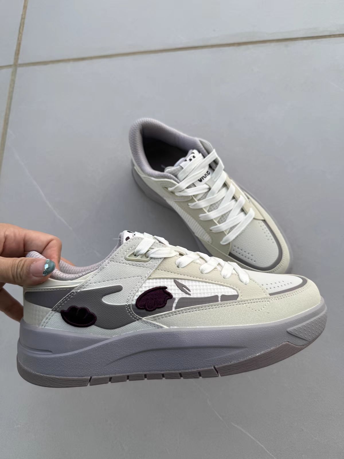 这双鸿星尔克电池熊猫Lite6真的太会了!奶白与灰紫的撞色设计,加上鞋侧的国风祥云刺绣,温柔又不失个性。厚底设计悄悄增高,脚感软弹,搭配牛仔裤或运动裤都很出彩,是日常通勤和校园穿搭的百搭之选,百元价位就能get到的国潮质感,闭眼入不亏!