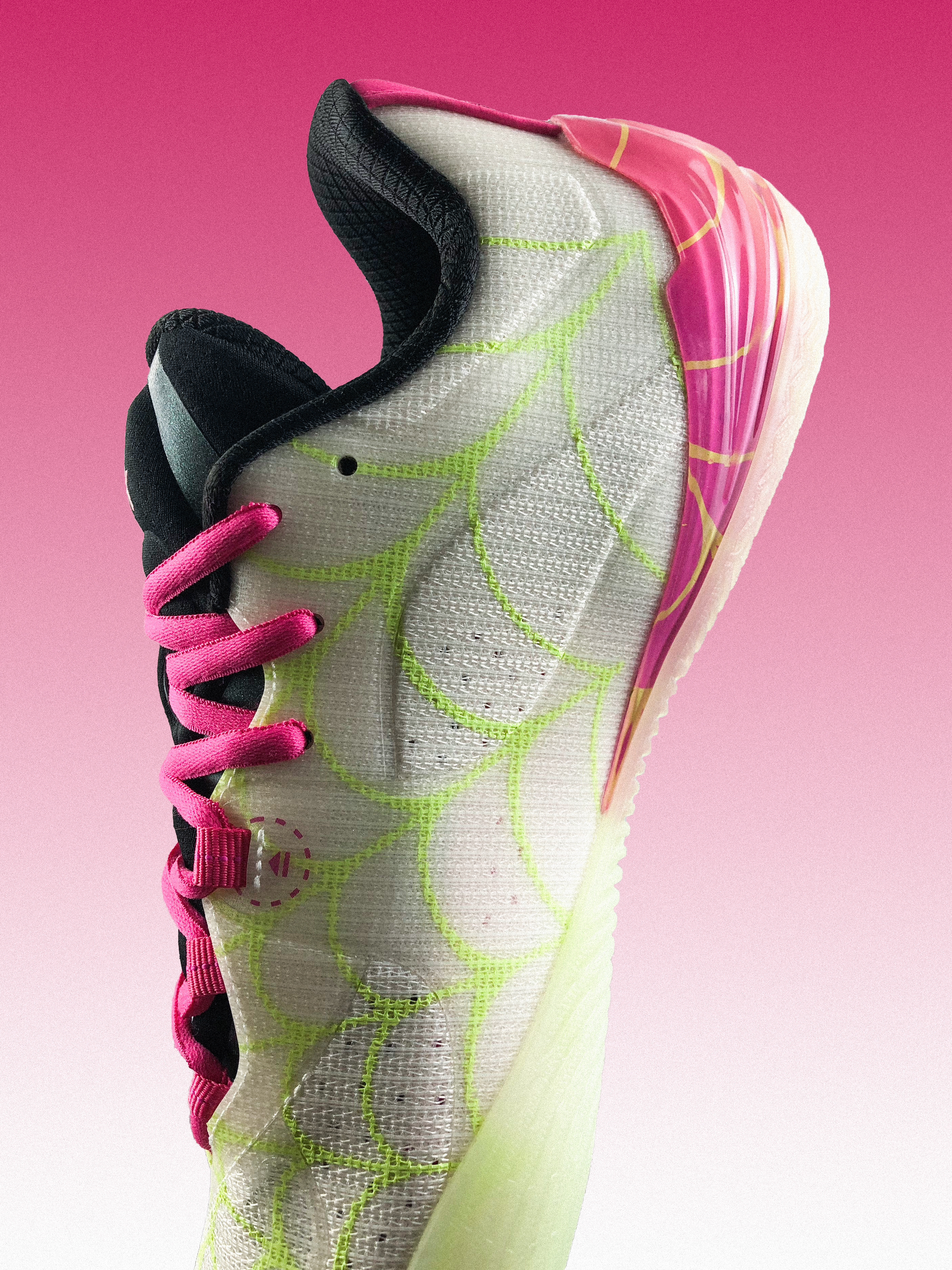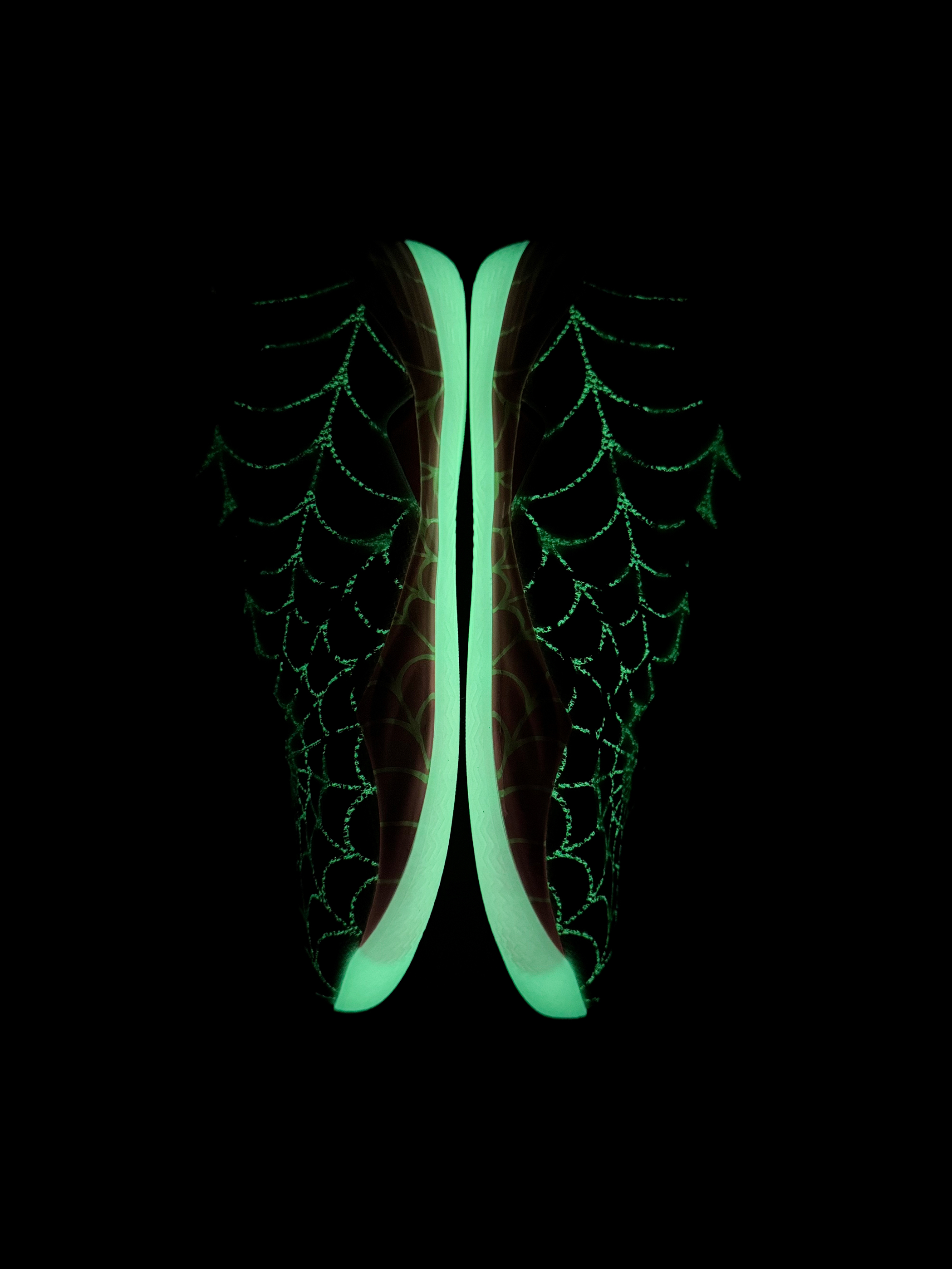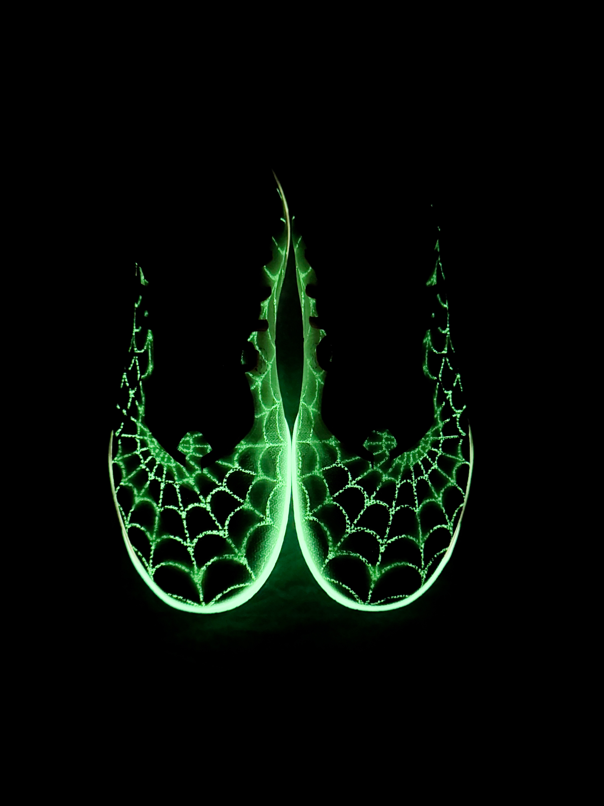 虽然无双EX版已经出了好几个配色,但无双的配色也没停,我这双就是近期的新配色:蜘蛛。配色由粉色、荧光绿和黑色组成,乍一看有点格温蜘蛛侠的感觉。不过,最重要的不是它原本就很酷炫的外观。而是当你关上灯后,鞋子呈现出非常炸裂的夜光效果(最后2张图)。我发现这个夜光效果的时候很惊讶,就好像解锁了隐藏皮肤一样。怎么样?看过的兄弟是不是和我一样,被惊艳到了。特别是整个鞋面的夜光蛛网效果,很帅!