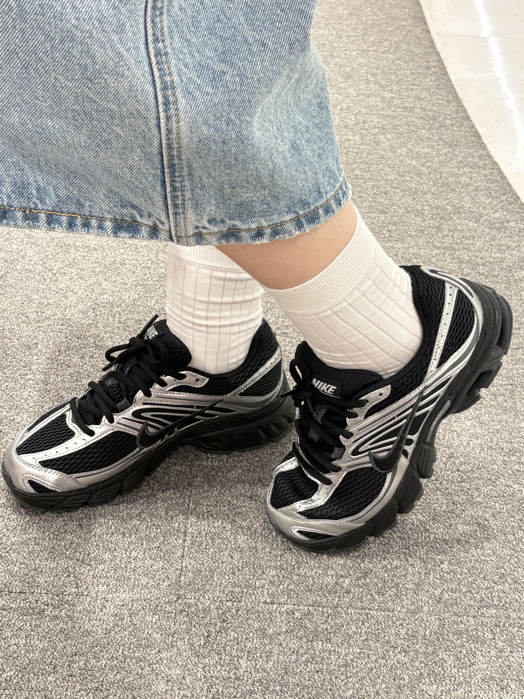 鞋身以黑色为主色调,搭配银色线条装饰,网面材质透气,厚底设计自带复古潮流感,经典的 Nike Swoosh 标志醒目,时尚又百搭,很适合打造街头潮流穿搭 。👽 黑银配色超绝,自带未来感滤镜✨ 网面设计透气又潮,搭白袜+牛仔裙,松弛感拉满,出街被追着问🔗 脚感像踩☁️ 暴走不累,复古回潮必入款,锁死❗