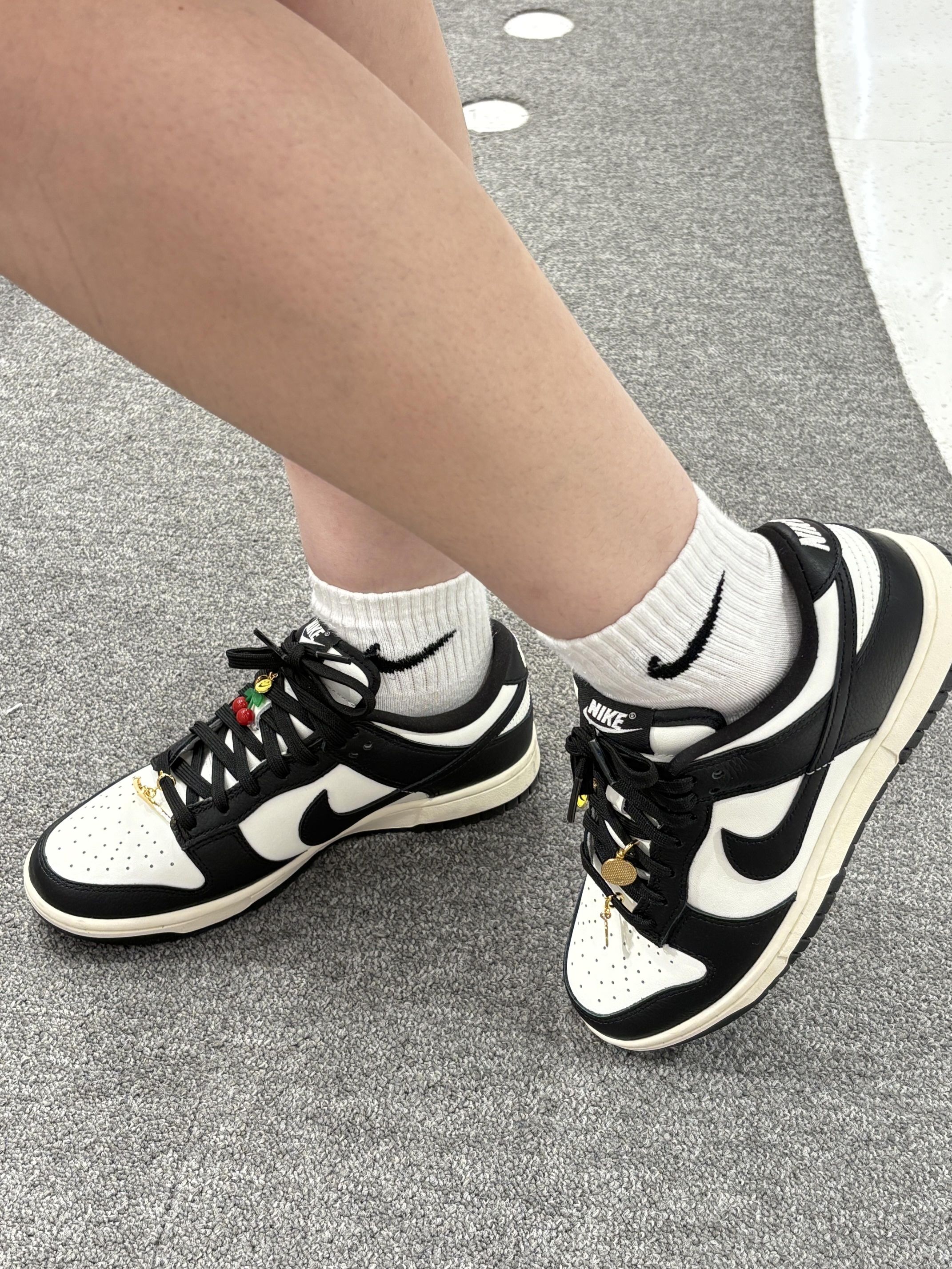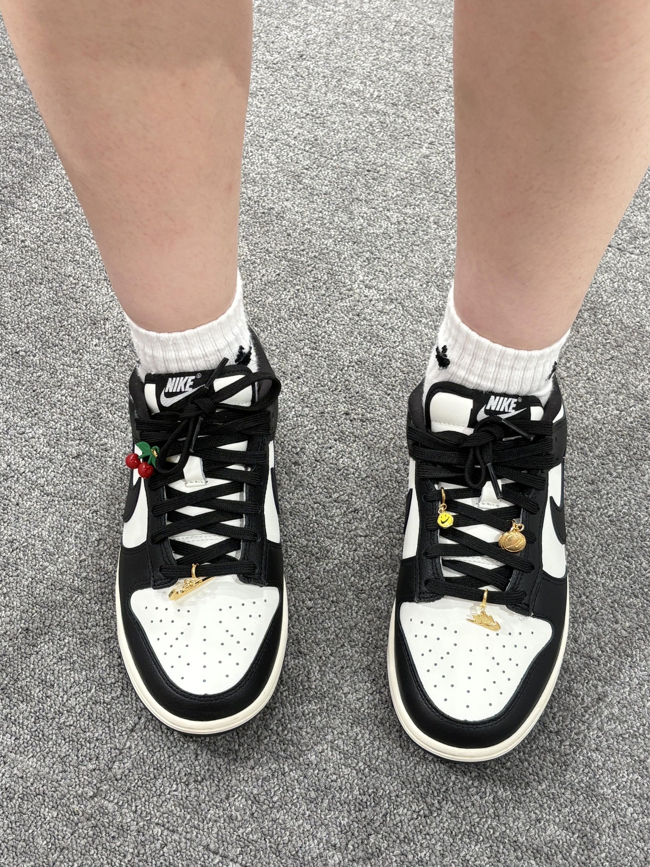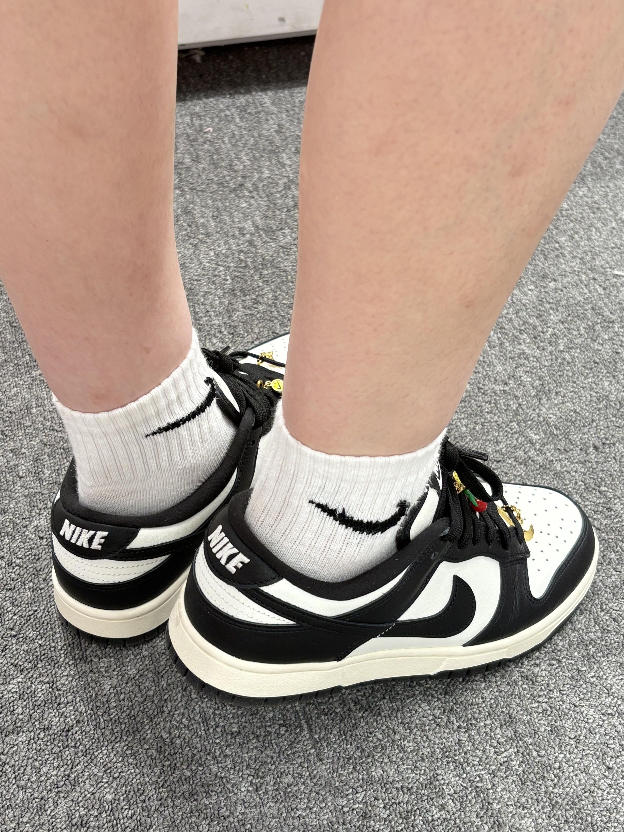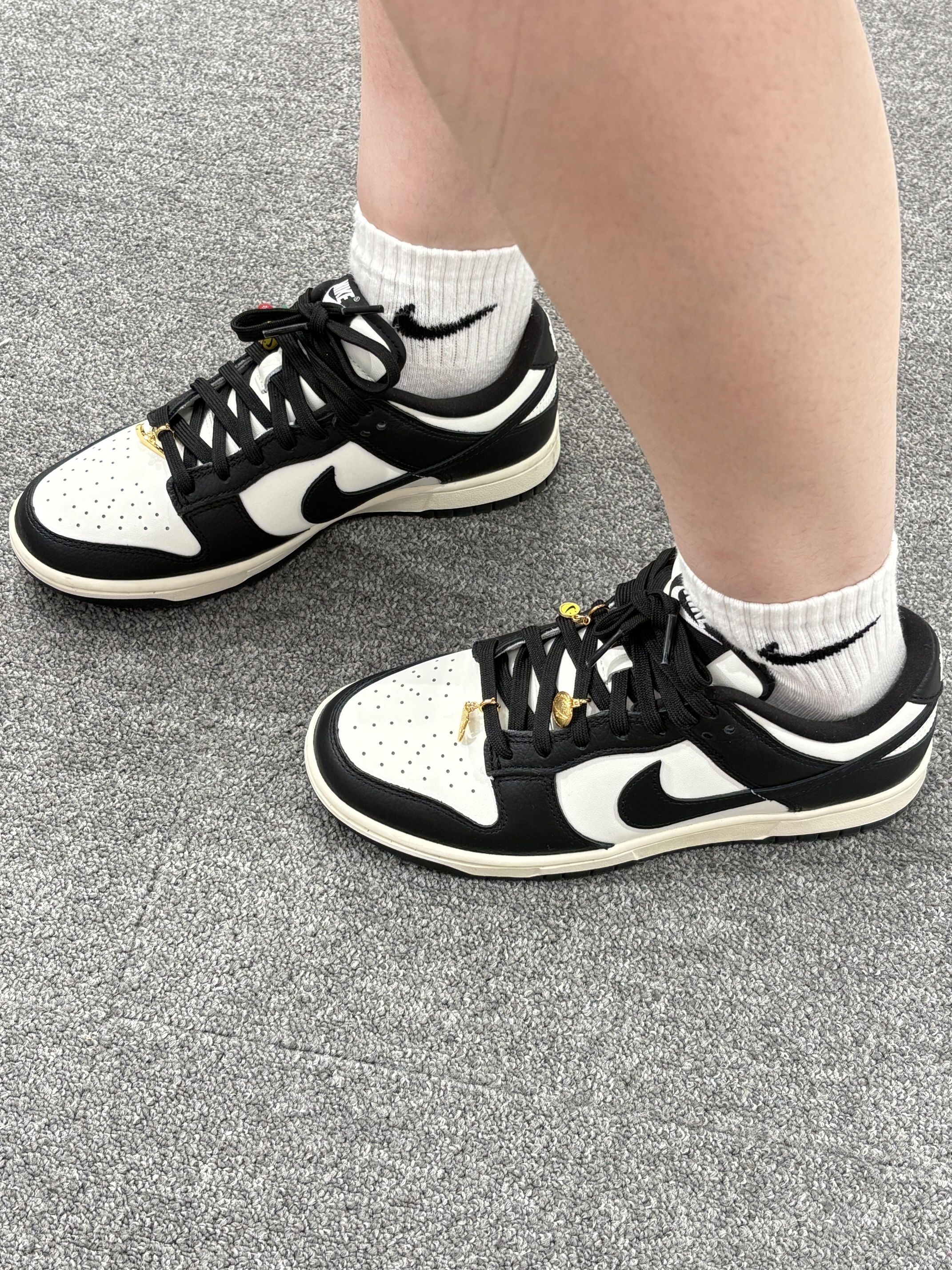 Nike Dunk Low 真的太懂穿搭了!🙈 谁能拒绝黑白配色的Nike Dunk Low啊!! 简约又高级的黑白撞色,怎么搭都不出错,休闲风、运动风统统能hold住~鞋身质感也很棒,上脚舒适感拉满,走很久的路都不会累。🍹🍹 新品添加小金挂坠当鞋带装饰,瞬间让鞋子变得更有个性,朋友看到都问我要链接呢~✨✨