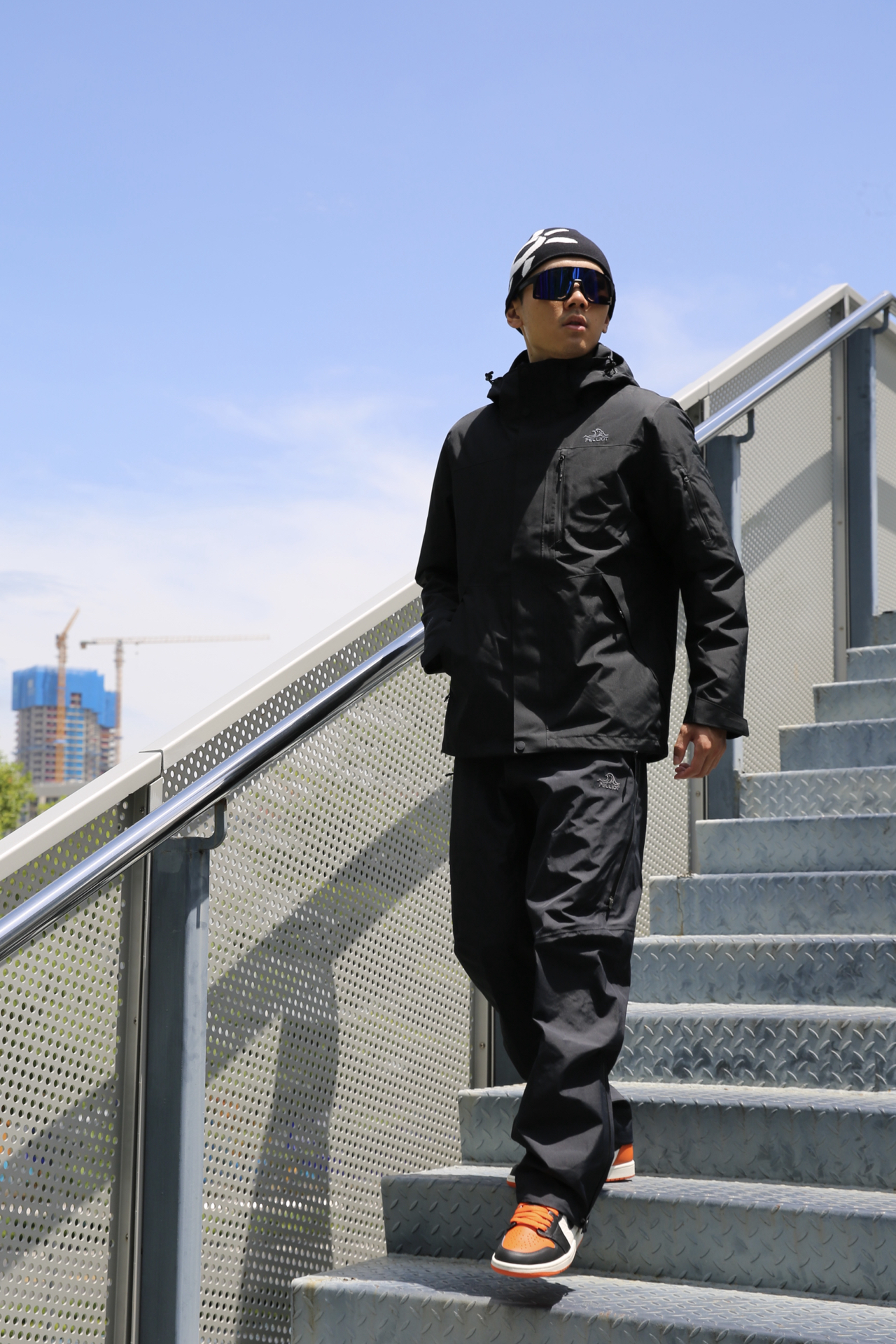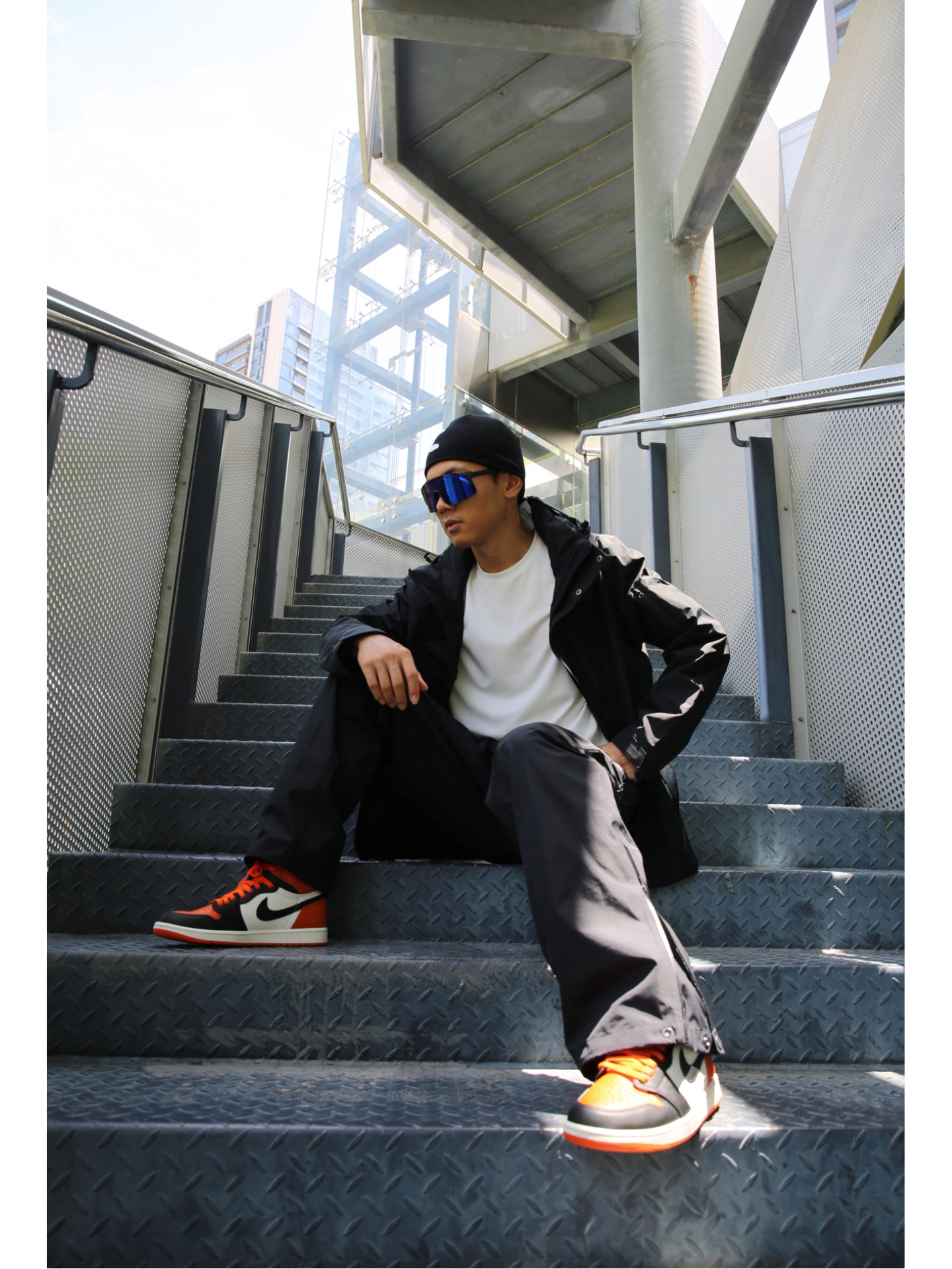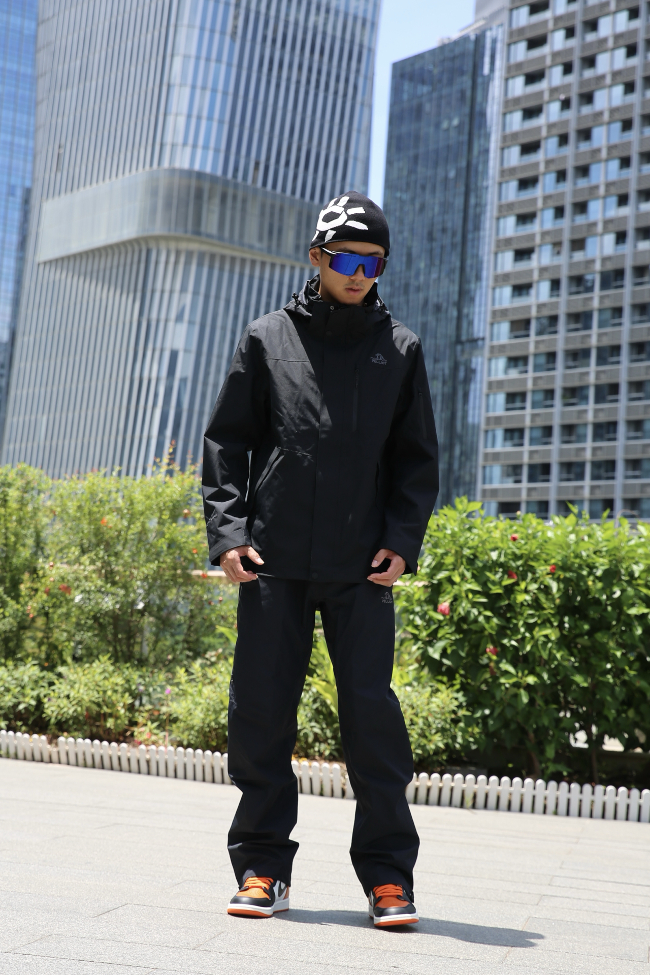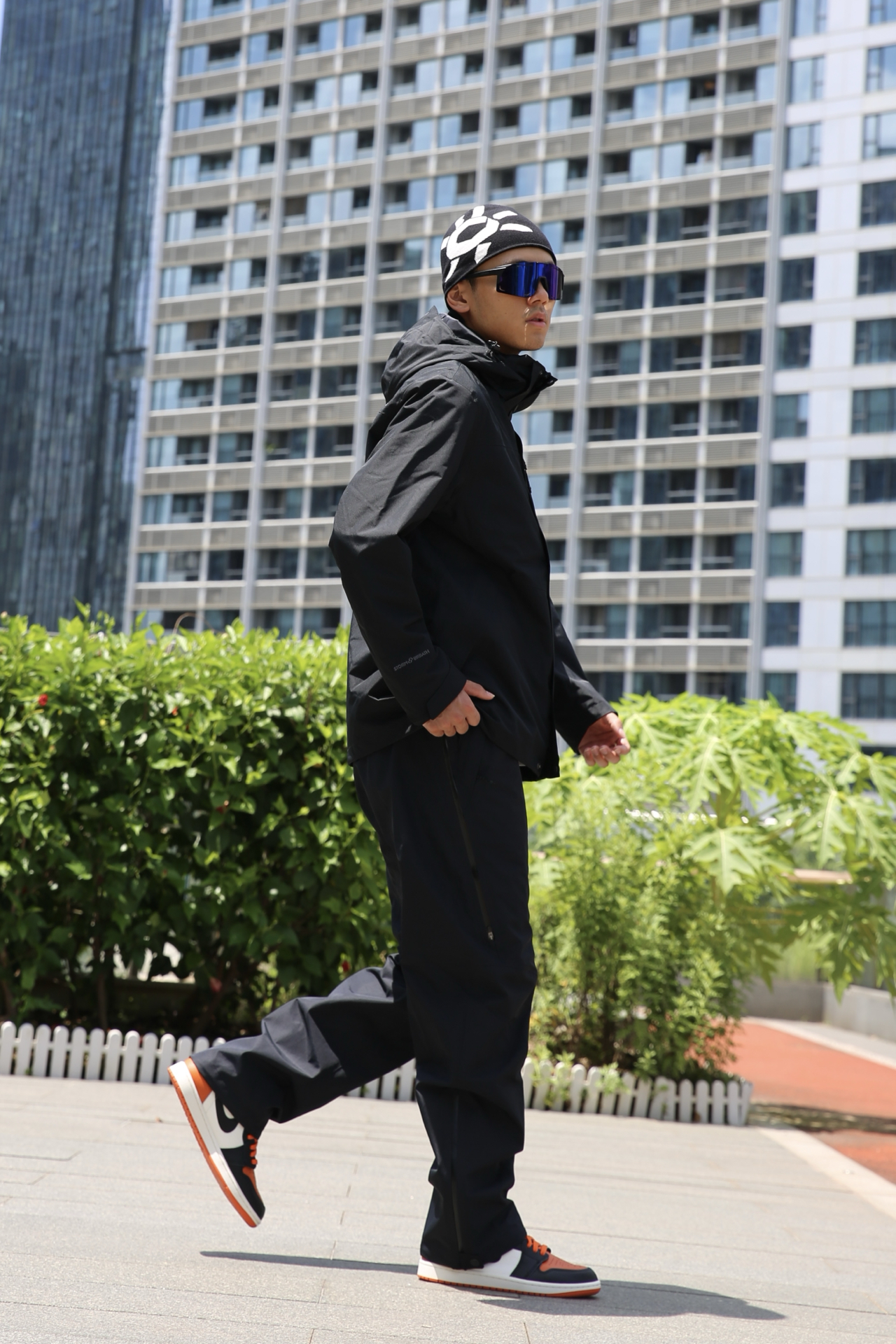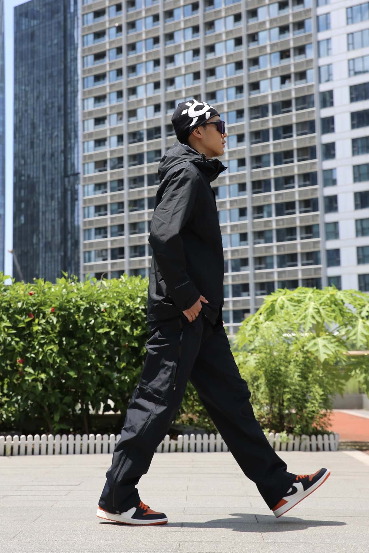 🏙️ 天气晴朗,一身黑也能穿出层次。 冲锋衣+冲锋裤打底,整体低调但不沉闷。 黑色冷帽和骑行眼镜做点缀,城市机能氛围直接到位。 🧡 脚下的Jordan 1 扣碎,黑白橙的冲击感刚好打破全黑的单调,在稳重和活力之间找到平衡。 🍃 这套属于那种城市穿梭感很强的搭配,行走在钢筋水泥中也很酷! #时尚爆品推手
