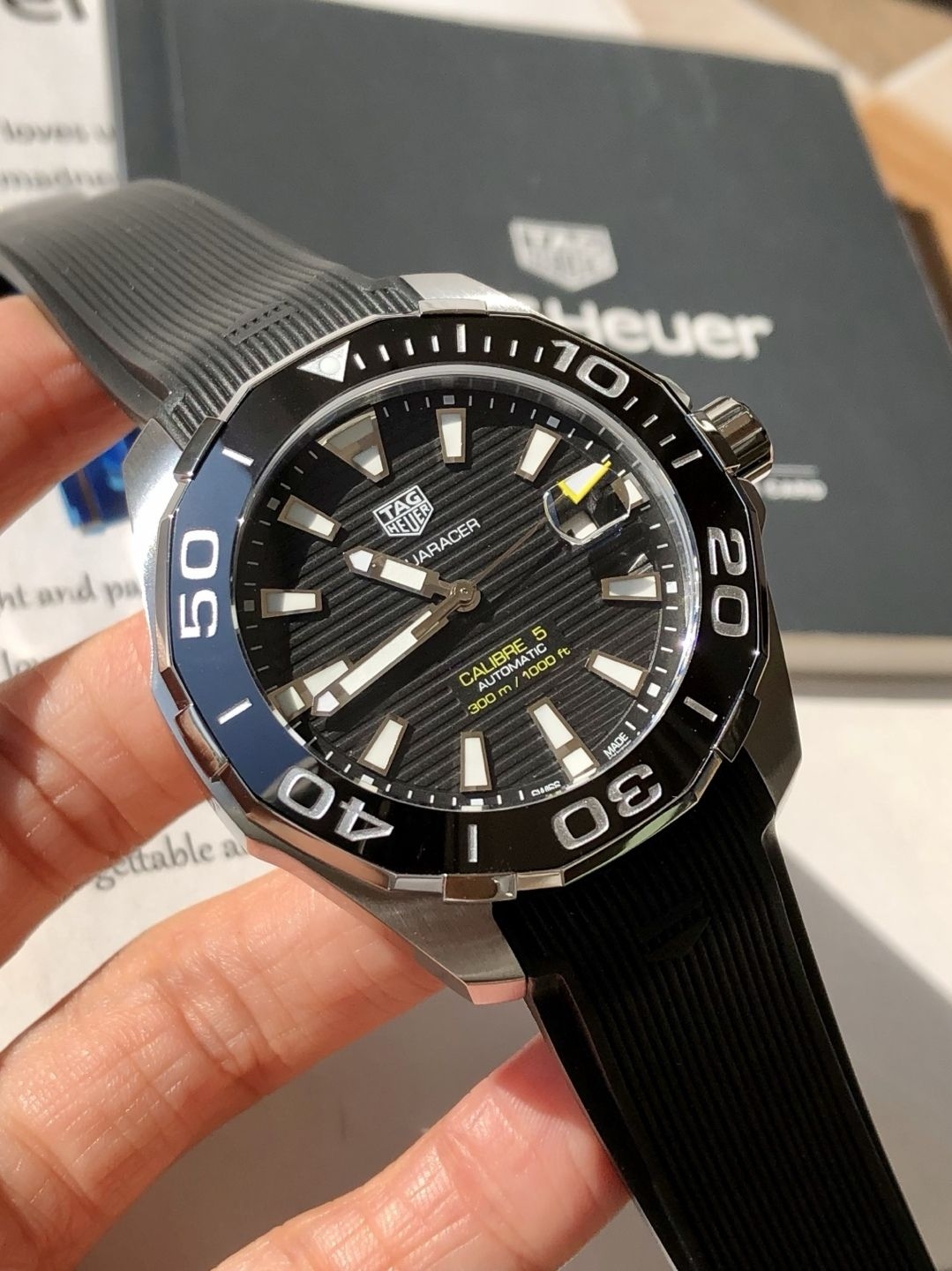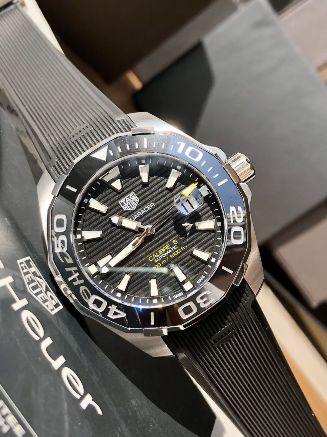 本篇笔记关联了TAG Heuer/泰格豪雅Aquaracer竞潜系列 石英腕表男潜水夜光防水手表 黑色WAY101A.FT6141等商品,为用户提供真实的使用体验和购买参考。