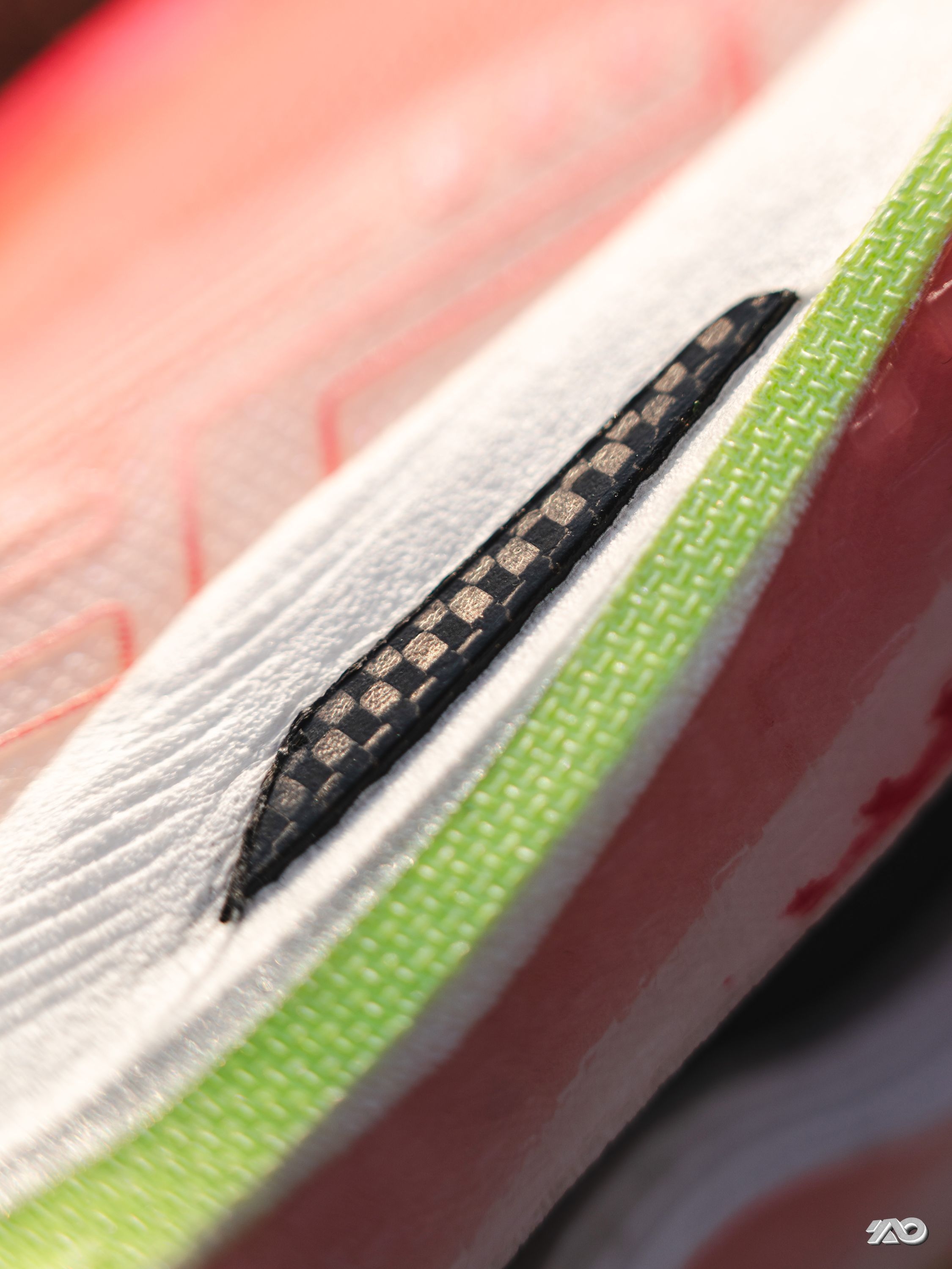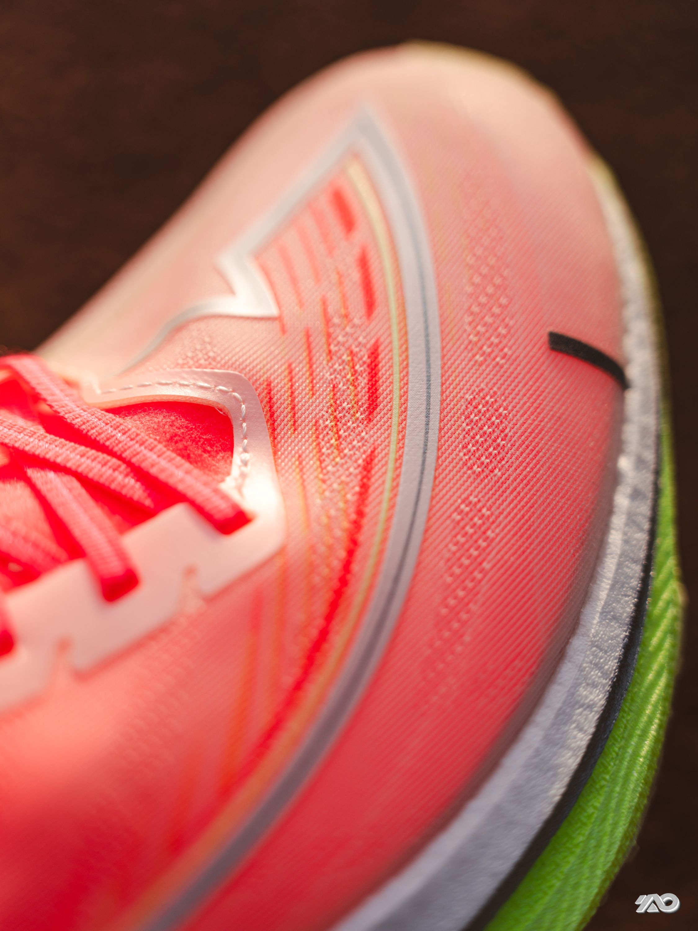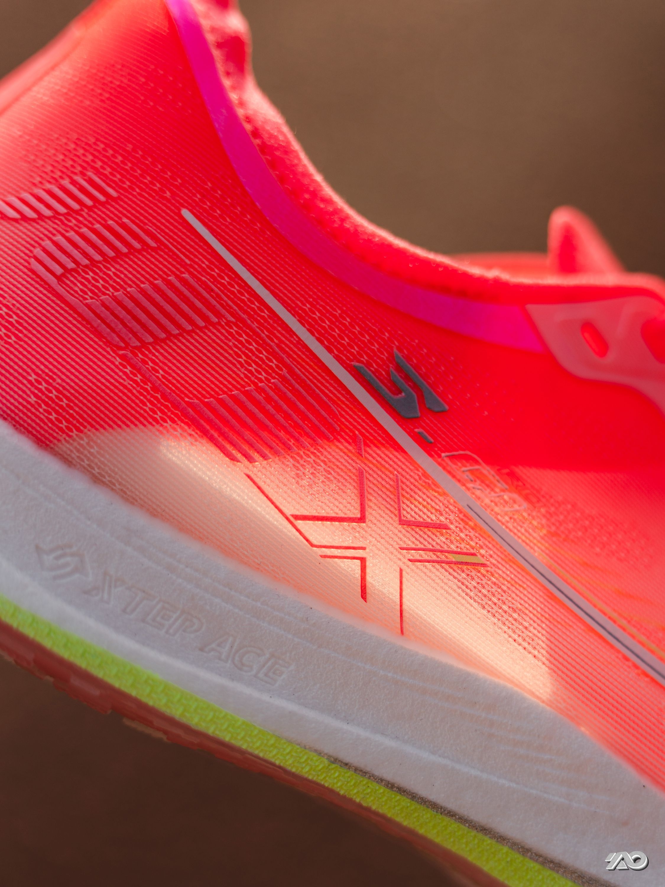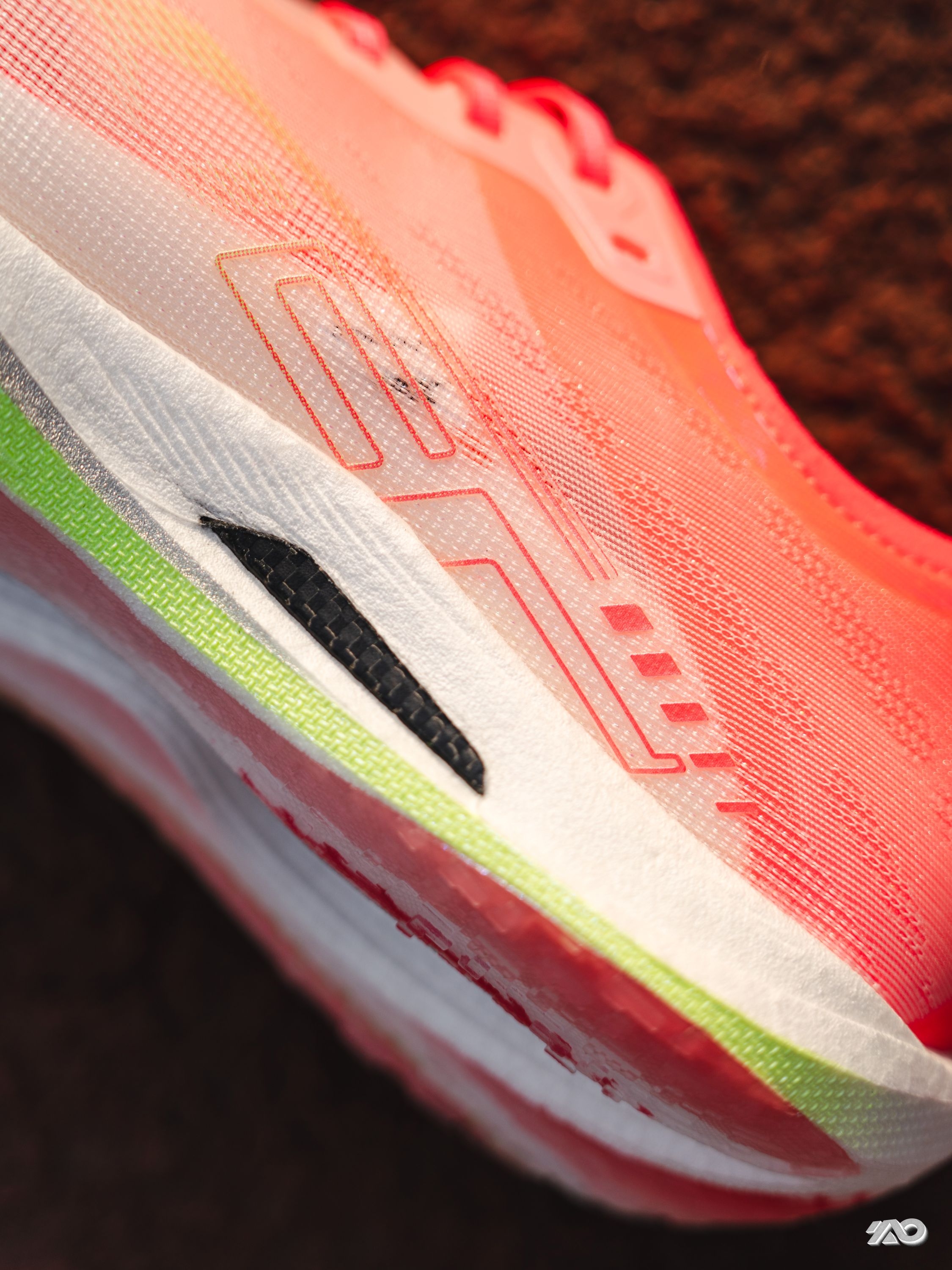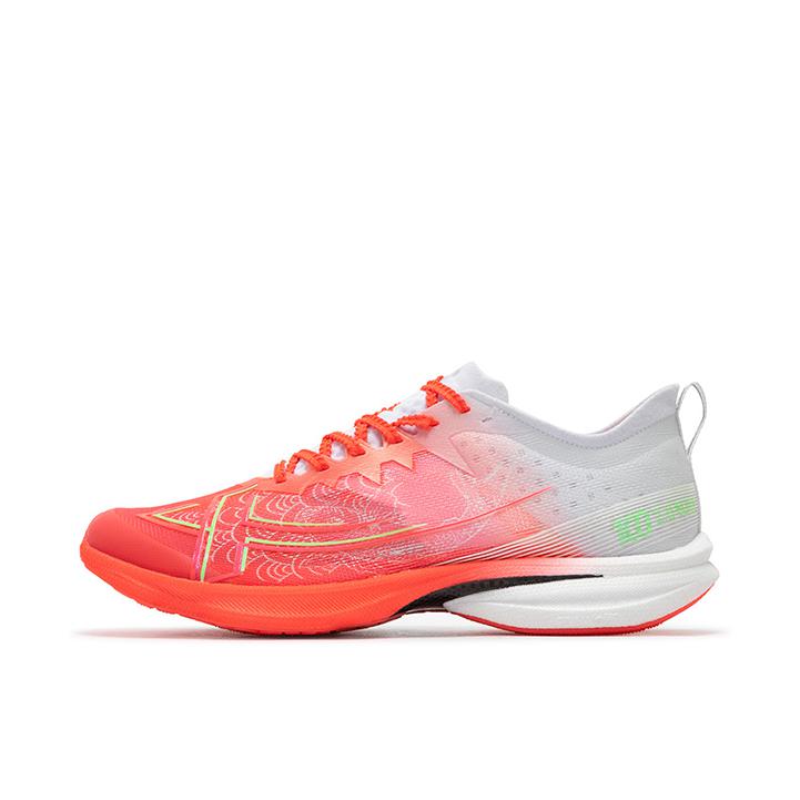 我先不写文字, 你们看下图, 是不是感觉这双鞋的侧面, 包括鞋底的上翘, 都非常的像钉鞋? 那现在可以听我啰嗦两句了: 超薄底+0坡差+镂空碳板, 这个上脚的感觉, 也真的很像没有了钉的钉鞋。 加上前掌的起翘, 会有一种负坡差的感觉, 虽然中底薄, 但是泡棉应该是调小了密度, 能踩出弹感,不会很硬, 碳板的刚性不算低, 更加适配有运动基础的学生。 过弯灵活不卡,直线加速也很给劲。 鞋楦又不像钉鞋...