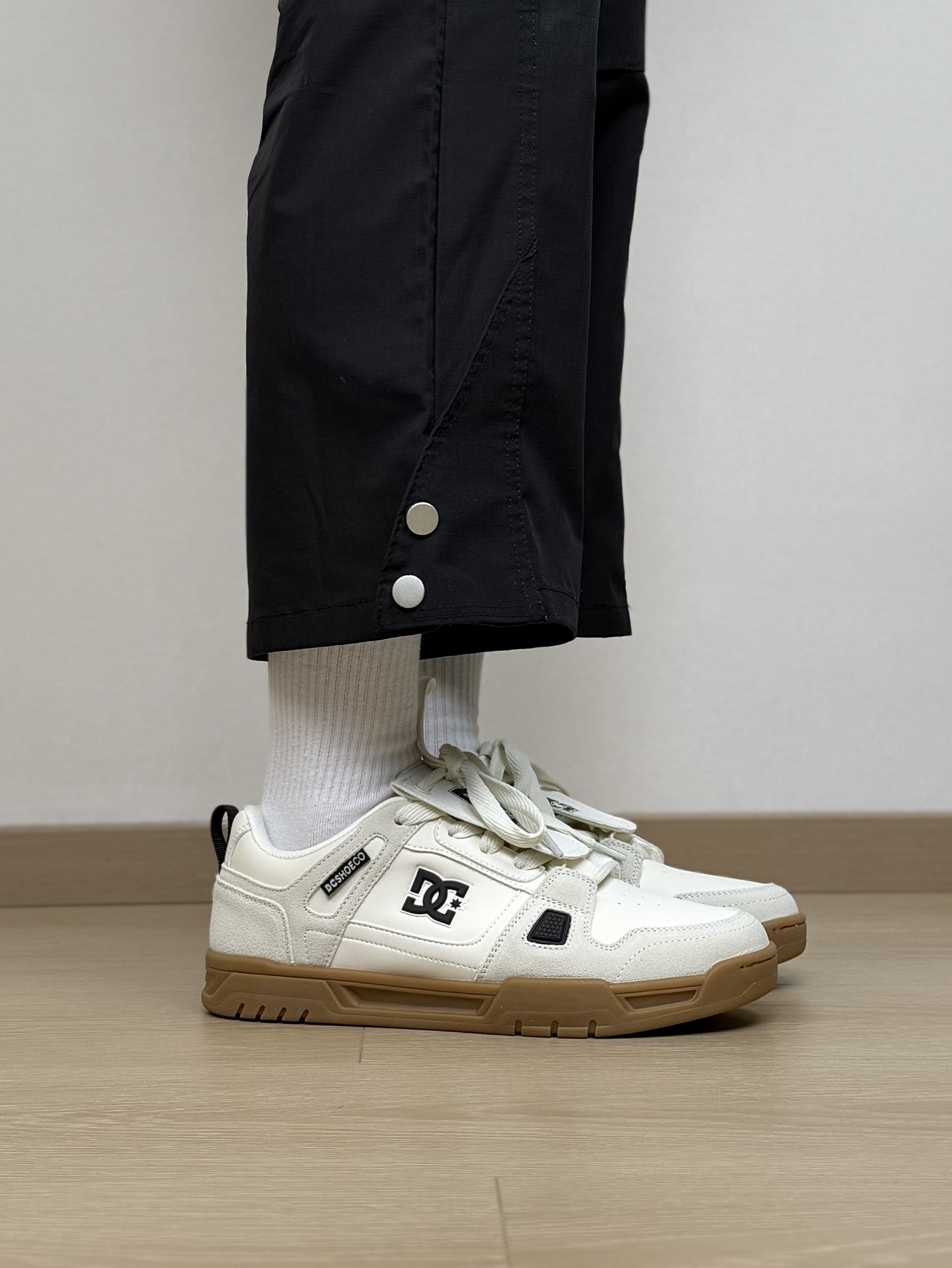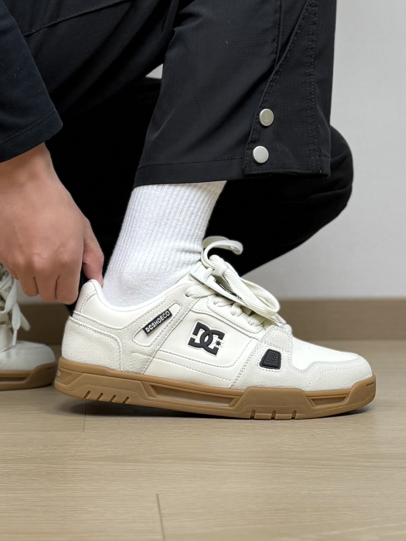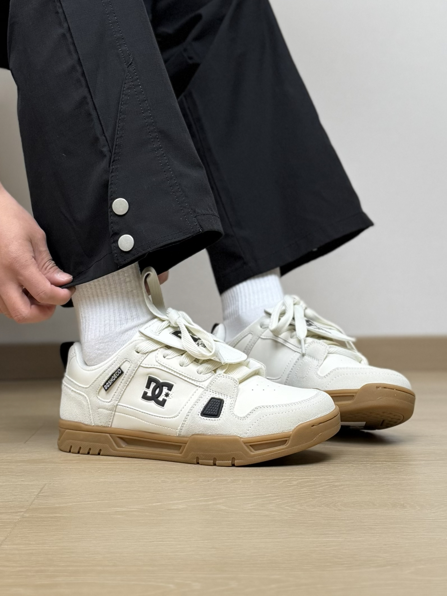 把滑板和足球风 都融入到板鞋里!?这双DCSHOES板鞋真的让我一眼心动~ 简约的白色系 搭配翻毛皮以及皮革拼接 并且还有一个可拆卸的“大背头”设计 看起来特别有视觉张力 上脚是很好搭配的 我最近都是搭一些宽松的工装裤 是不是还蛮好看!? 尺码我觉得刚好 不偏码的 #就是个板鞋脑袋 #穿鞋联欢晚会 #红包到手球鞋就有 #DCshoes #早春潮鞋配色天花板
