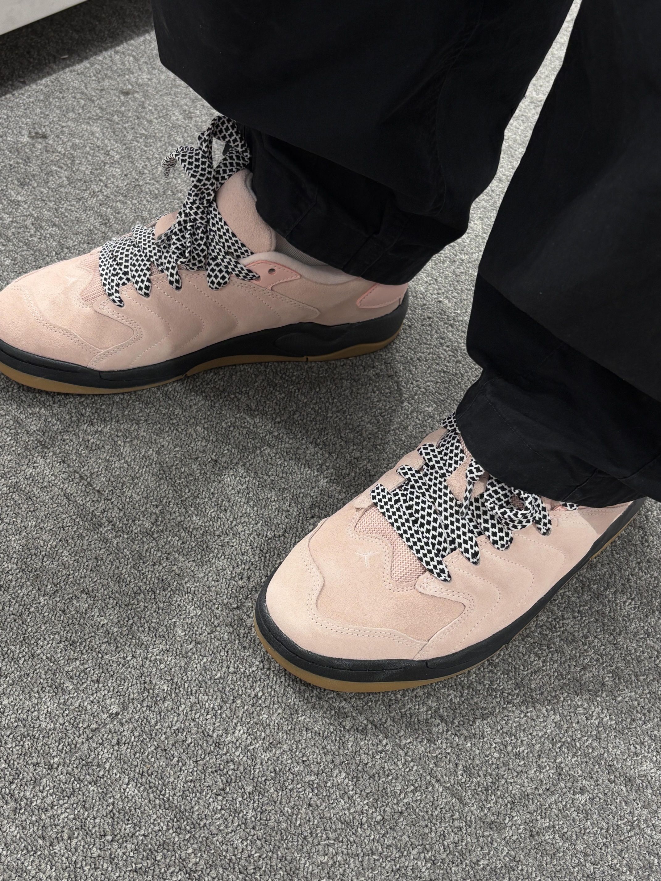 麂皮质感超绝,黑粉鞋带一整个拿捏潮流感 后跟飞人标🆒 配黑裤日常又炸街 穿它出街,走路都带风, 妥妥街头甜酷范儿👏🏿👏🏿