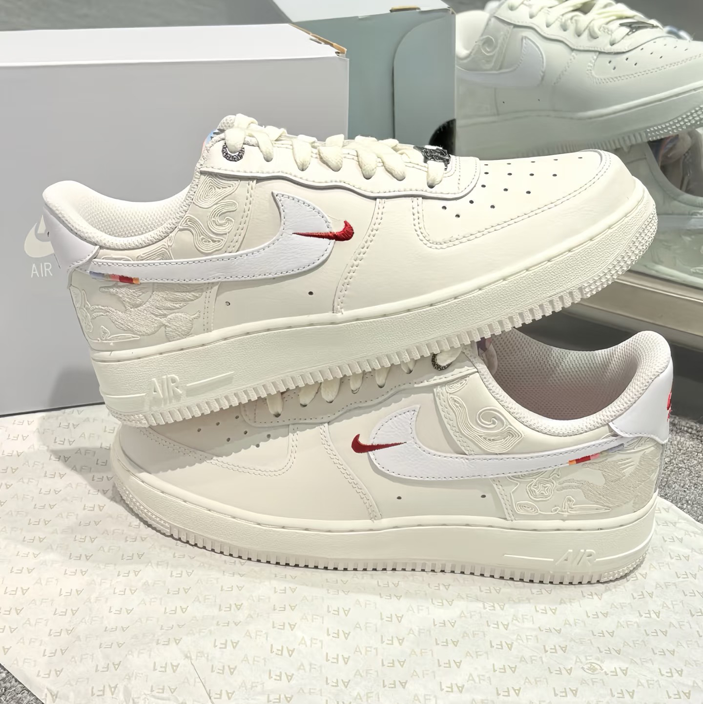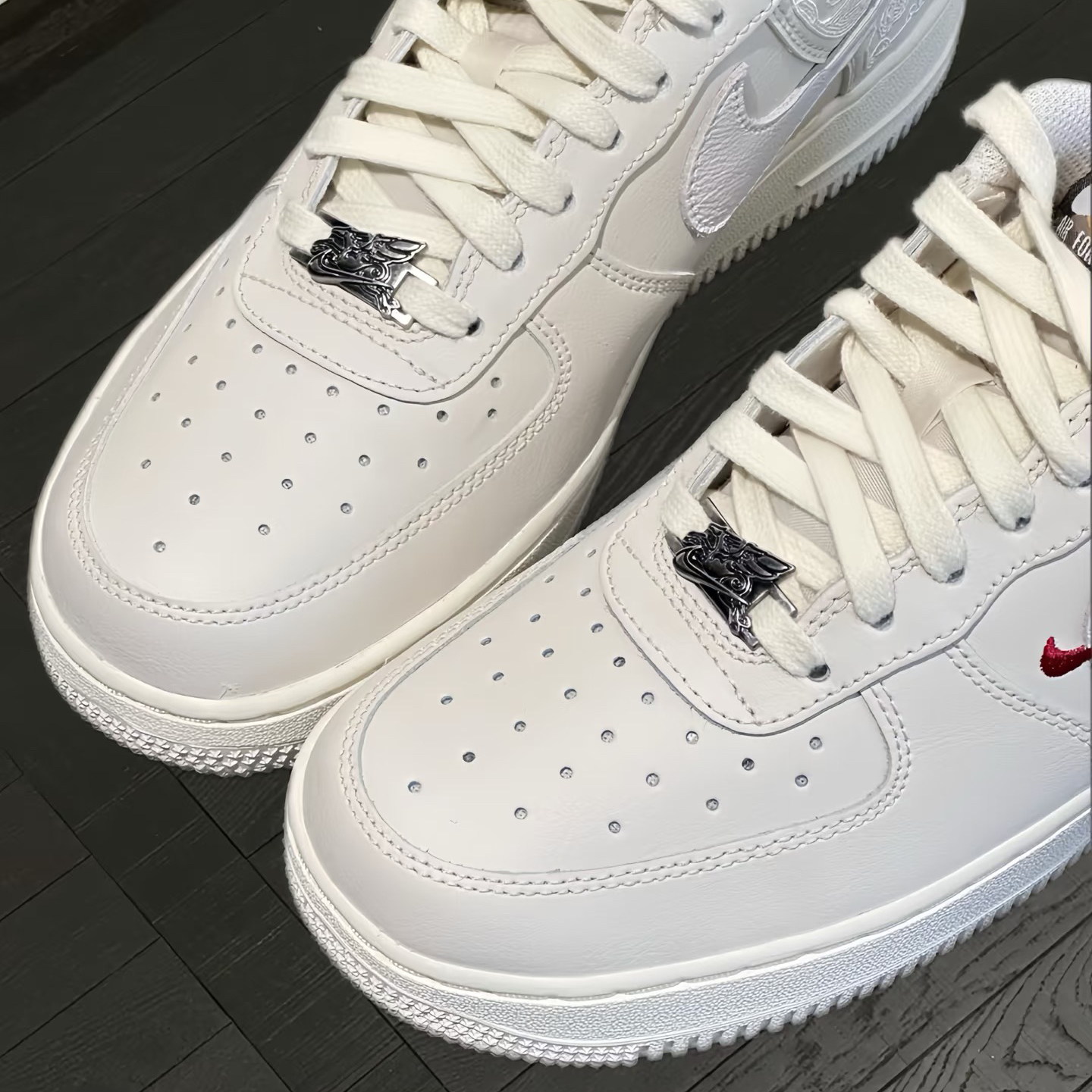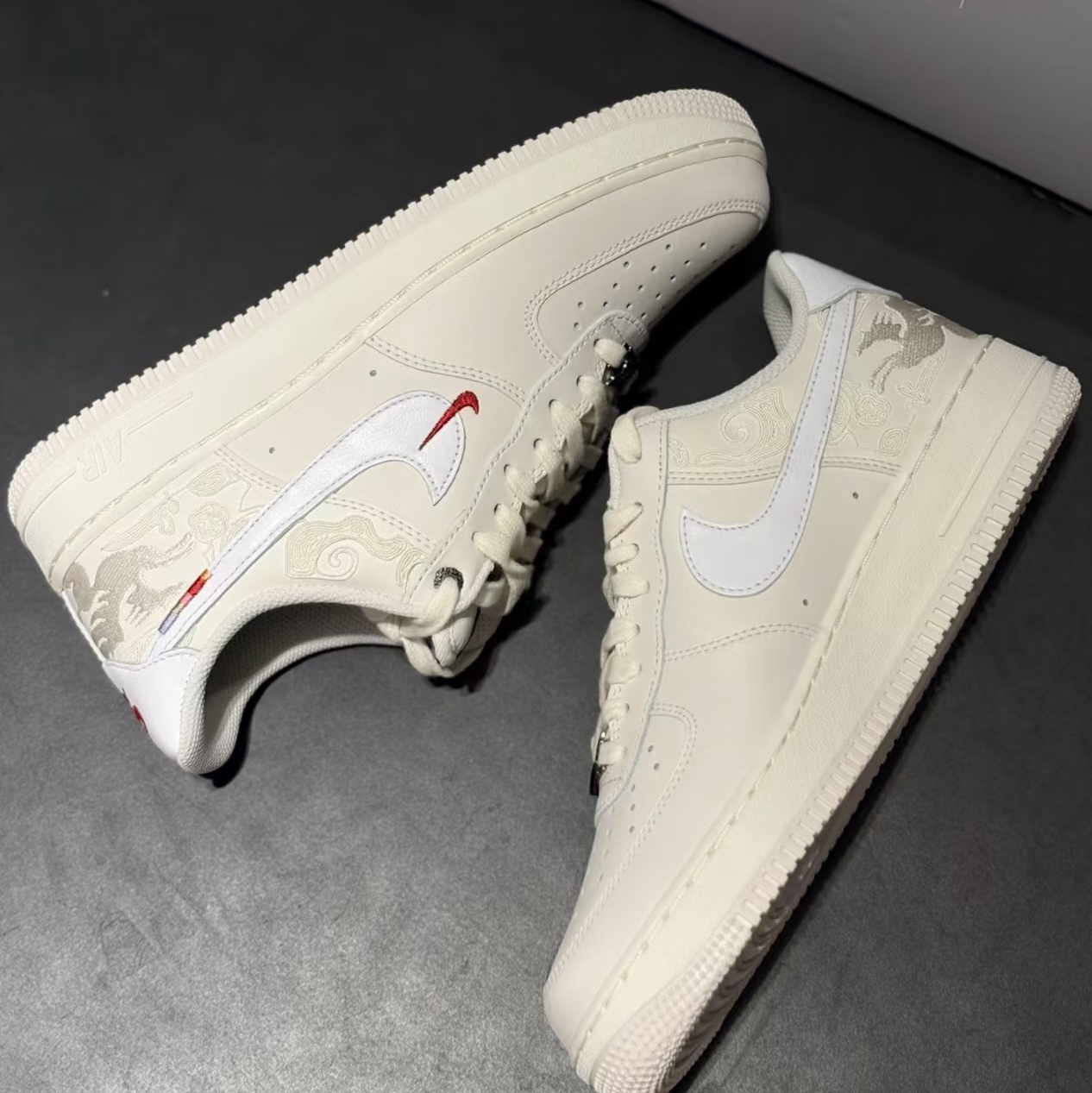 Nike Air Force 1 马年限定,也叫“白龙马”配色,它的优缺点很鲜明: ✅ 优点 1. 设计与细节:米白底色+祥云暗纹+后跟飞马刺绣,国风元素高级不突兀;双Swoosh设计(主勾+小红勾)和金属飞马鞋带扣,精致感拉满,新年氛围感强。 2. 百搭性:浅米白比纯白更耐脏,适配牛仔裤、运动裤、工装裤等各种风格,日常通勤、拜年出街都合适。 3. 脚感与实用性:全掌Air气垫提供软弹脚感...