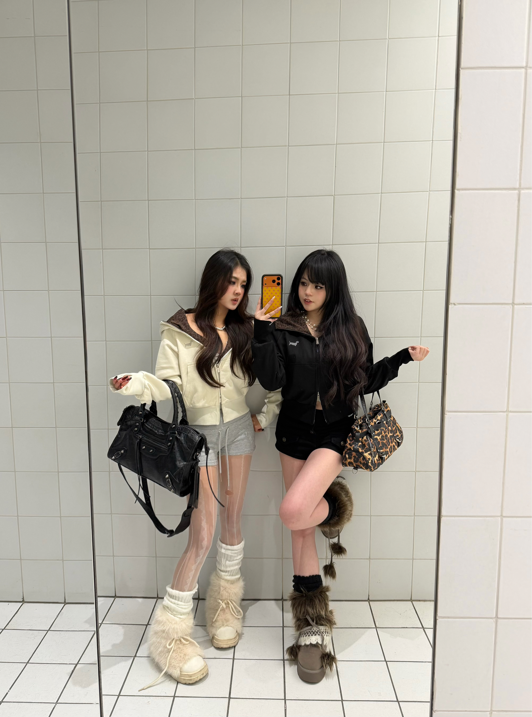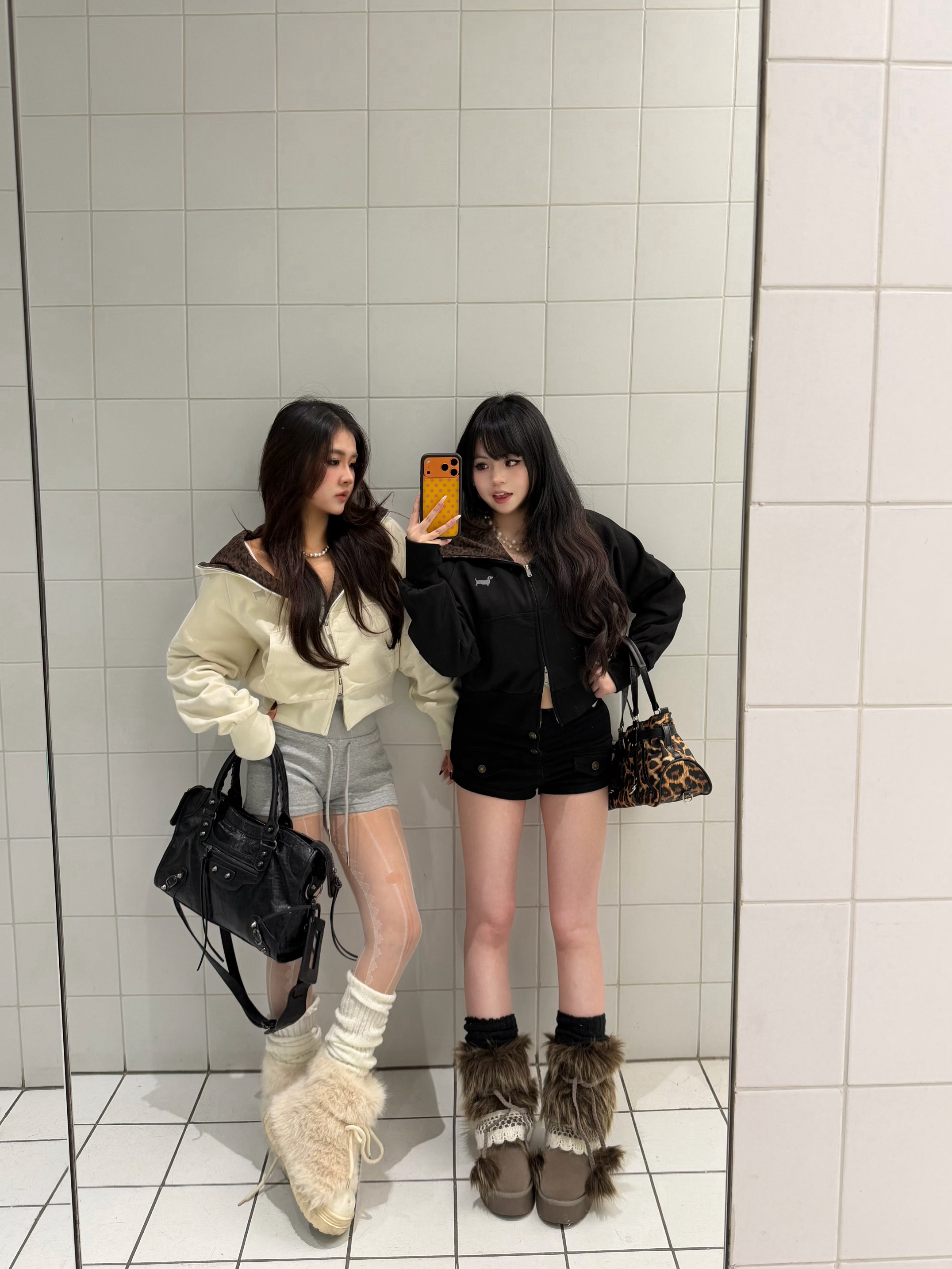 早春穿卫衣,搭了套和闺蜜都满意的出门look。 左边是奶白连帽短款卫衣,配浅灰运动短裤,叠穿蕾丝透肤袜,脚上踩毛绒雪地靴; 右边选了黑色连帽卫衣,搭黑色热裤和堆堆袜,同样配了毛绒靴。 两件刺绣短款卫衣能优化比例,穿起来利落不拖沓 透肤袜加毛绒靴,刚好适合南方初春微凉的天气 早上赶时间这样穿,5分钟就能出门,上课或者日常逛街都合适。