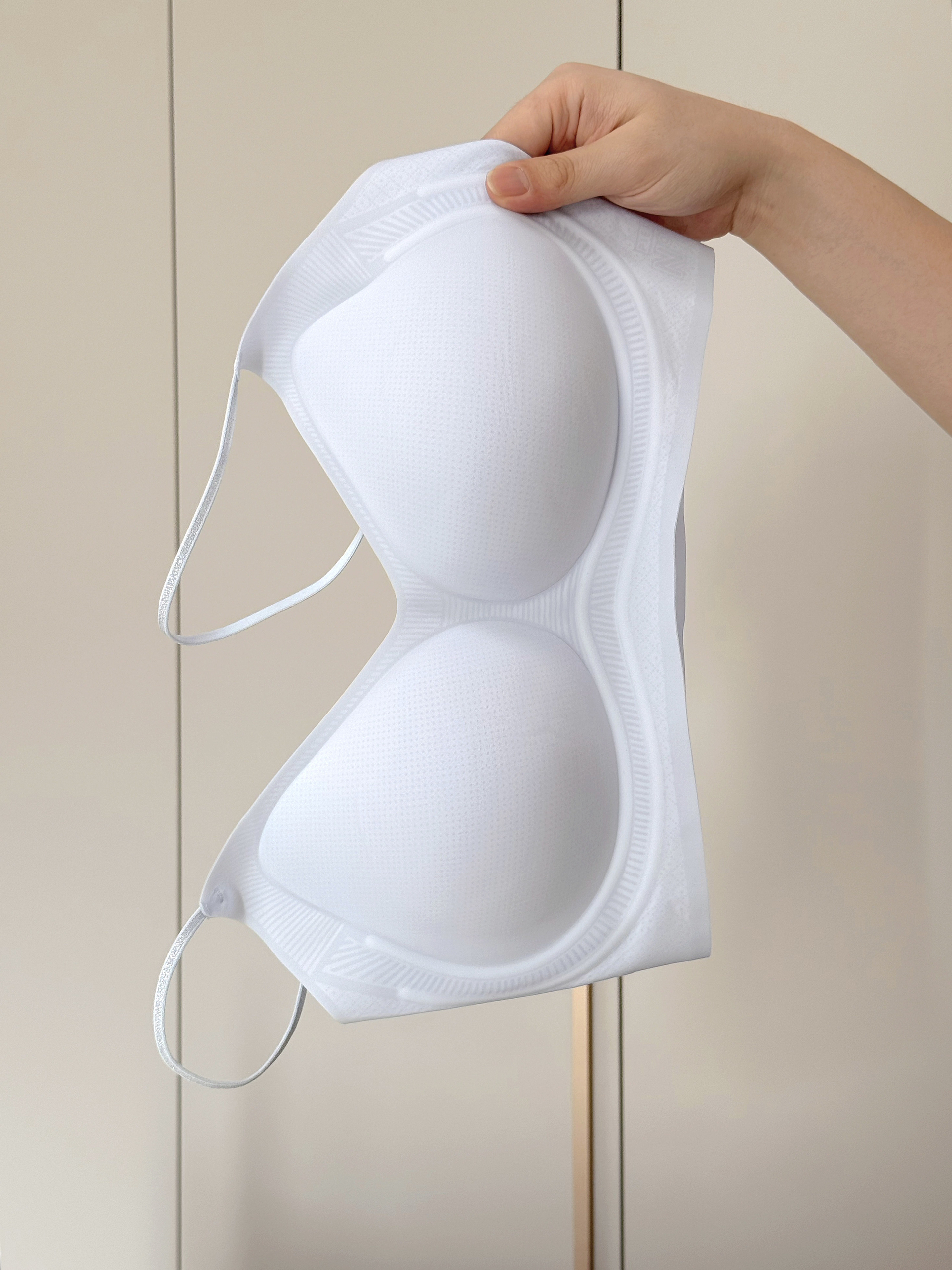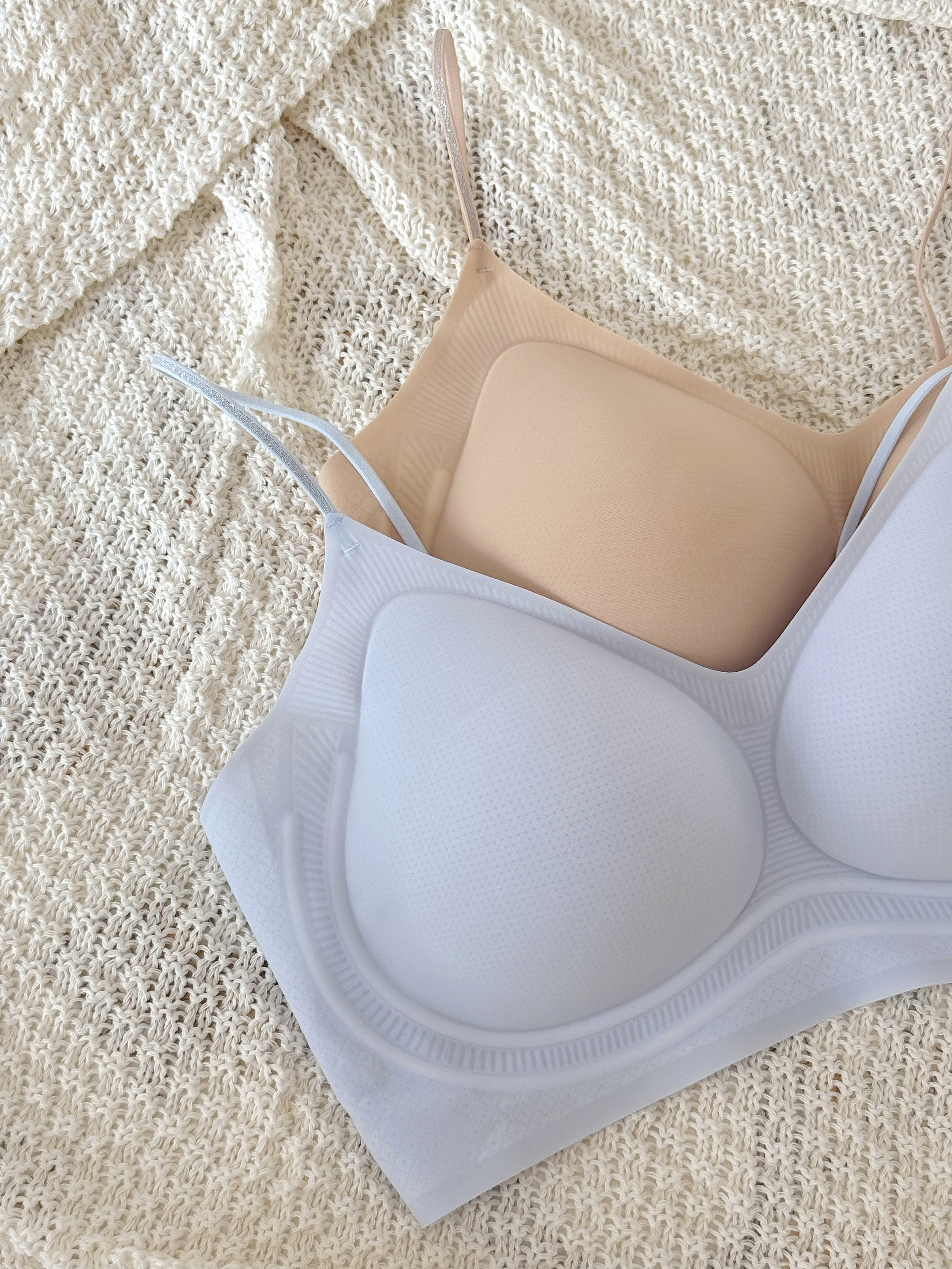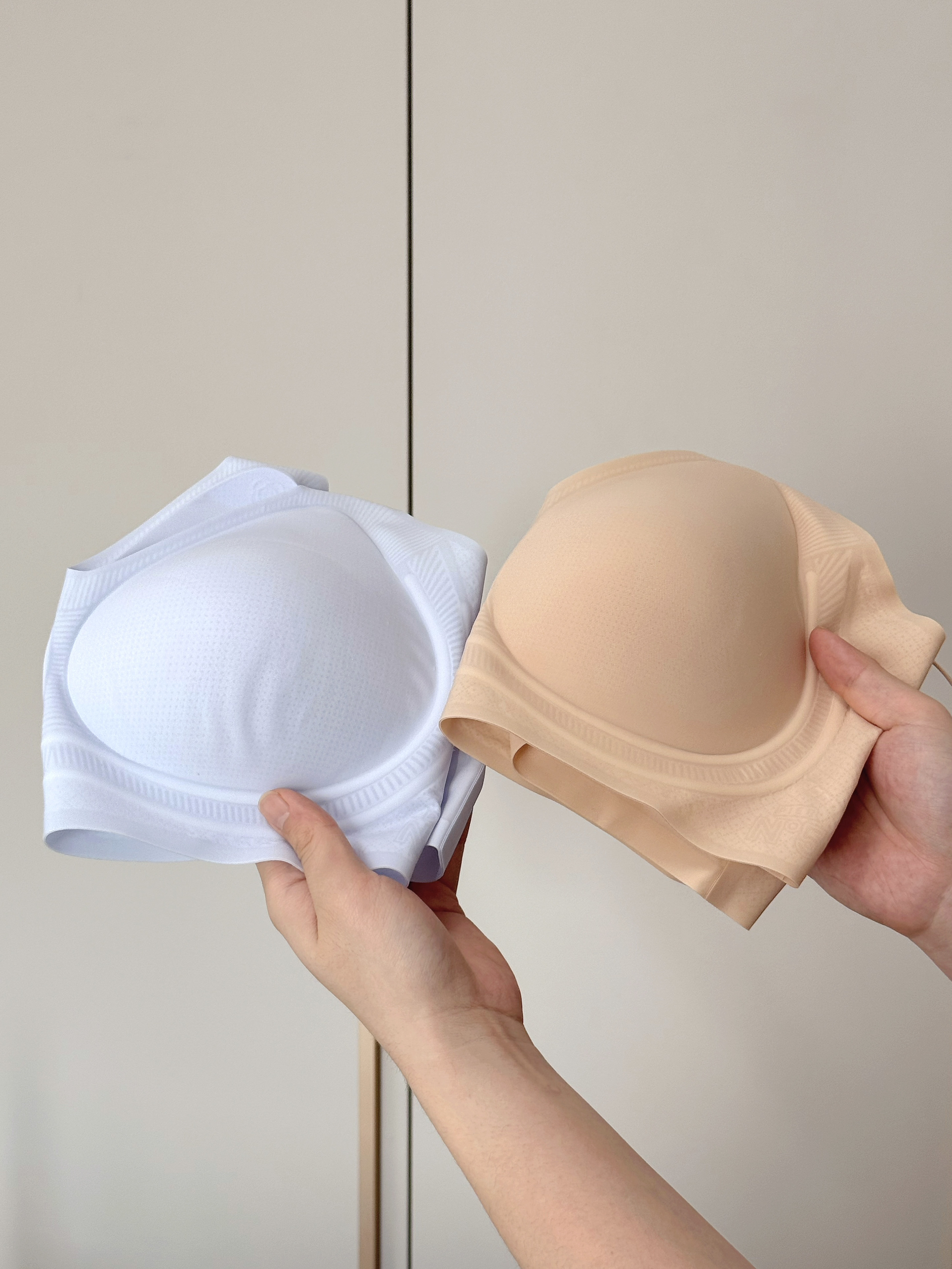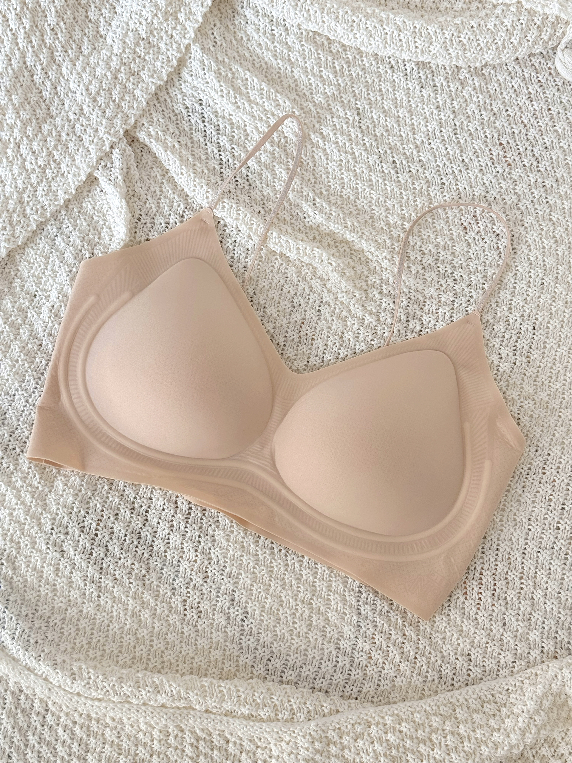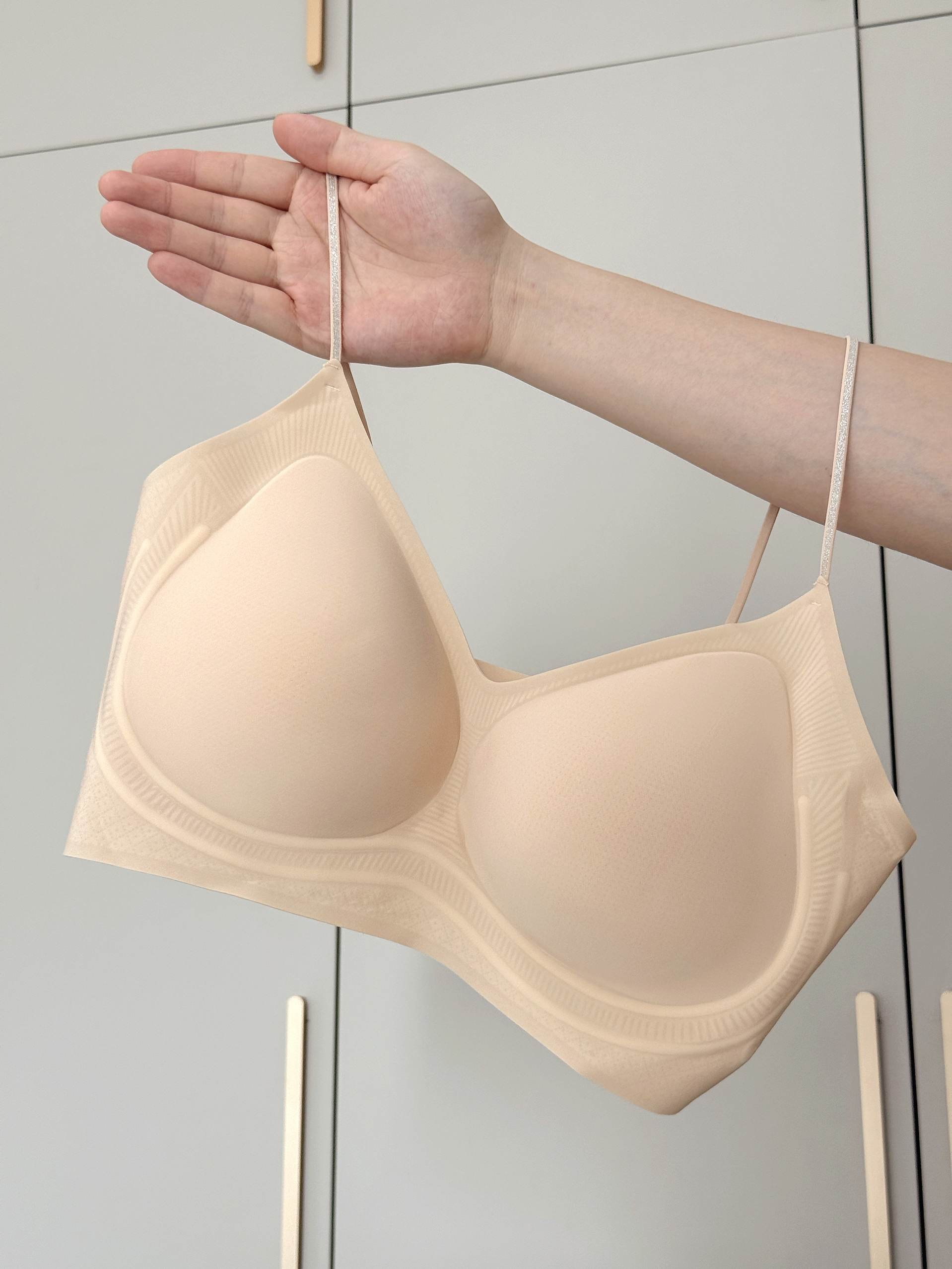 好穿呀!泰好穿了~ 已经推荐给姐妹们一起穿起来咯! 选的晴空蓝和粉底肤,奶fu'fu的颜色~ 料子看起来蛮轻薄的,真的挺神奇的,明明看上去那么薄,竟然能不空杯不移位! 穿那种紧身的薄内搭也不怕它显印子显颜色 这真的解决了只有我们女生才能注意到的尴尬问题 而且上身很舒fu~不会觉得勒! 肩带还带点小心机,自带bu'lingbu'ling✨的 好穿爱穿,我可泰喜欢穿啦!