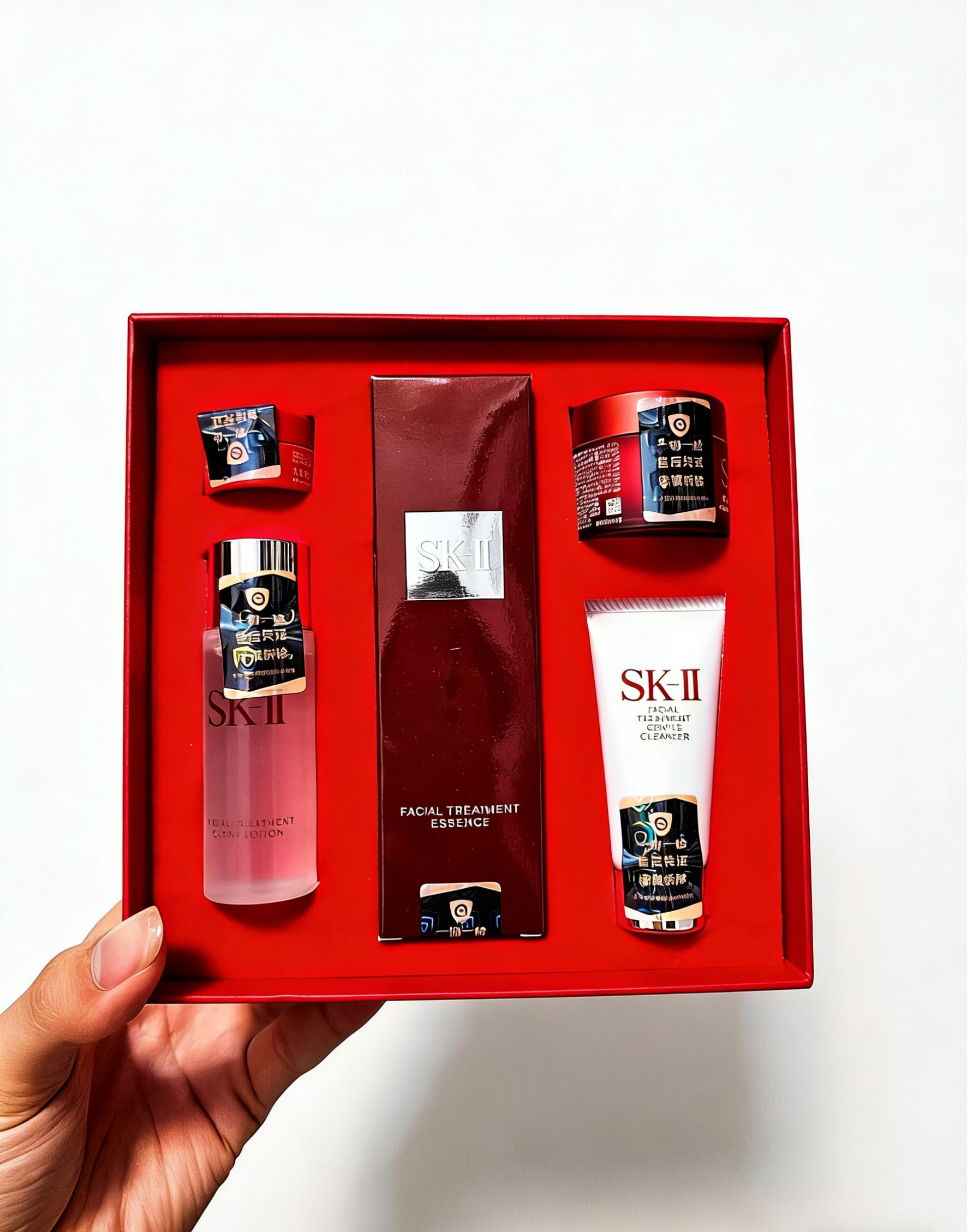 还在愁新年送什么?这套SK-II神仙水礼盒直接封神! 大气的红色礼盒,一打开就是满满的高级感,送女友,超有面儿🧧 礼盒里的每一件都是硬通货: 神仙水正装:维稳修护界的顶流,让皮肤状态稳稳在线 清莹露:二次清洁+补水,打开肌肤吸收通道 大红瓶面霜:紧致抗老,熬夜后也能让脸嘭弹起来 氨基酸洁面:温和清洁,洗完脸软嫩不紧绷 从清洁到修护再到抗老,一套搞定全流程护肤,实用又有心意。...