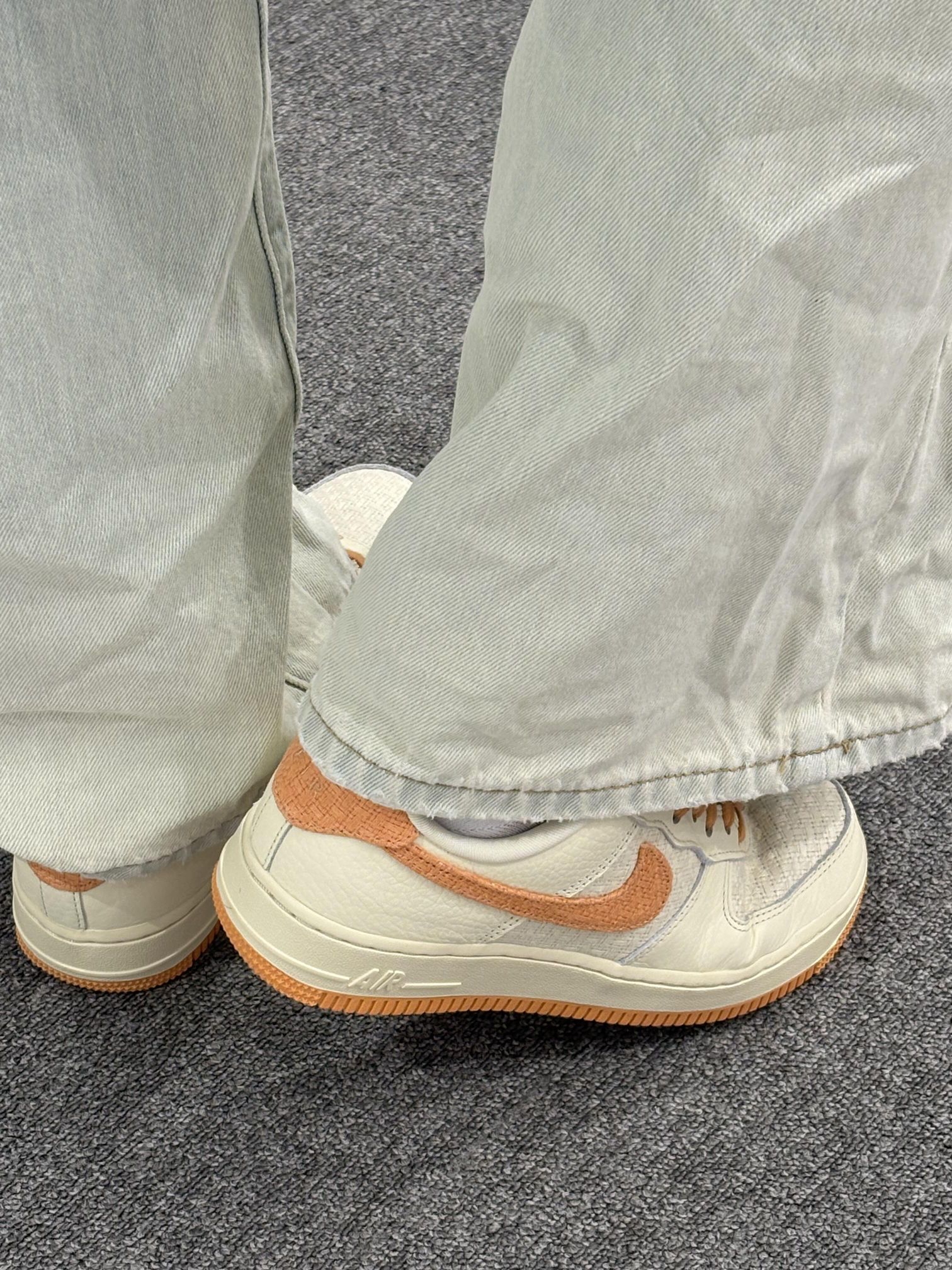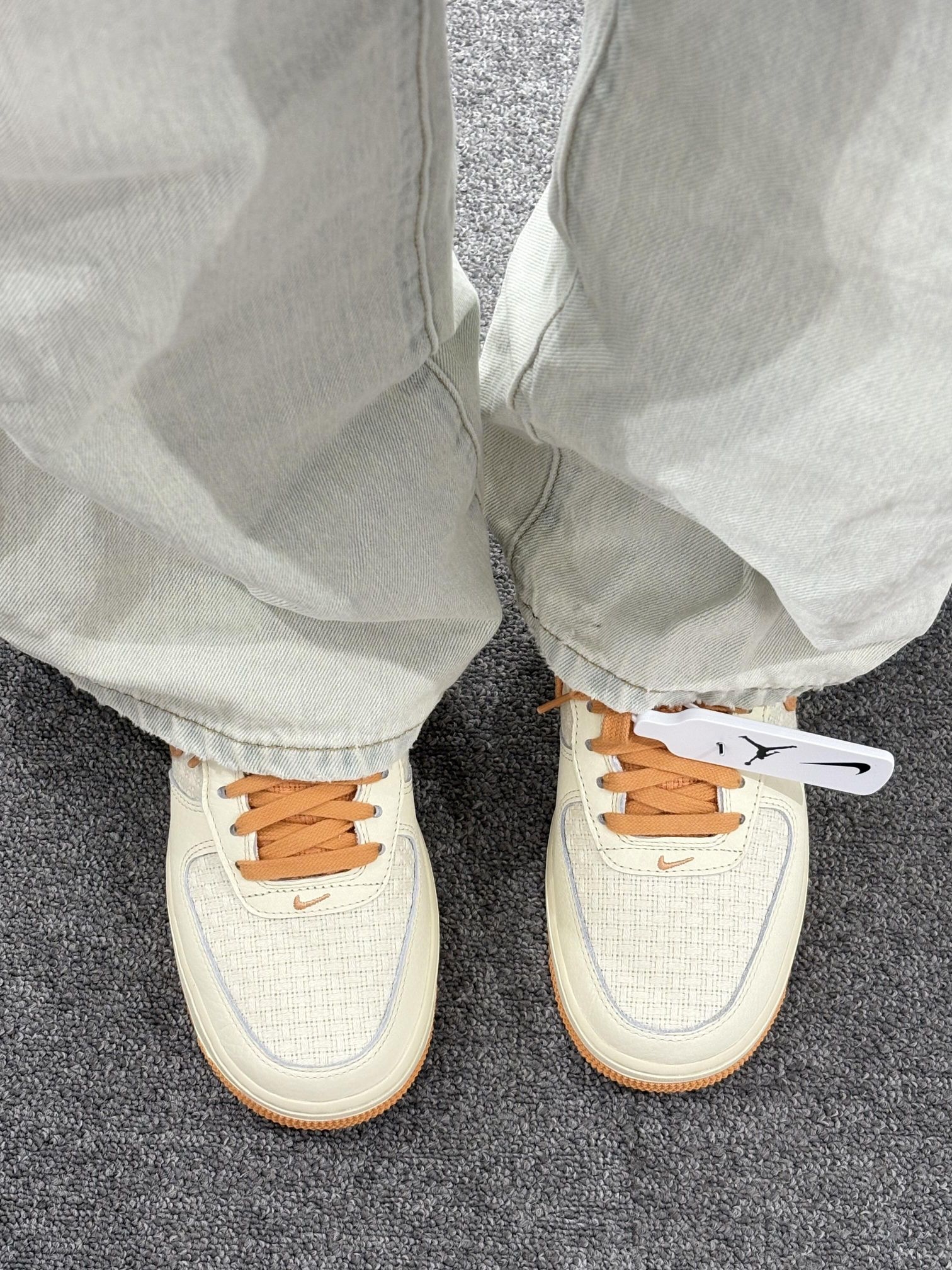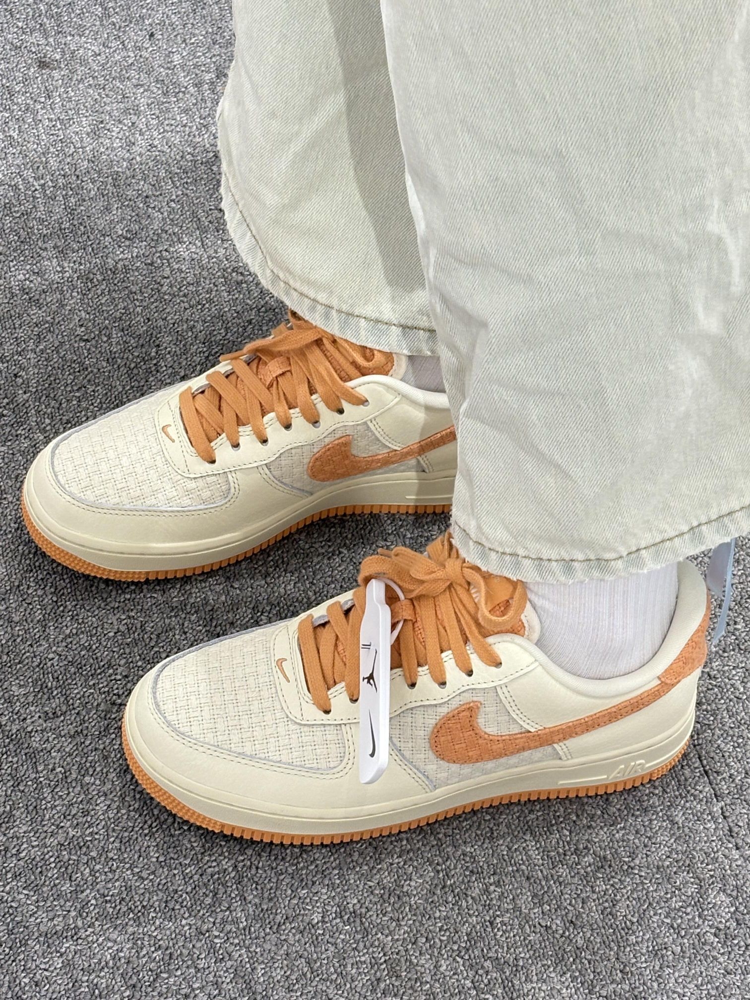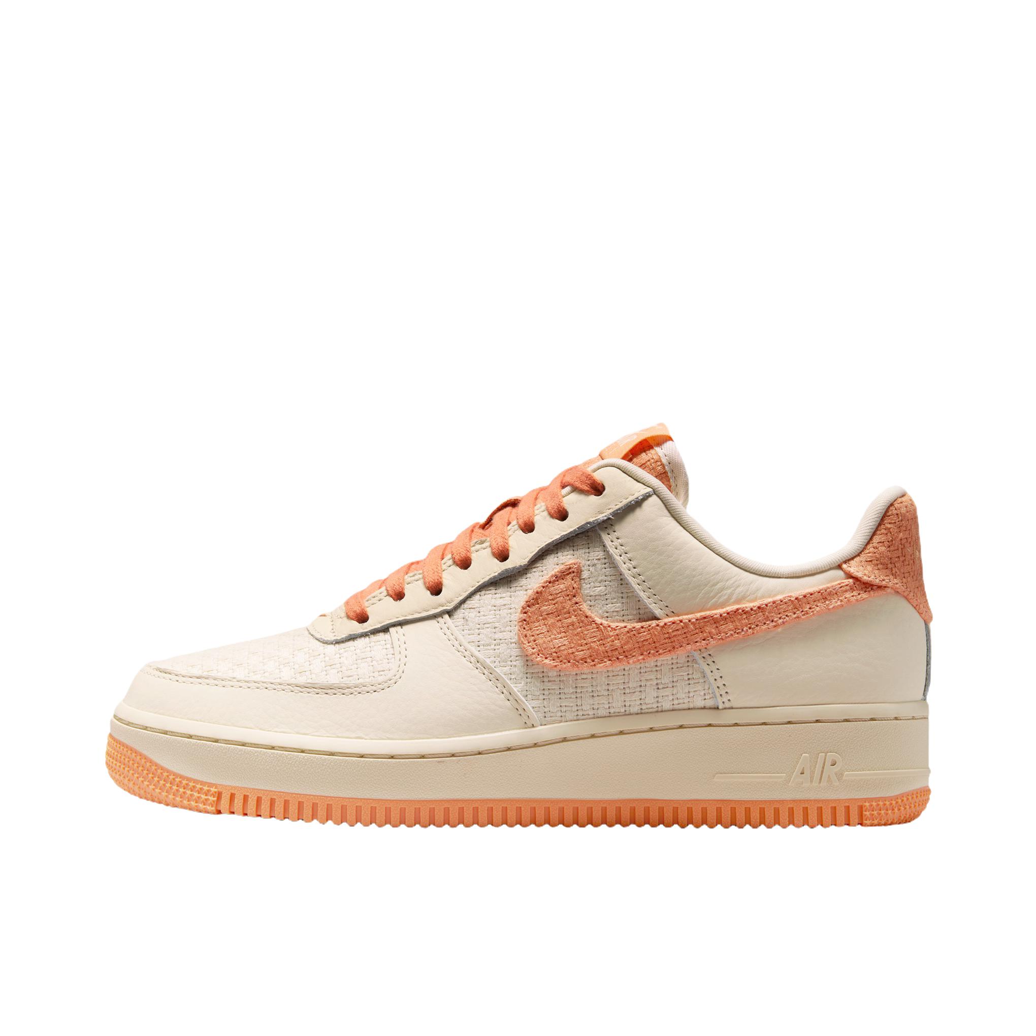 AF1“小香风”以米白色为主色调, 鞋面带有细密的纹理质感,🍿 呈现出细腻的触觉与视觉层次。 鞋侧醒目的橙色swoosh,🍊 与鞋带、鞋底的同色系设计形成撞色呼应, 为整体造型注入活力感。🍑🍑