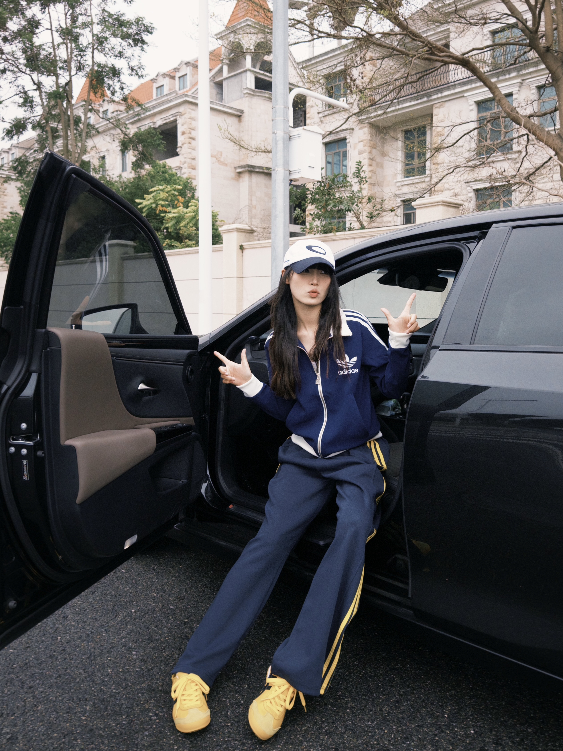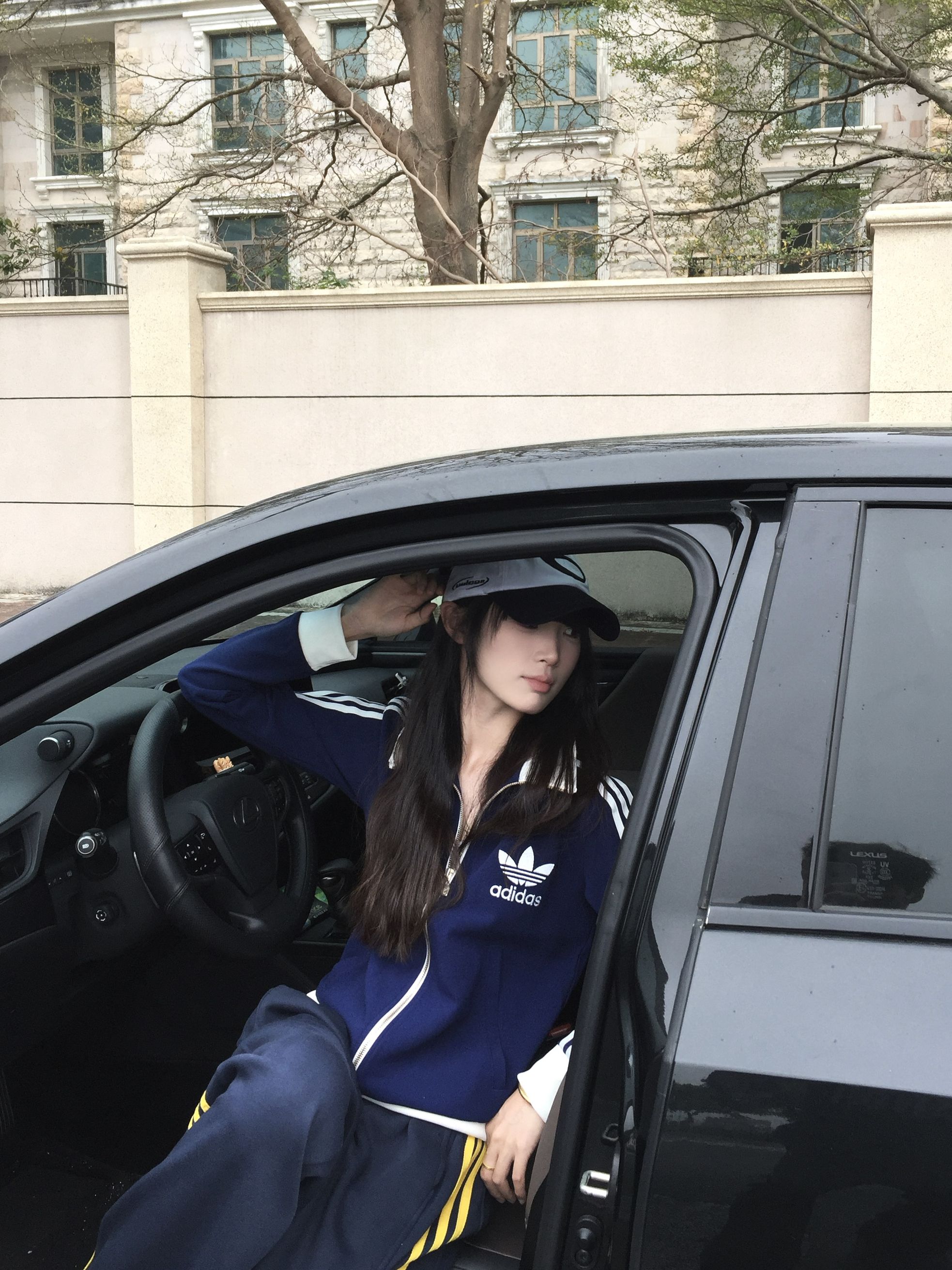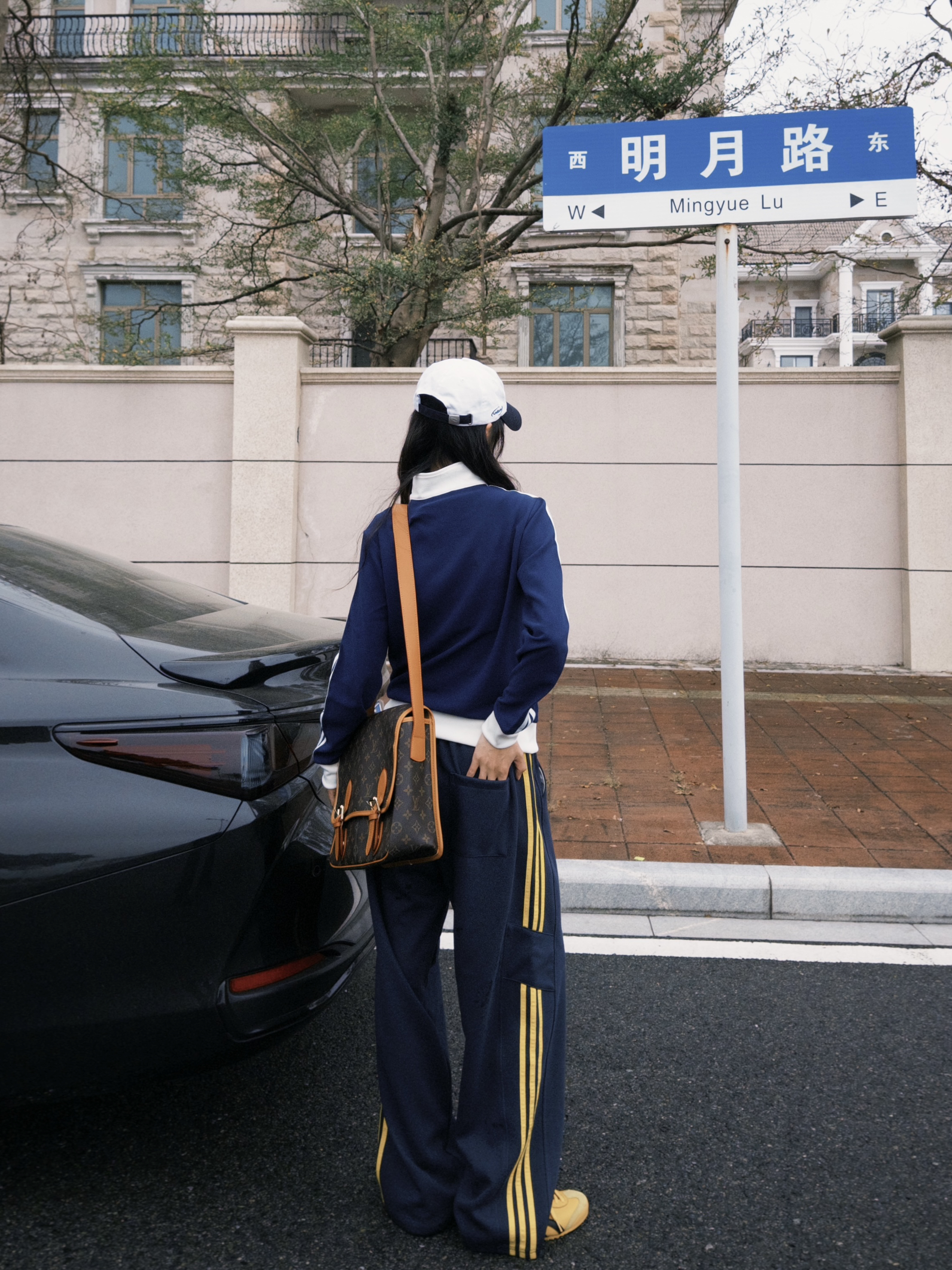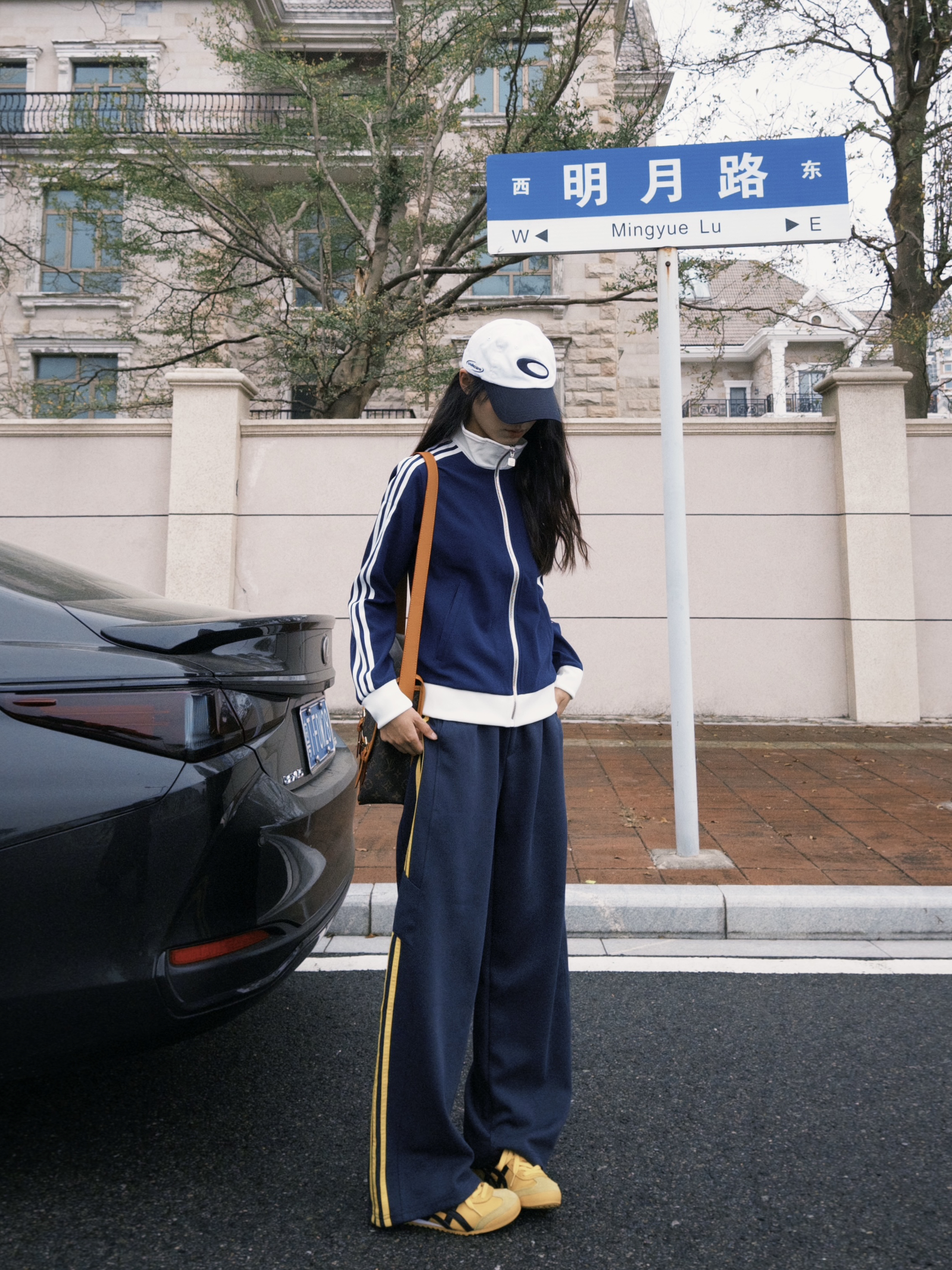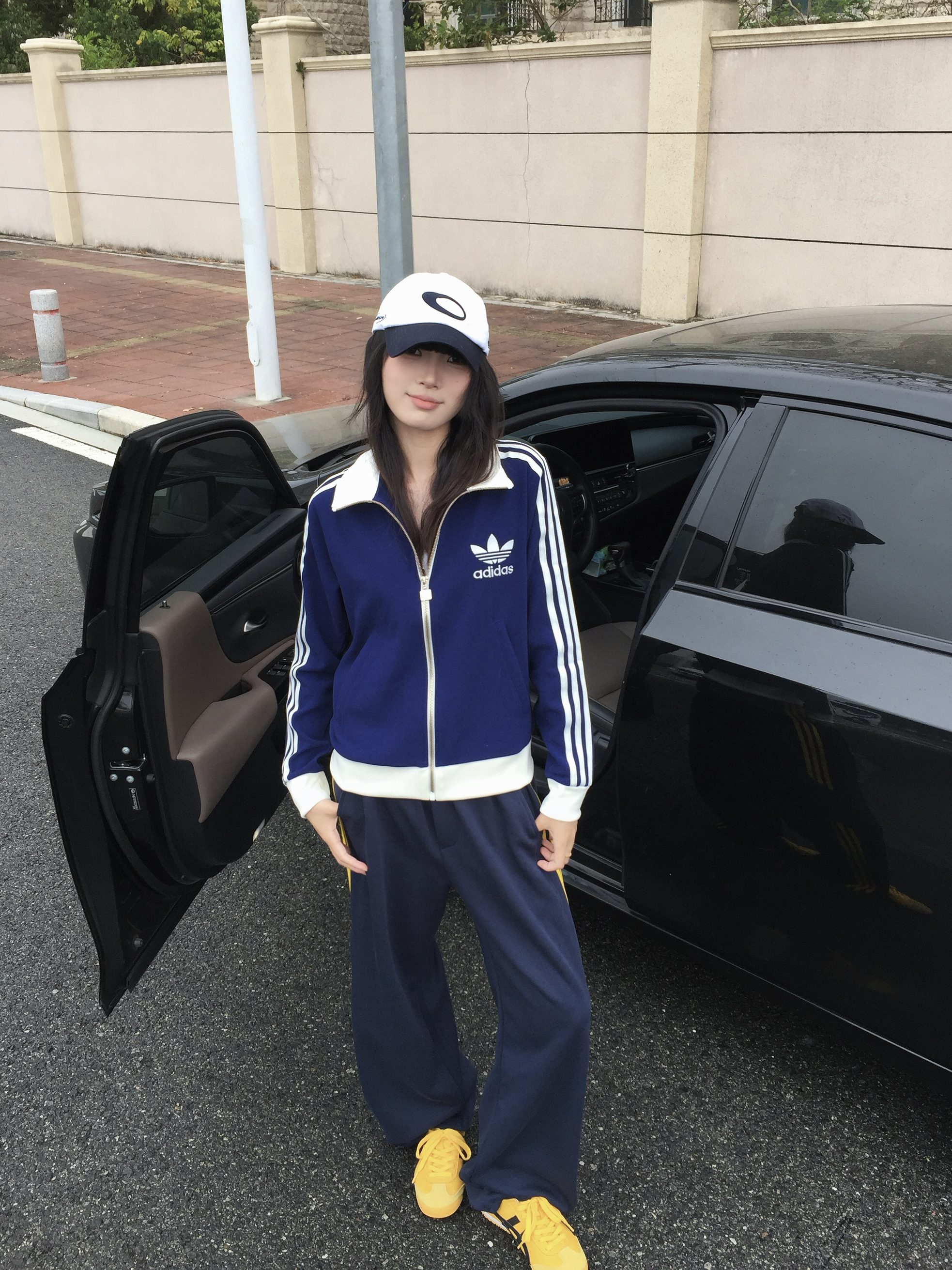 又到了喜欢的春季 十几二十度的天气就这样穿! Adidas短款外套搭配休闲裤 环球的中性风宽松休闲裤 藏蓝色拼黄色线条撞色感十足 上身有种复古运动感的调性 喜欢这种休闲慵懒感搭配~~