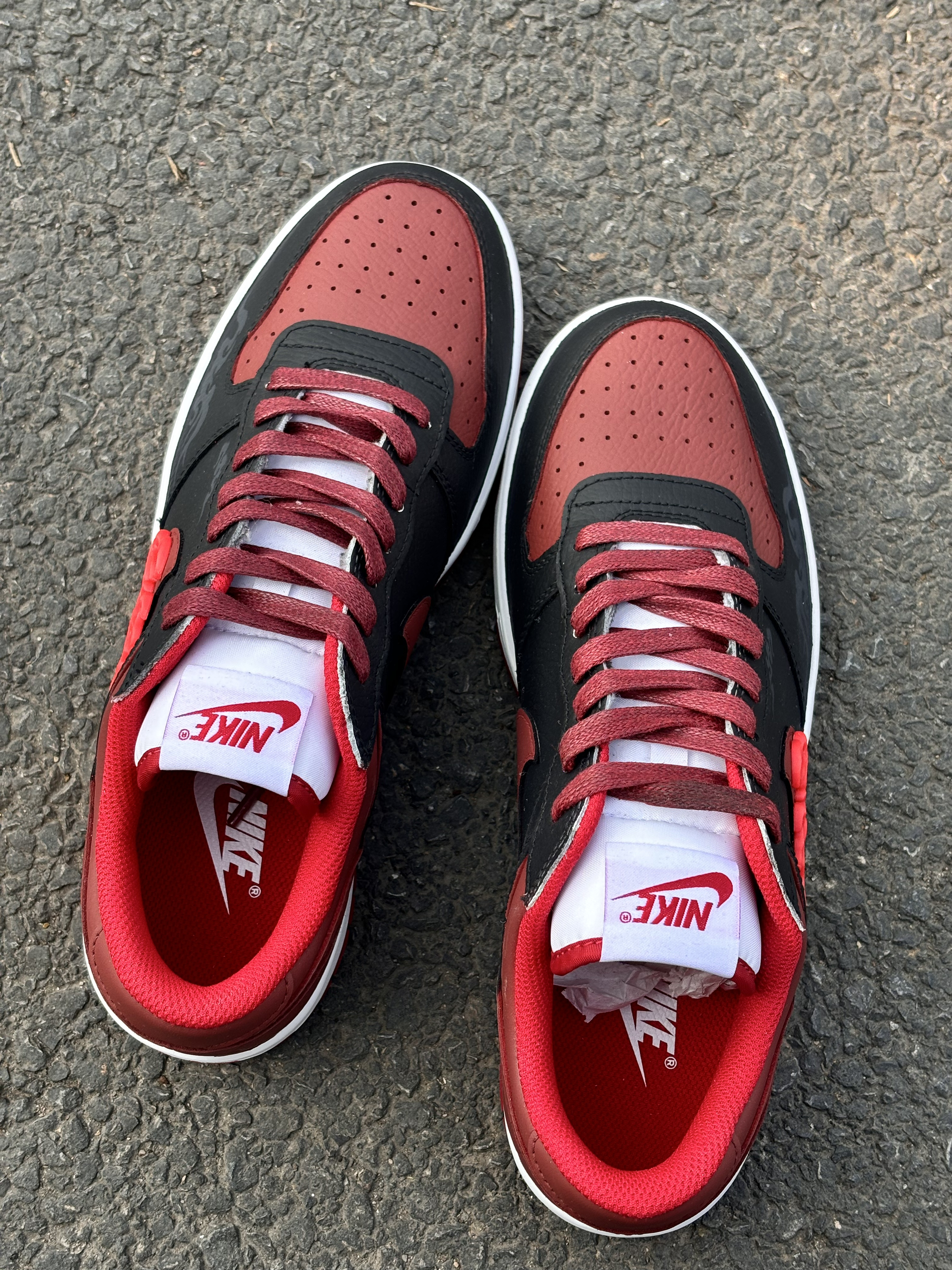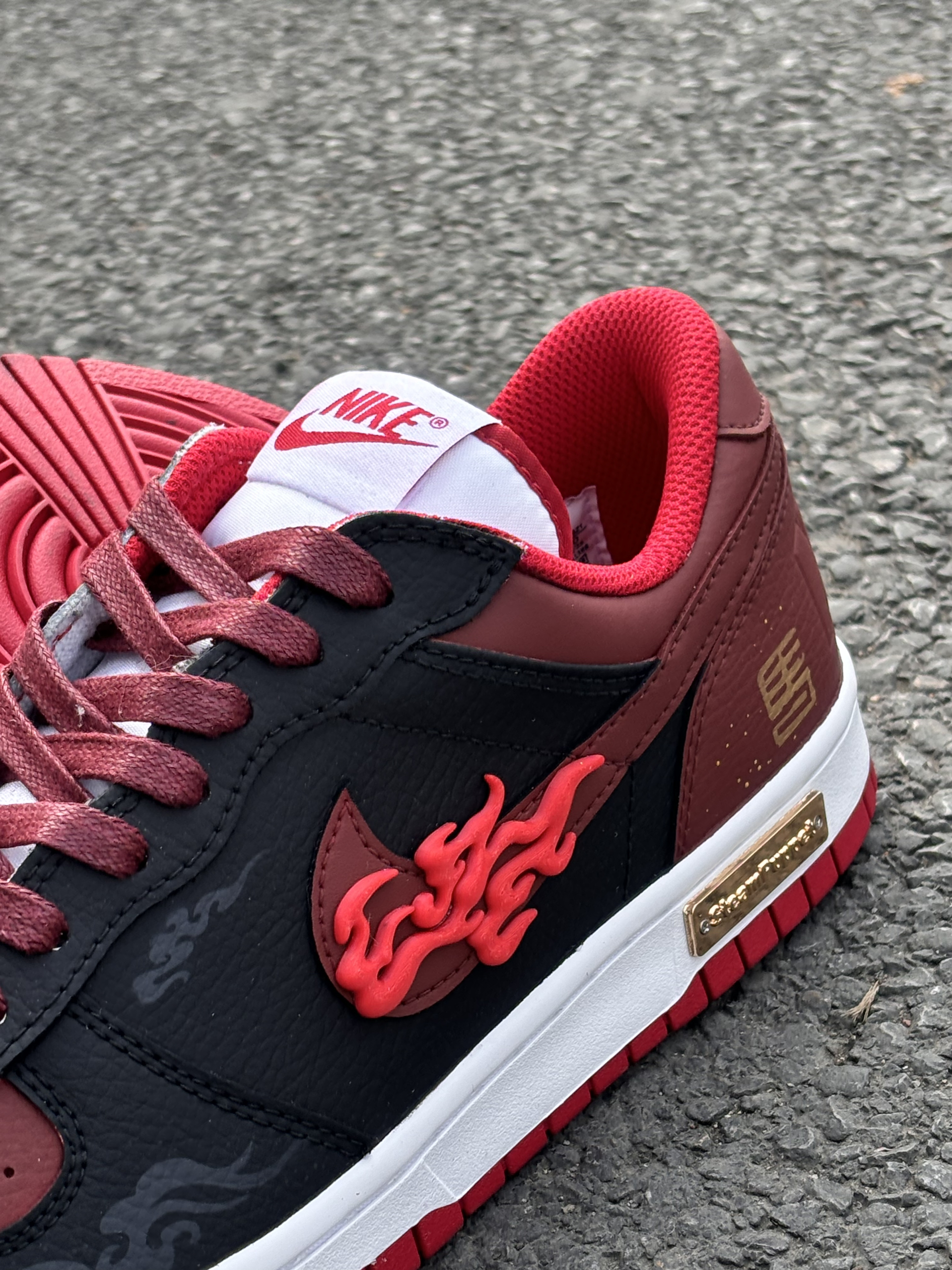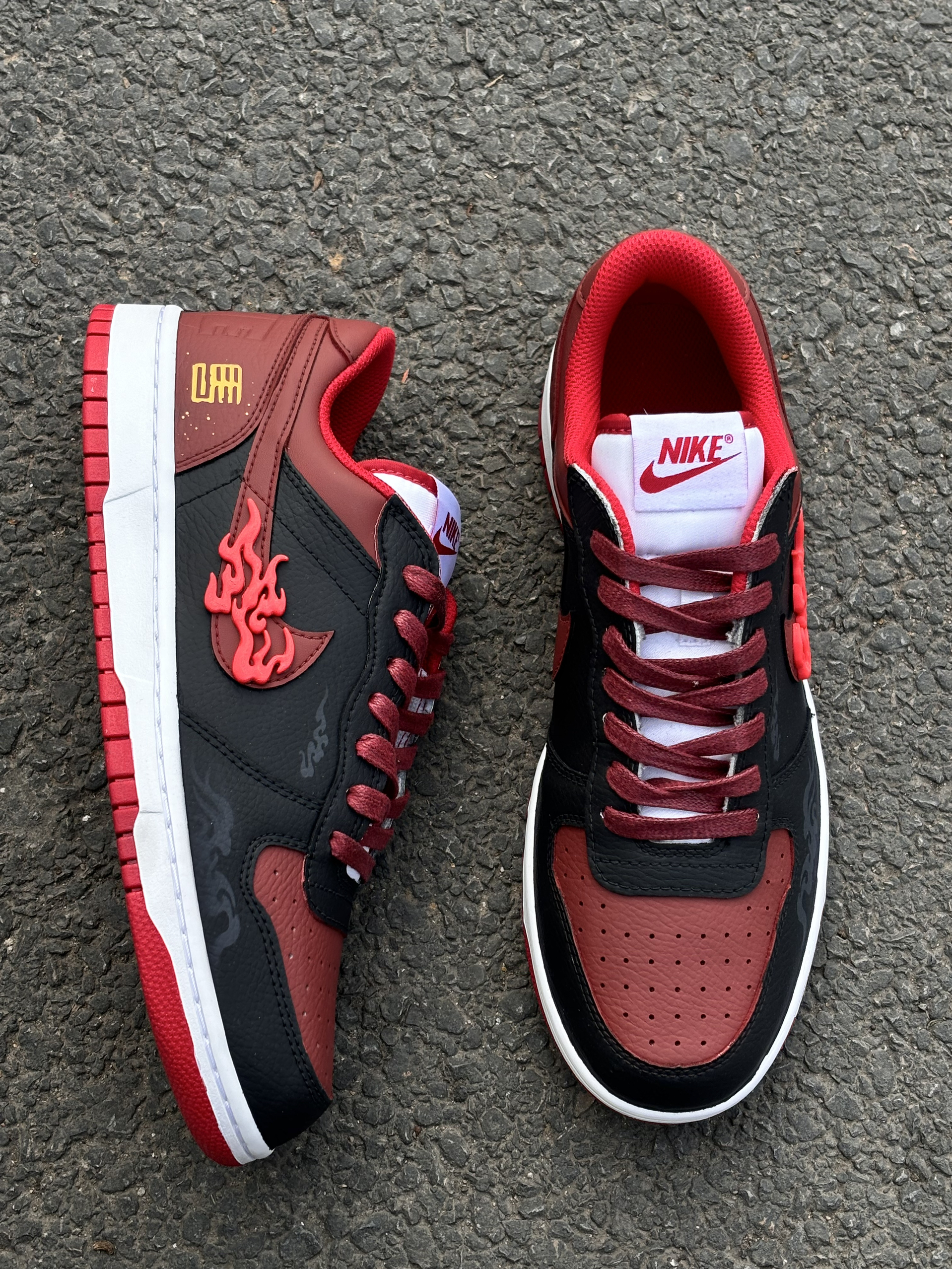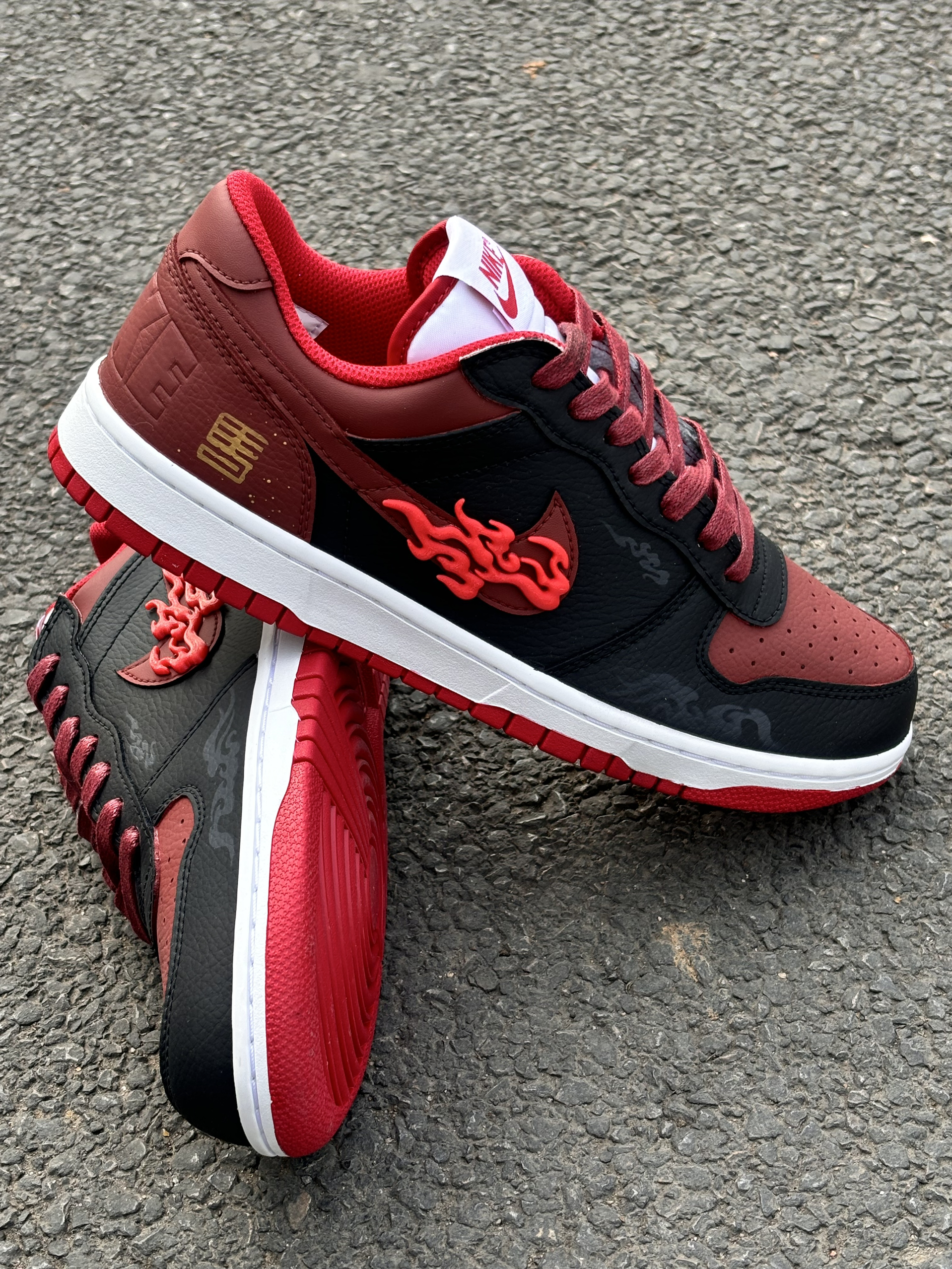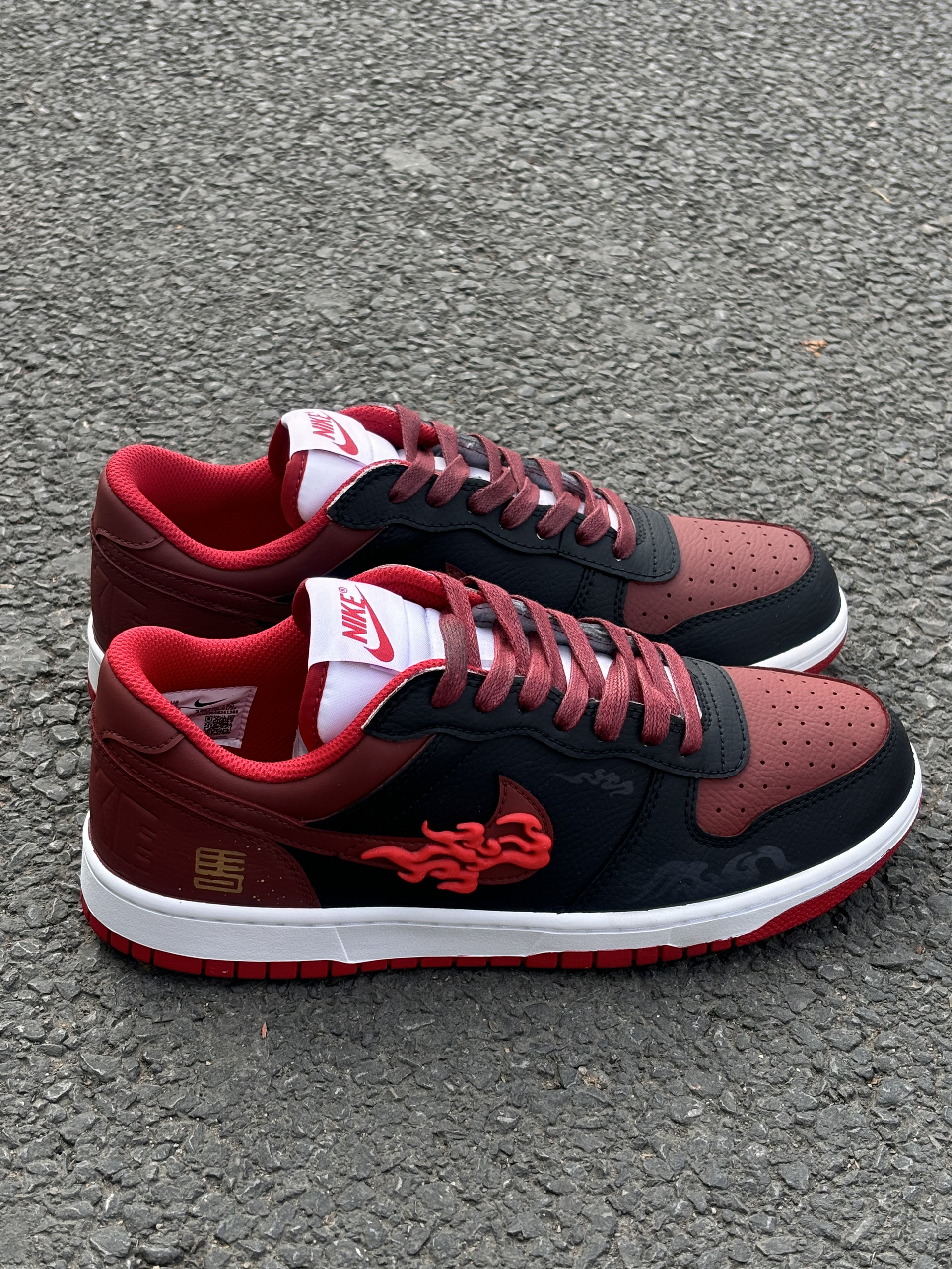 2026丙午马年,必须锁死这双“踏火”神鞋!🔥 Nike Big Low Lux黑红定制款,完美契合九紫离火大运。鞋身立体火焰钩标自带气场,黑红皮革拼接高级又耐看,新中式国风细节直接拉满。 脚感透气舒适,耐磨橡胶底日常通勤无压力。经典低帮版型,随便搭条牛仔裤就很帅。 搭配特殊礼袋包装,自留开运,送礼有面。