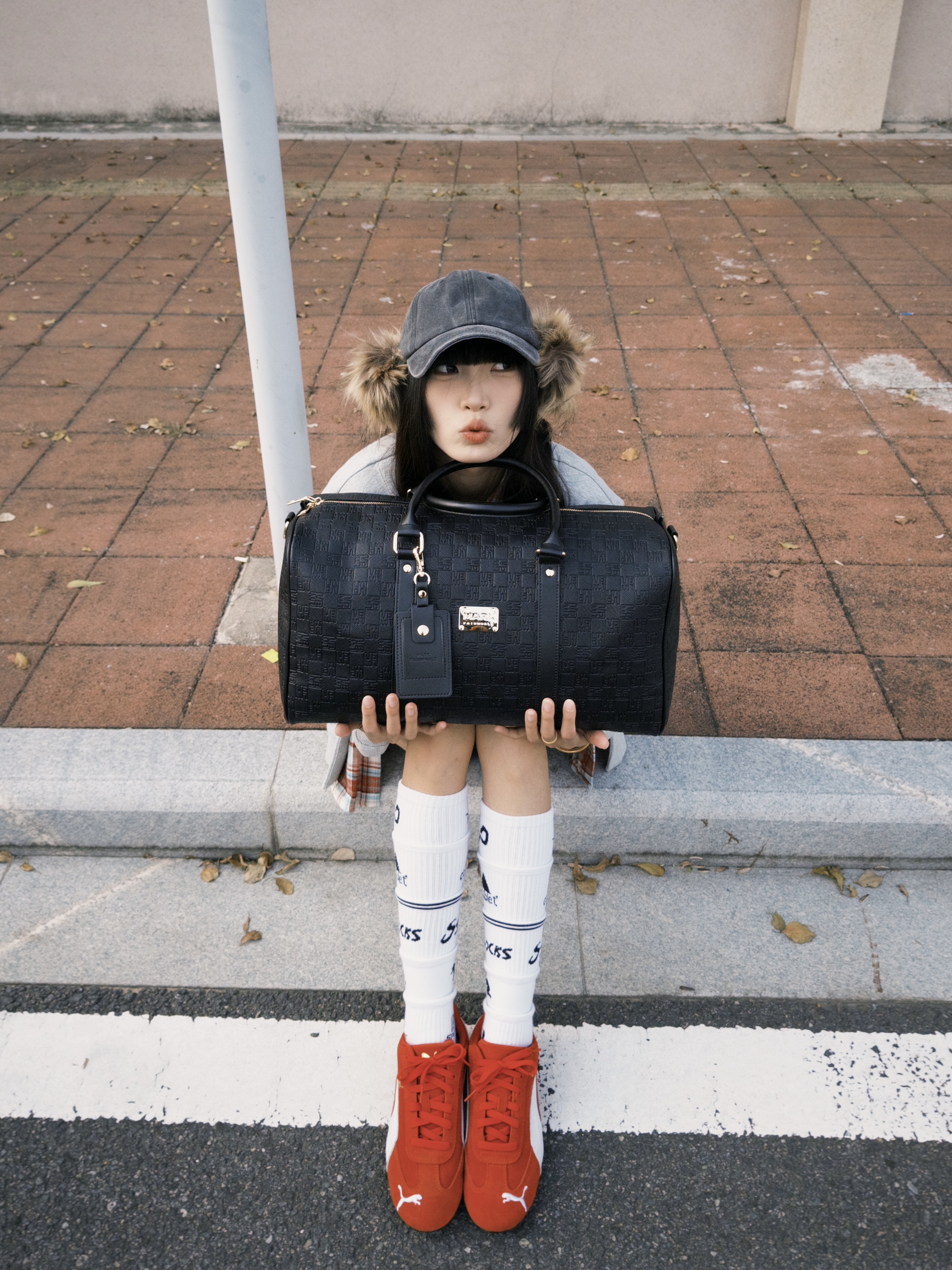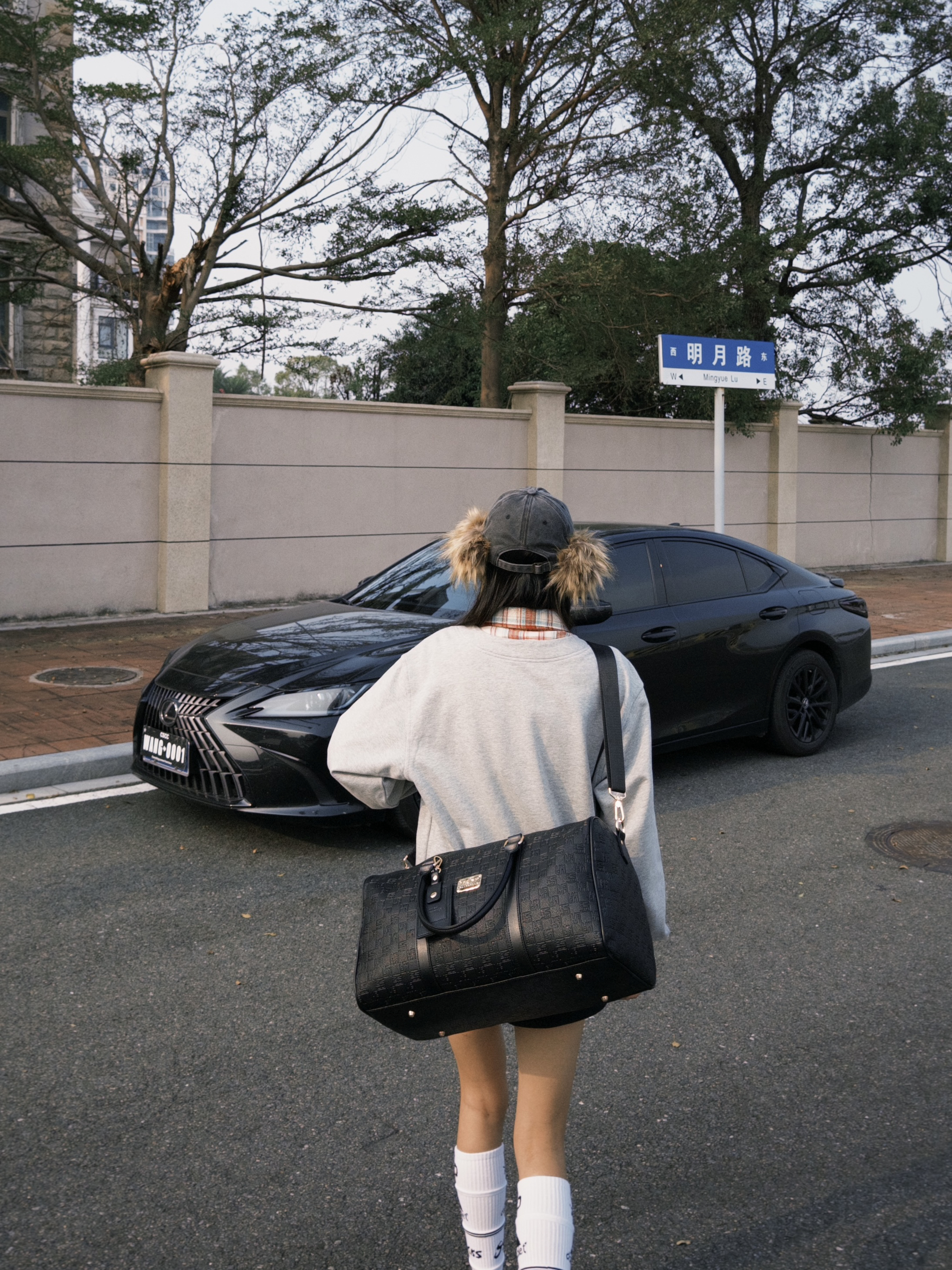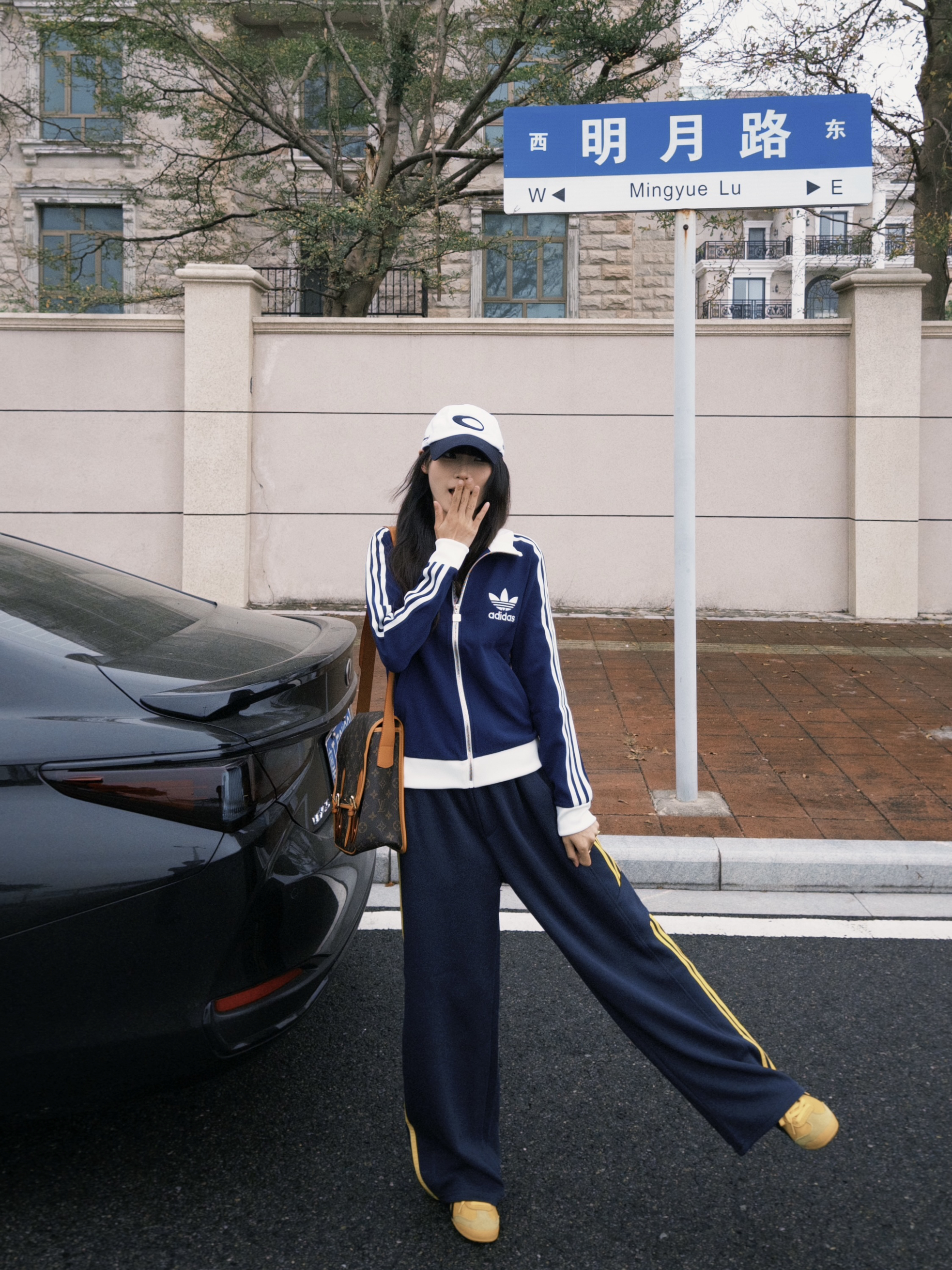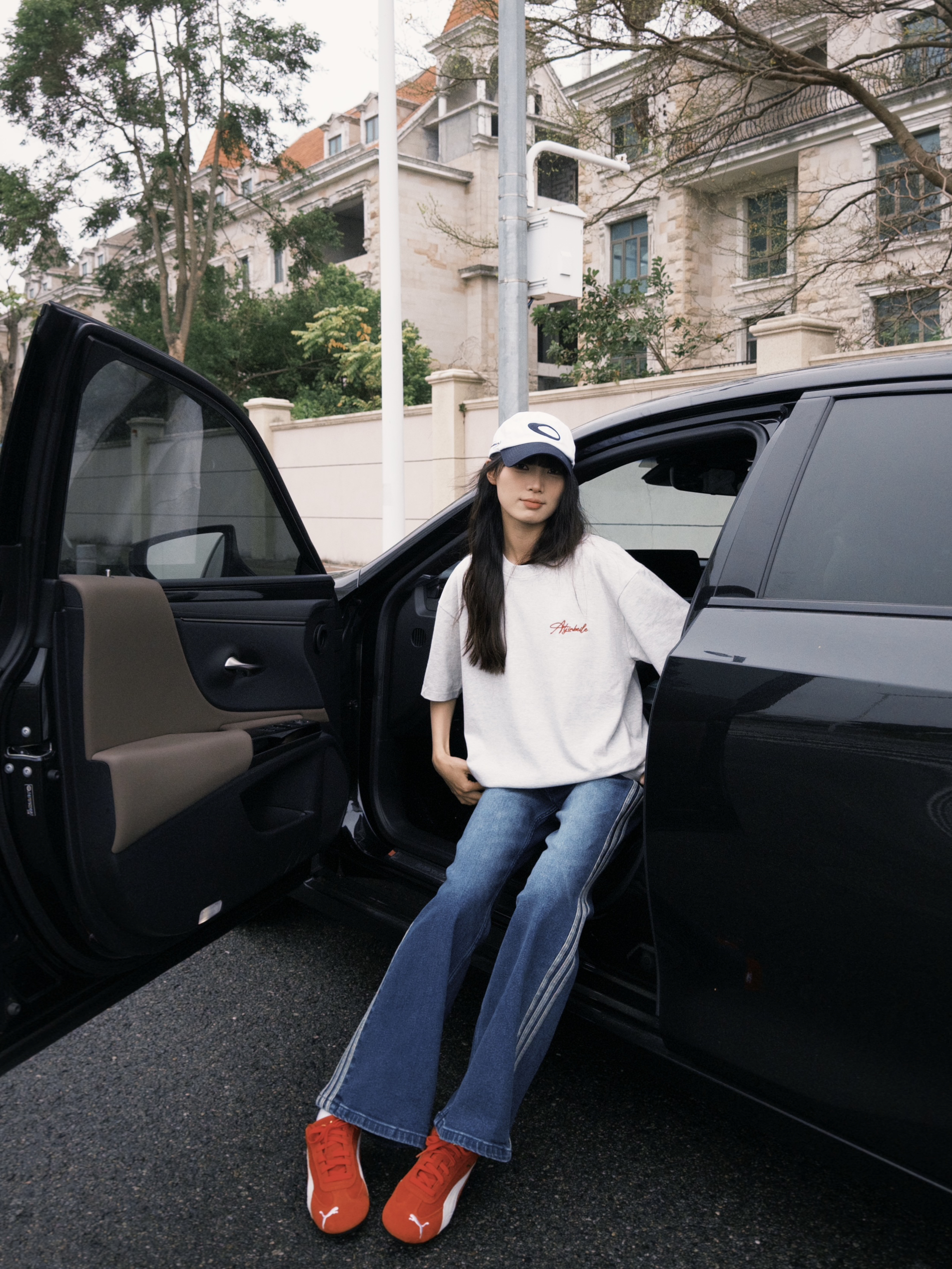 和爱车在街头合影 今日ootd带点红色元素 很亮眼 有新春的氛围感啦!