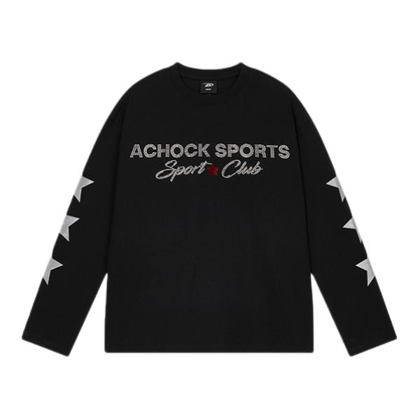 ACHOCK你果然不让我失望 星星印花+碎钻钉珠设计很有氛围感 美式复古那味儿不就来了吗 面料是那种软糯的棉感宽松度刚刚好 我选的黑色的还很百搭 我158 86斤 穿的S尺码 宝宝们做参考