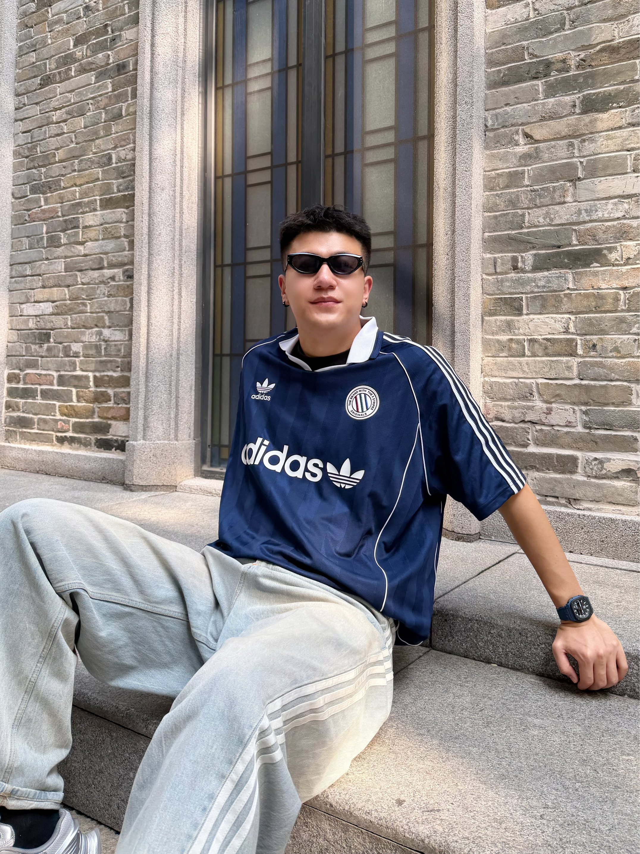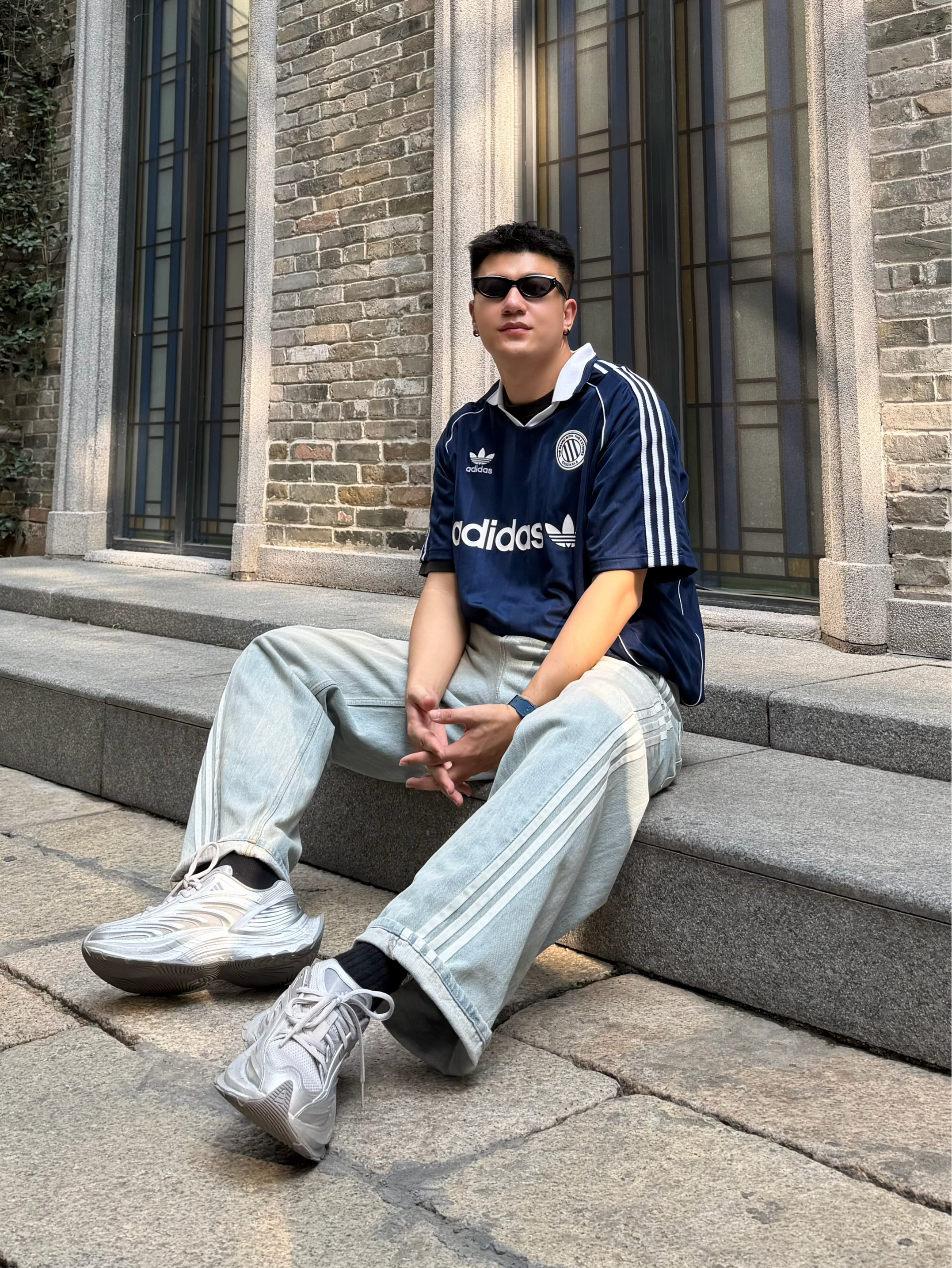 个人感觉这一身很出片 三叶草☘️靛蓝polo叠穿黑T恤,层次感没的说 搭配同品牌浅蓝牛仔裤,宽松不闷热 阿迪银灰老爹鞋,颜值脚感都巨赞👍🏻 整个look就是那种不费力的潮感😎 👦🏻:188 | 85 👕:XL 👖:36