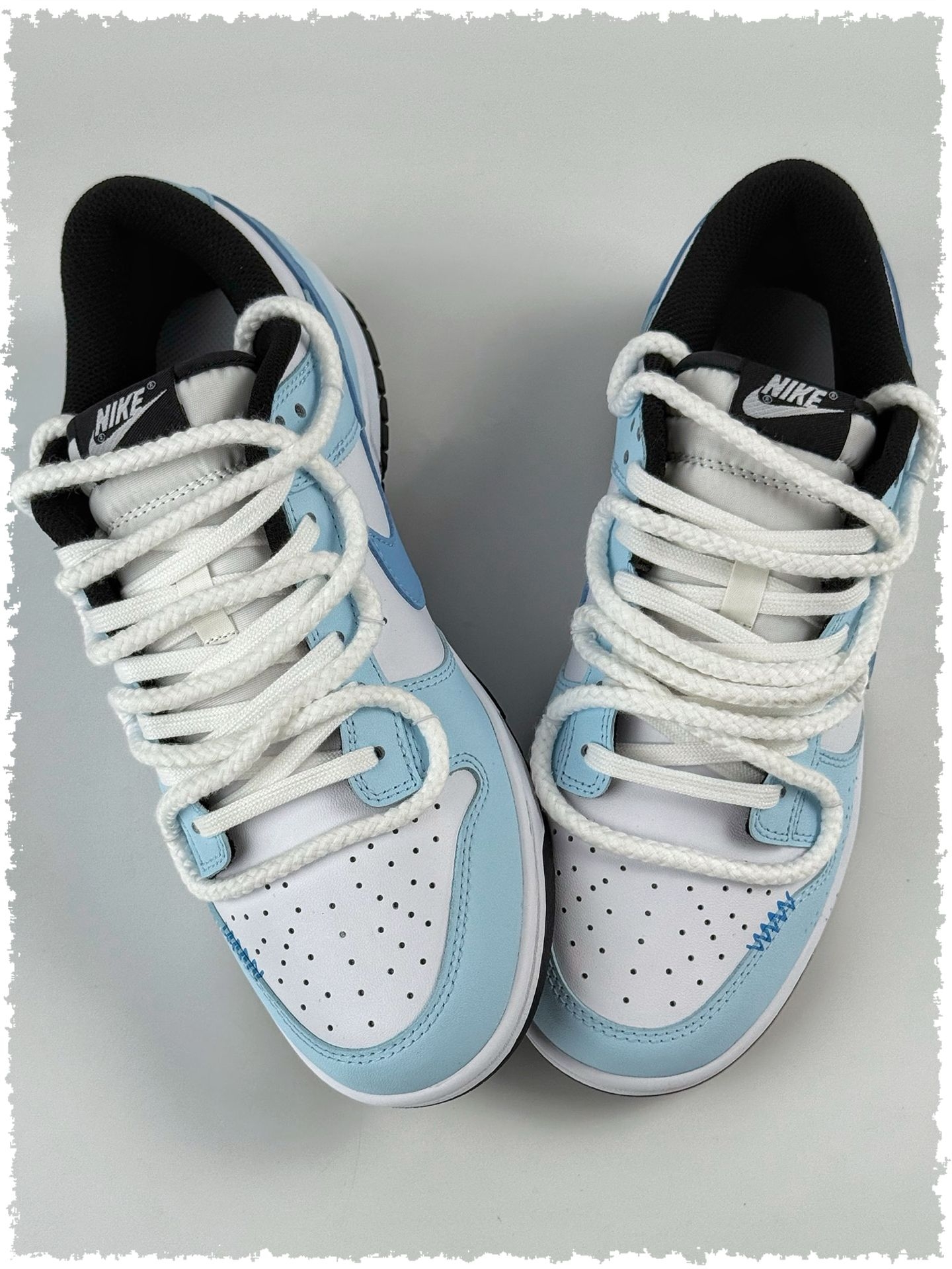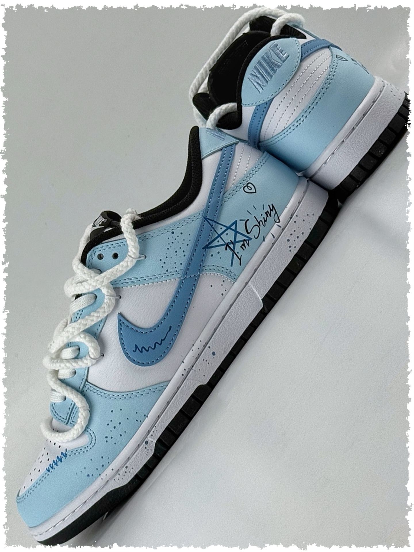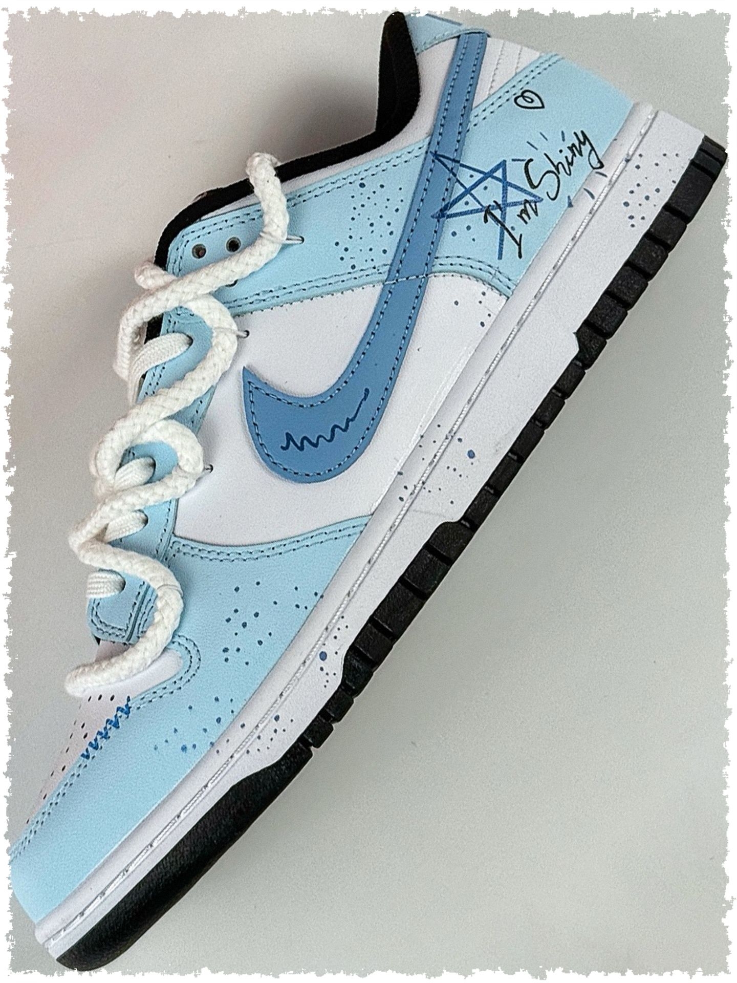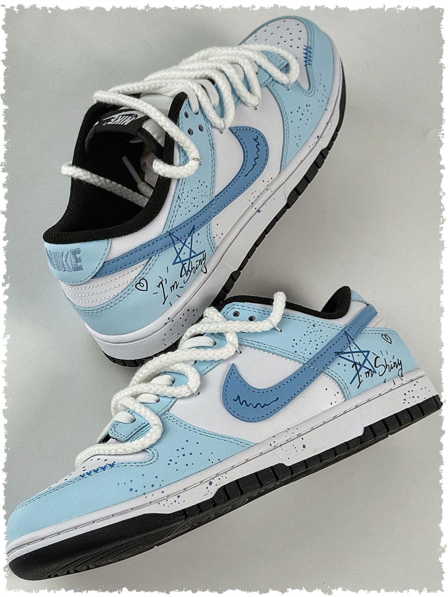 这双自带“降温魔法”🧊的宝藏板鞋必须安利给姐妹们!治愈感满满的浅蓝色调🔷,是“谁穿谁好看”的百搭神器✨,甜妹盐系少年都能轻松驾驭~ 作为夏日小清新穿搭的灵魂单品👟,Nike Dunk简直为夏天量身打造!奶呼呼的淡蓝色鞋面像融化的冰淇淋🍦,搭配鞋侧俏皮涂鸦🎨,让造型瞬间活泼。低头可见仿佛踩了片迷你蓝天☁️,呼吸都变清新~ 最惊喜的是视觉降温效果❄️!阳光洒在鞋面上折射柔和光泽,远看像揣着移动的大海🌊...