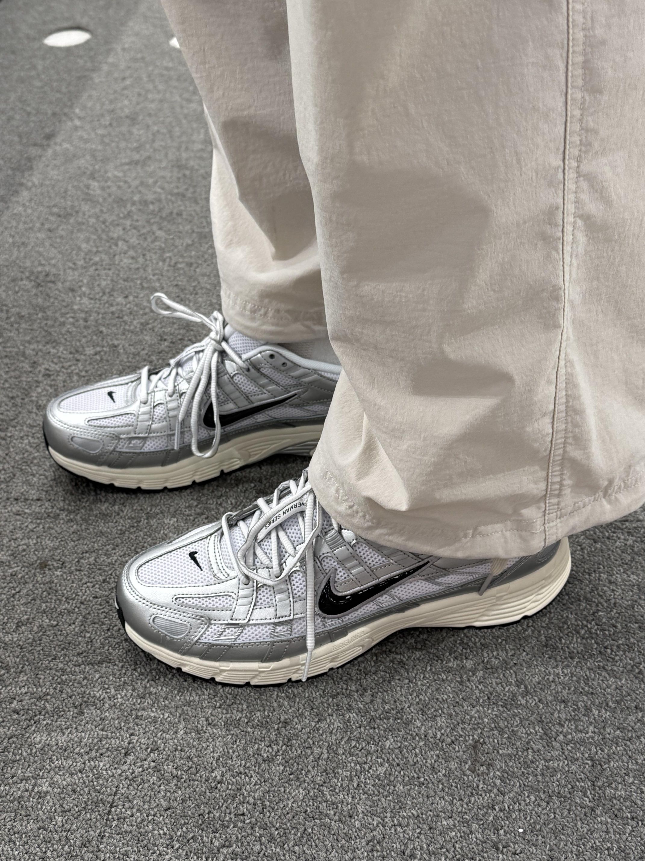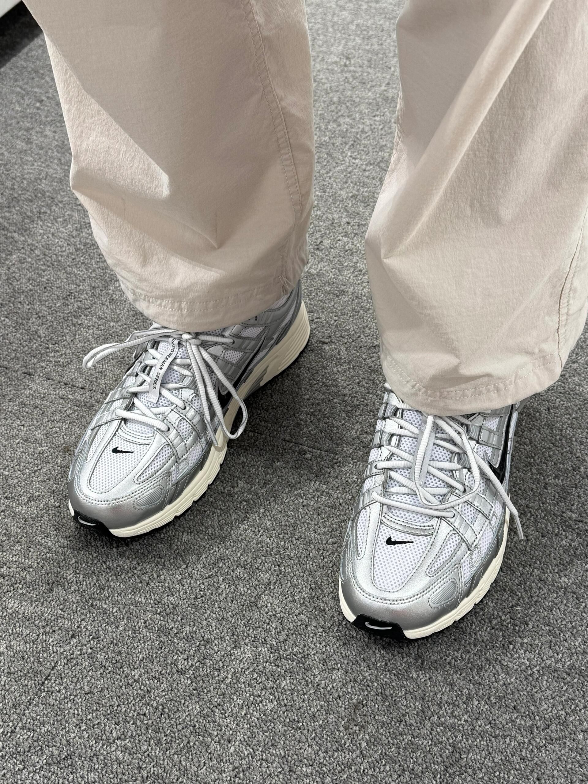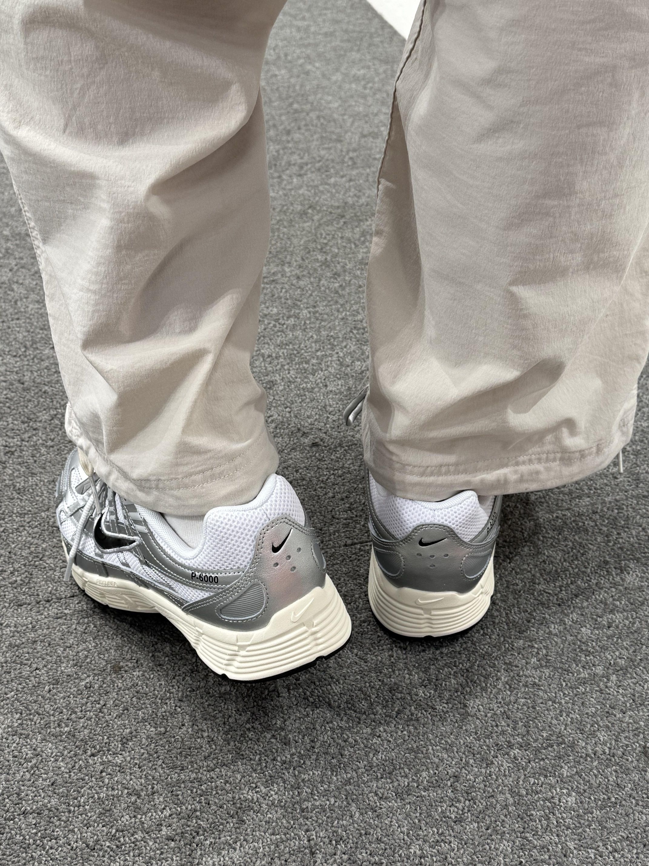 🆕P6000以银色为主色调, 搭配白色鞋带和米白色鞋底, 形成简洁明快的视觉层次。🤍 鞋面采用网眼材质,增强透气性; 表面融入条纹元素,提升动感与现代感。 适合日常穿搭或运动场景,👽👽 凸显低调中的细节巧思。🩶🖤