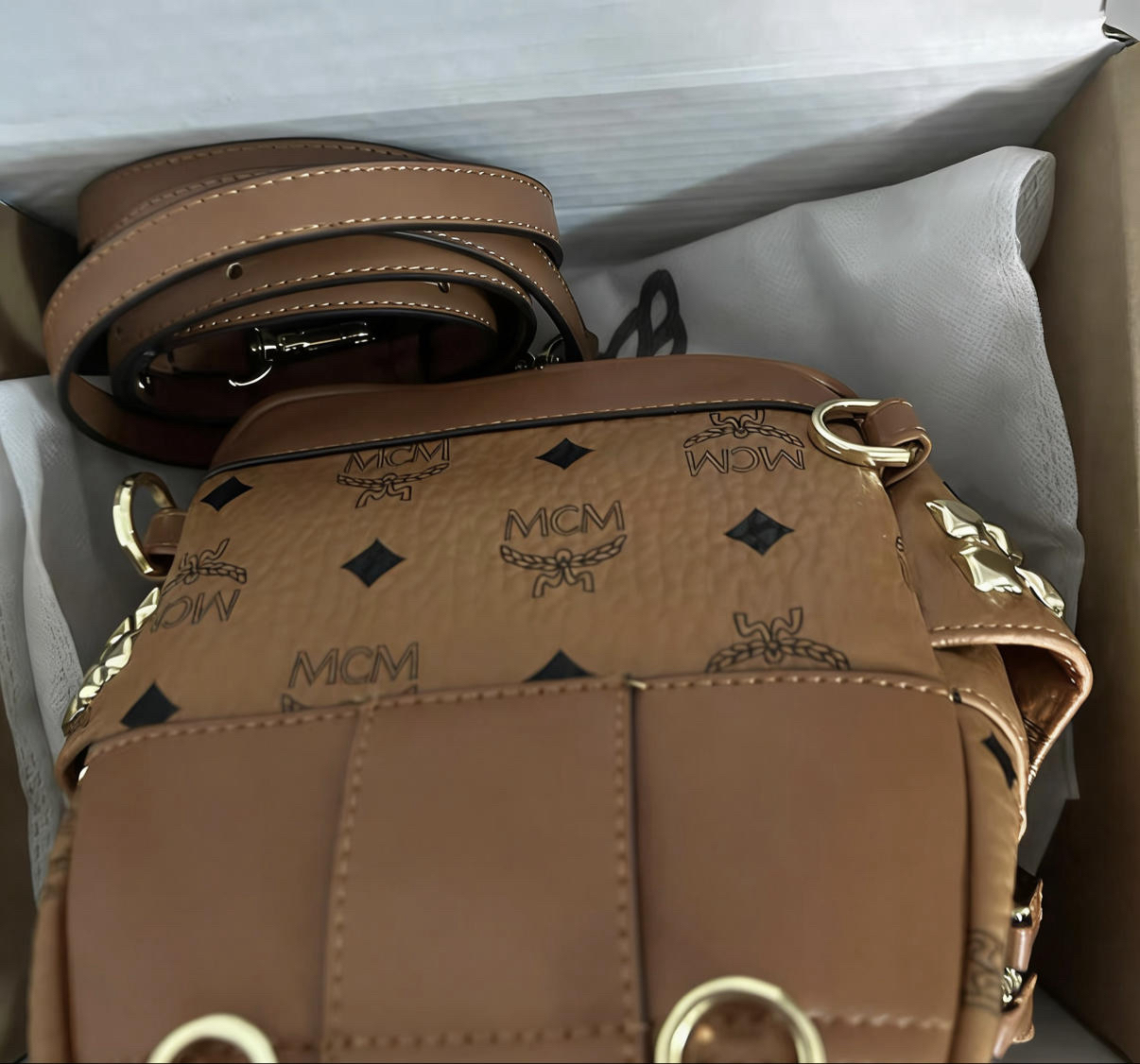 本篇笔记关联了MCM Stark Visetos 迷你 经典侧边铆钉双侧铆钉轮廓老花满印印花涂层牛皮革三合一手提斜挎双肩包 棕色干邑色 等商品,为用户提供真实的使用体验和购买参考。
