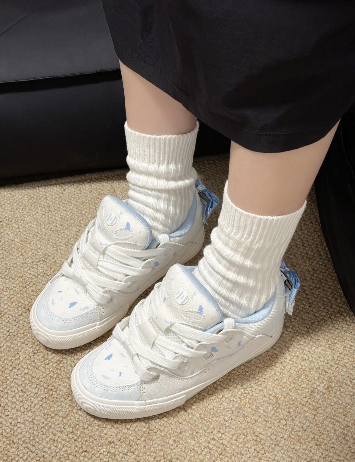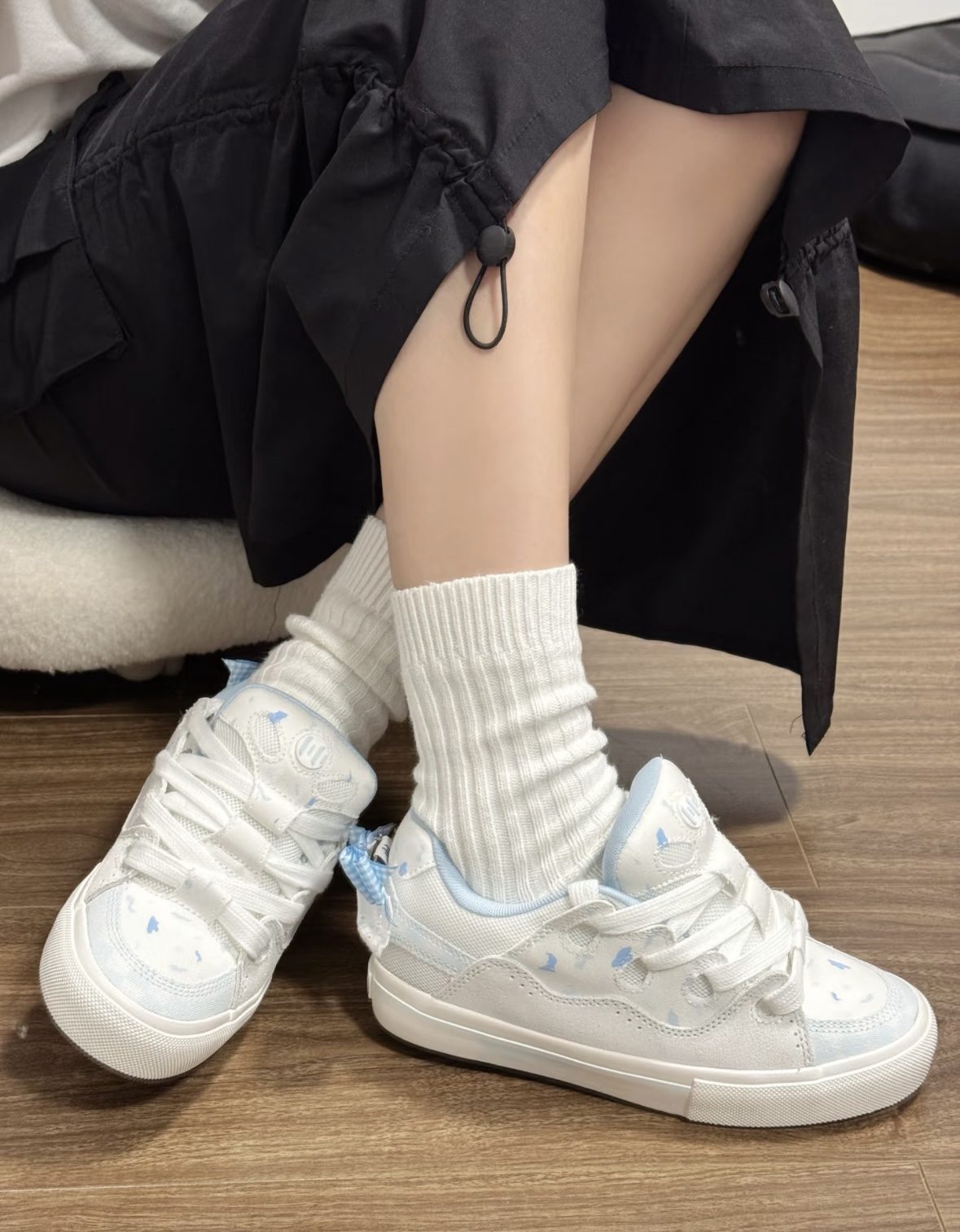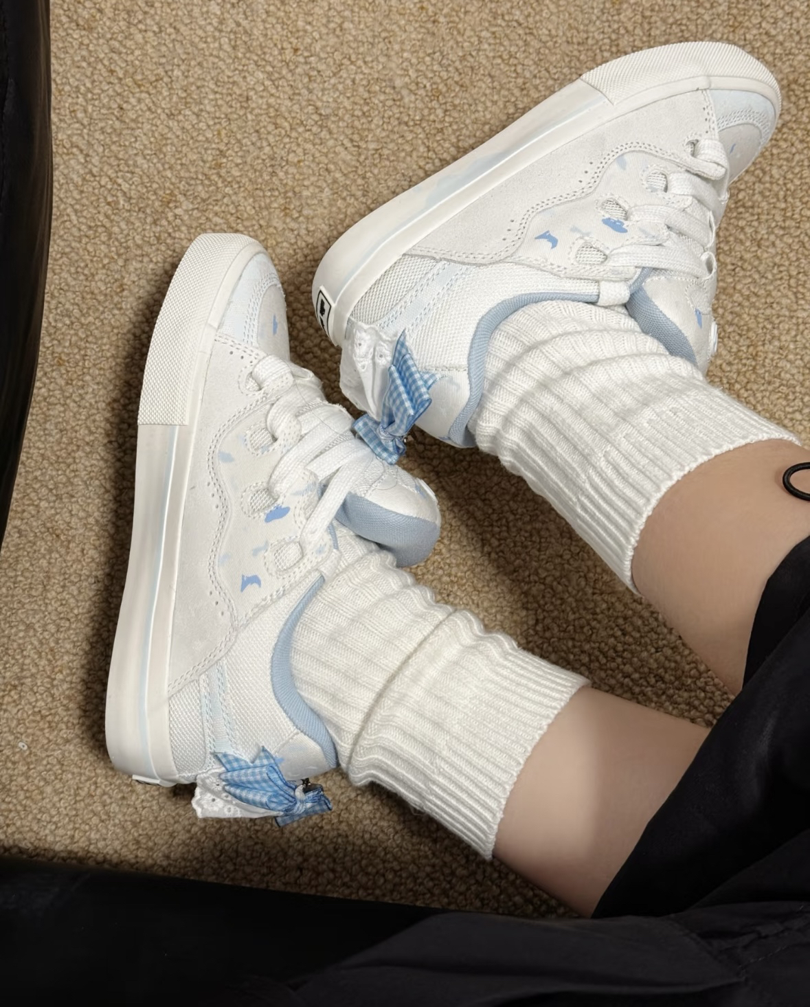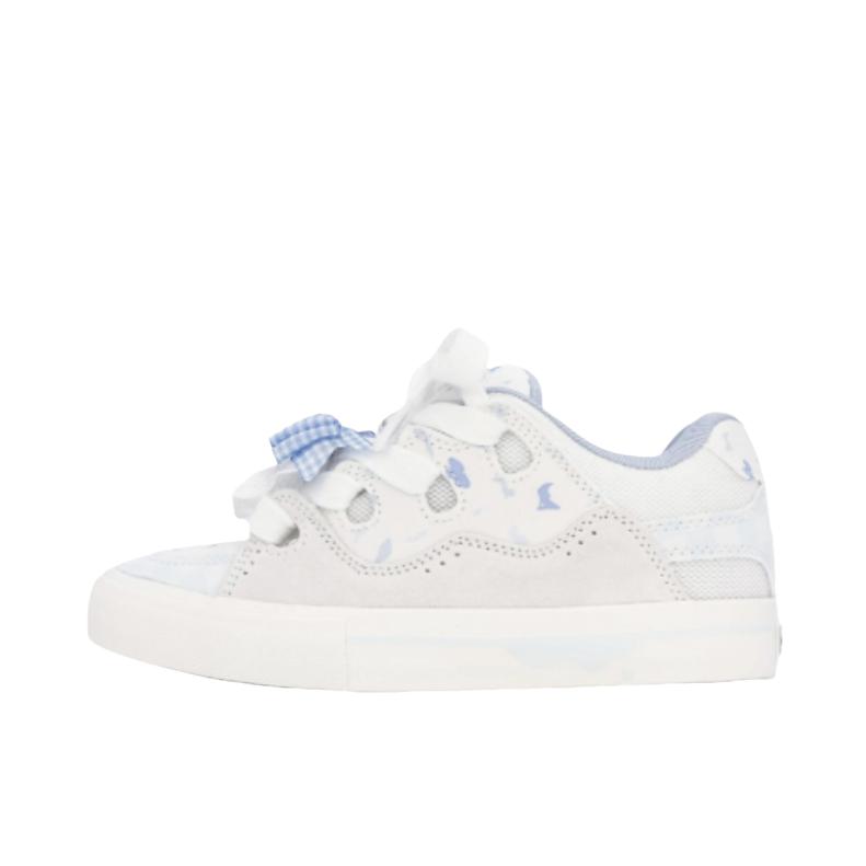 颜值:奶白+淡蓝晕染,后跟立体蝴蝶+蕾丝边,自带洛丽塔少女感。 • 舒适:麂皮网布透气,鞋底软弹,久走不累,鞋型秀气不挑脚。 • 百搭:配JK裙、牛仔裤都好看,一年四季都能穿。 • 细节:蝴蝶印花与立体装饰呼应,精致感拉满。