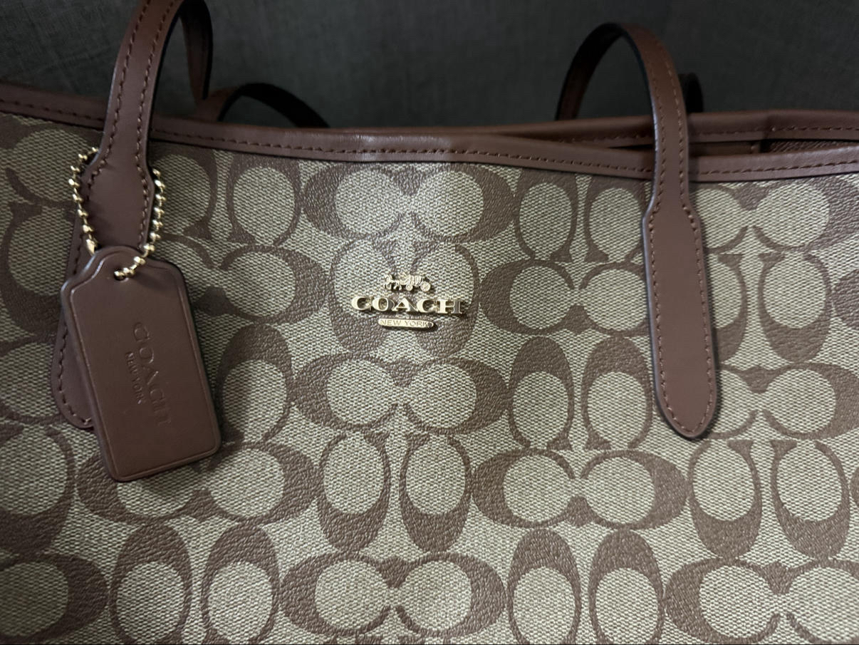 本篇笔记关联了Coach City Tote 33系列 大号 大容量PVC老花敞口撞色涂层帆布配皮按扣开合托特单肩手提包 棕咖色 等商品,为用户提供真实的使用体验和购买参考。