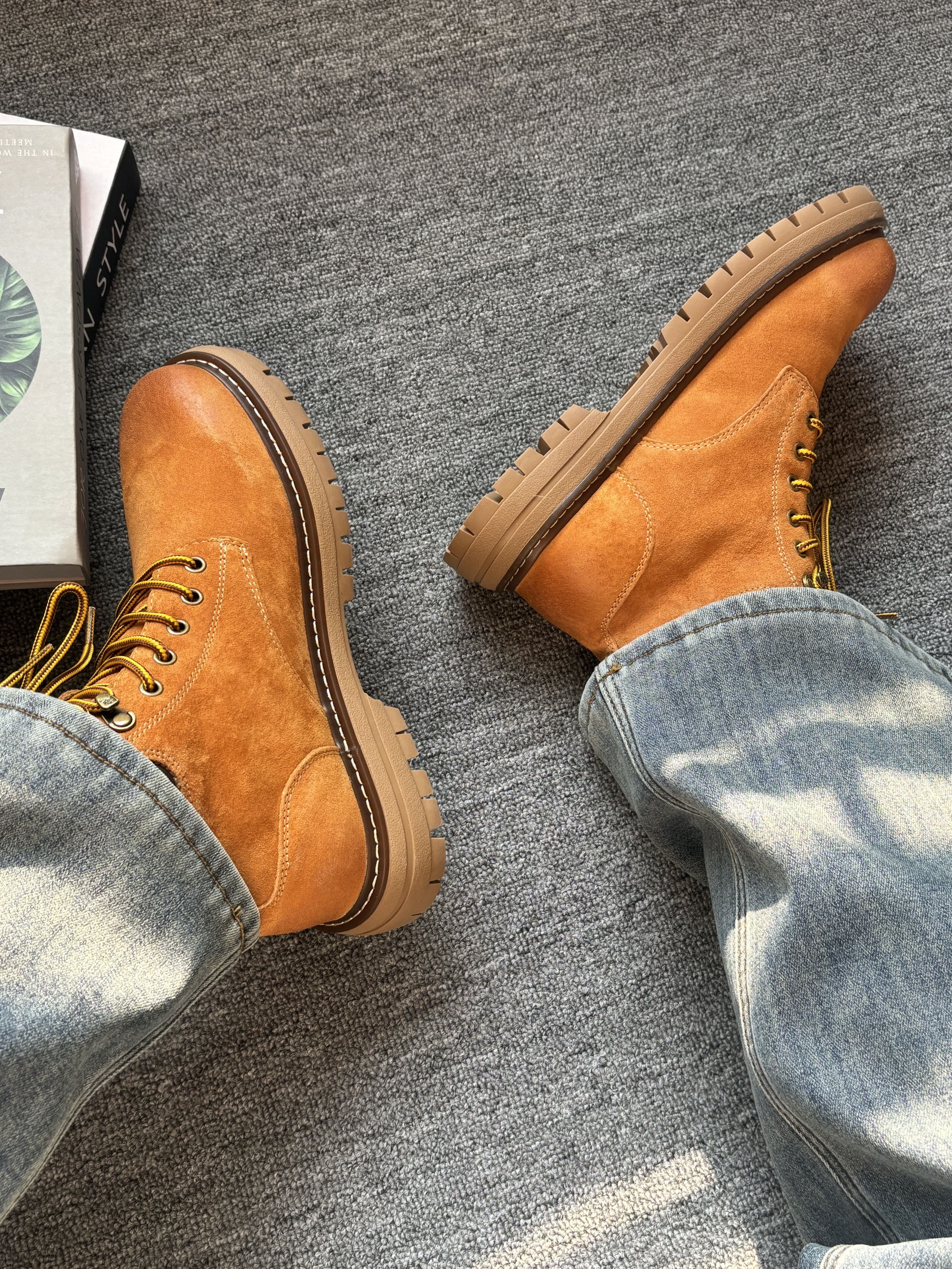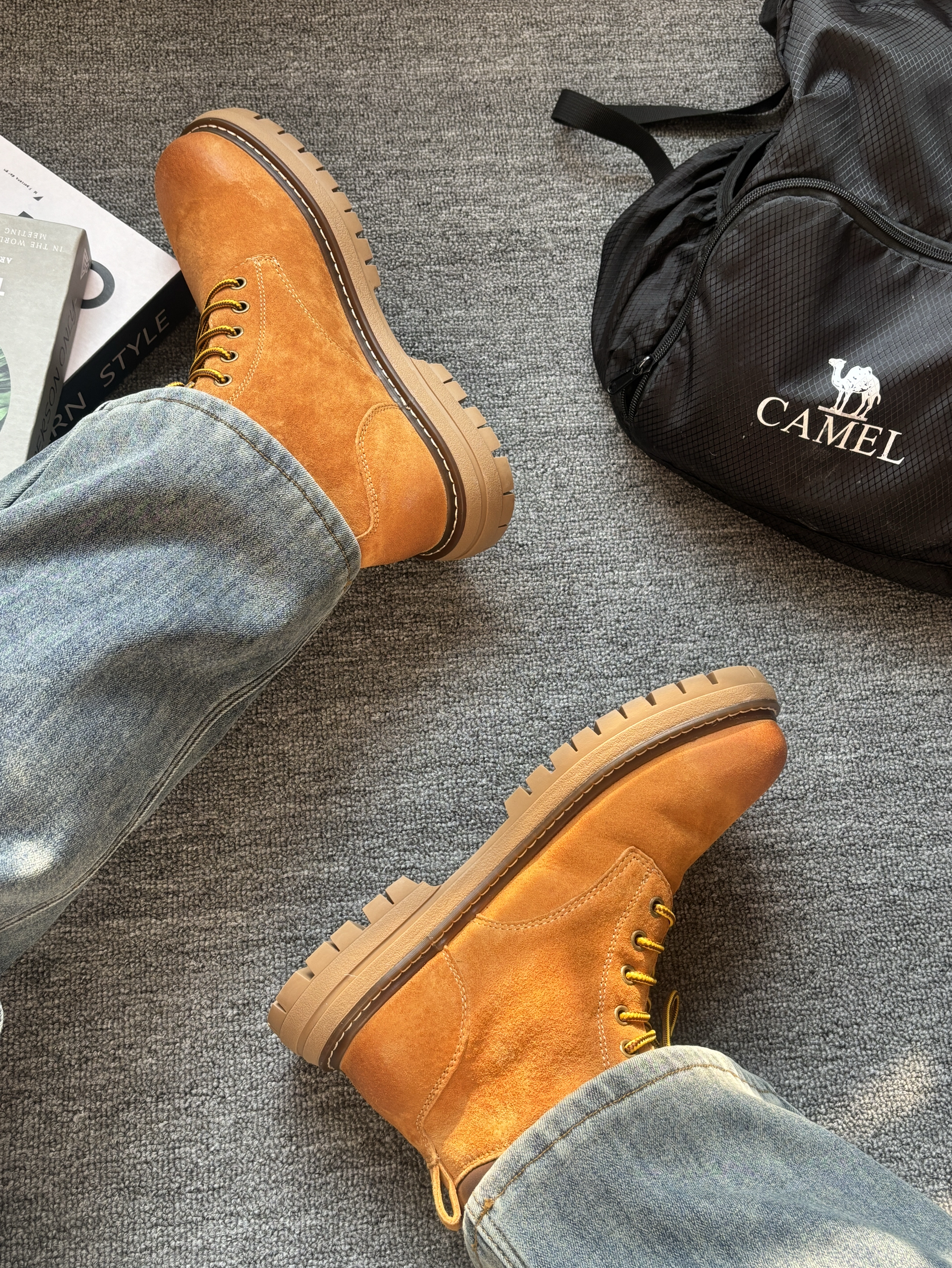 一直觉得,一双经典的大黄靴是男士衣柜里最值得的“长期投资”。这双骆驼大黄靴拿在手里很有分量,但穿上脚却意外地轻便,没有那种笨重下坠感。金黄色的磨砂皮质感很扎实,4cm 的厚底不仅自然地拉长了腿部线条,走起路来也多了一份脚踏实地的稳重感。在这个季节,加绒的内里就像是一个安静的拥抱,给了双脚最直接的温度,不再畏惧寒风。🌡️🌾 关于穿着体验,它并不是那种需要漫长“磨合期”的硬靴。内里的触感很细腻,即便是...