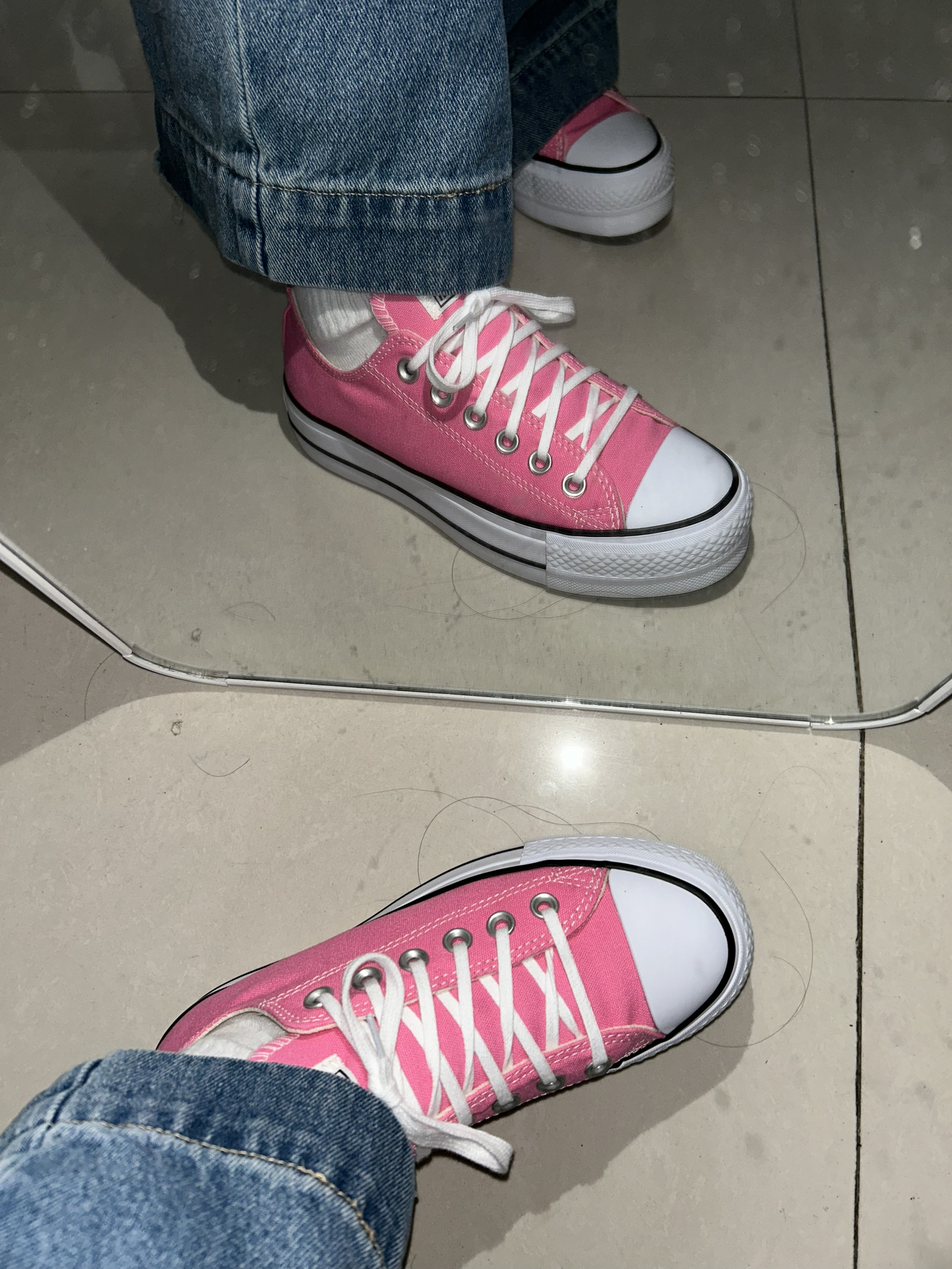 匡威粉色厚底鞋真的焊在脚上! 柔雾粉不挑皮,厚底悄悄拉长腿型, 搭配牛仔裤,甜妹变酷盖,松弛感拉满~ 走路稳不磨脚,日常出街/约会都好穿, 早春穿搭有这一双就够