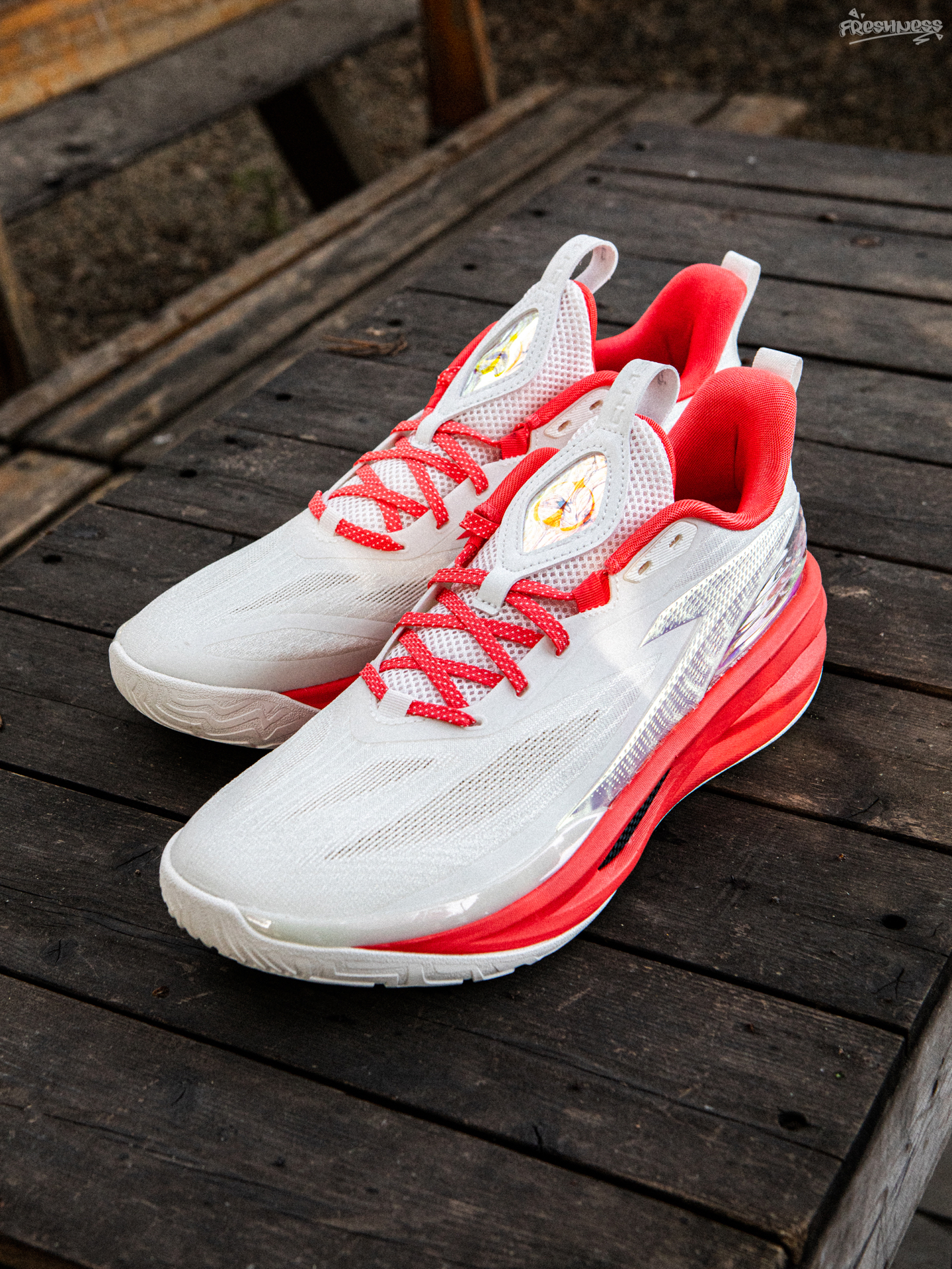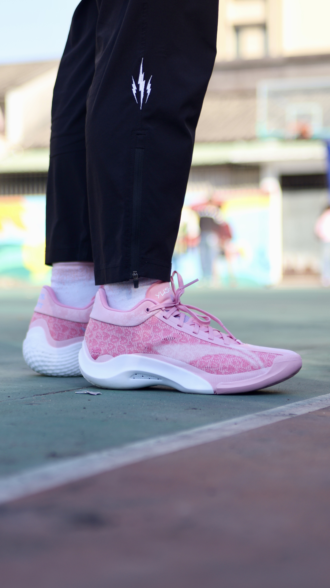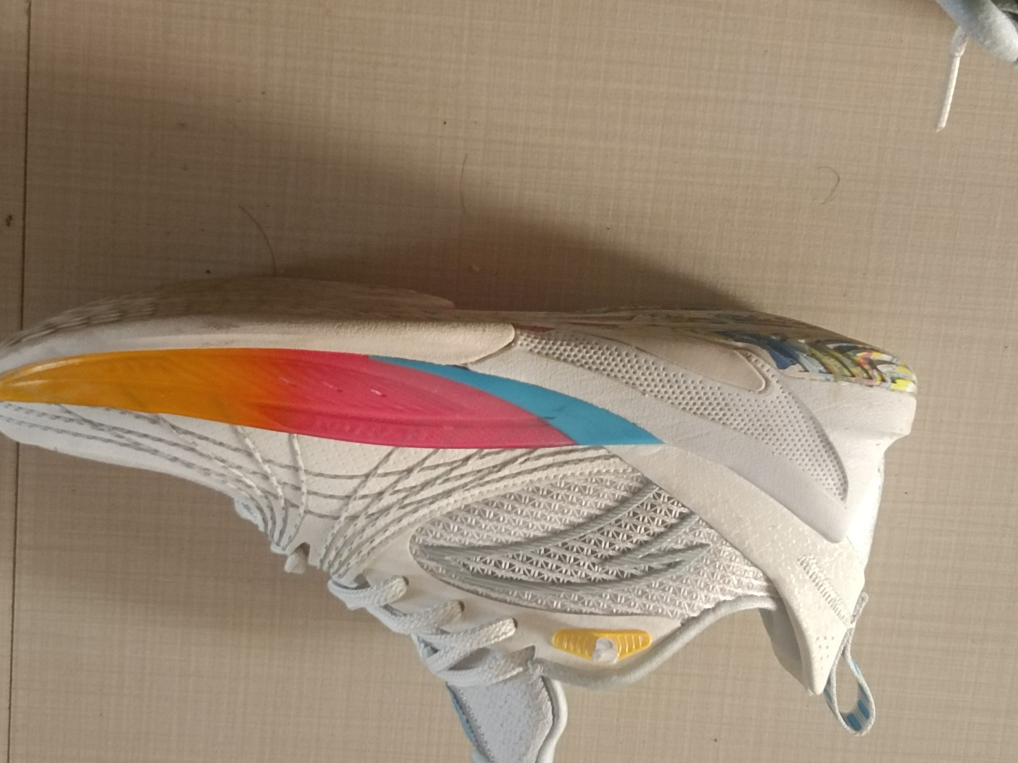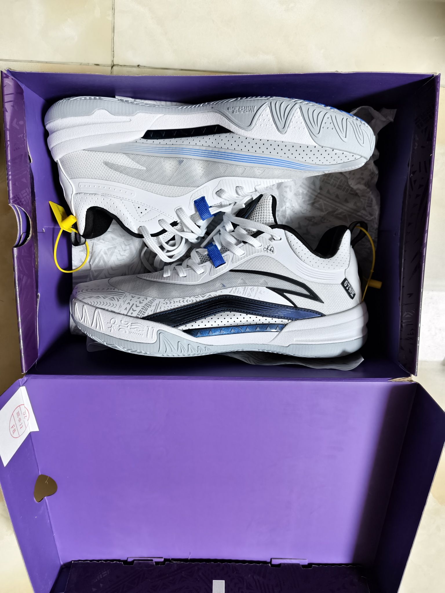这双特步灵击3是杨皓喆PE款,“双子星”鸳鸯配色颜值拉满。全掌XTEP ACE超临界中底+后掌飞羽框架,脚感韧弹,缓震极限不错。搭配全掌抗扭尼龙板和环抱TPU,变向急停很稳。高强绞综鞋面包裹到位,宽脚也友好。外底是高倍耐磨橡胶,水泥地实战毫无压力。