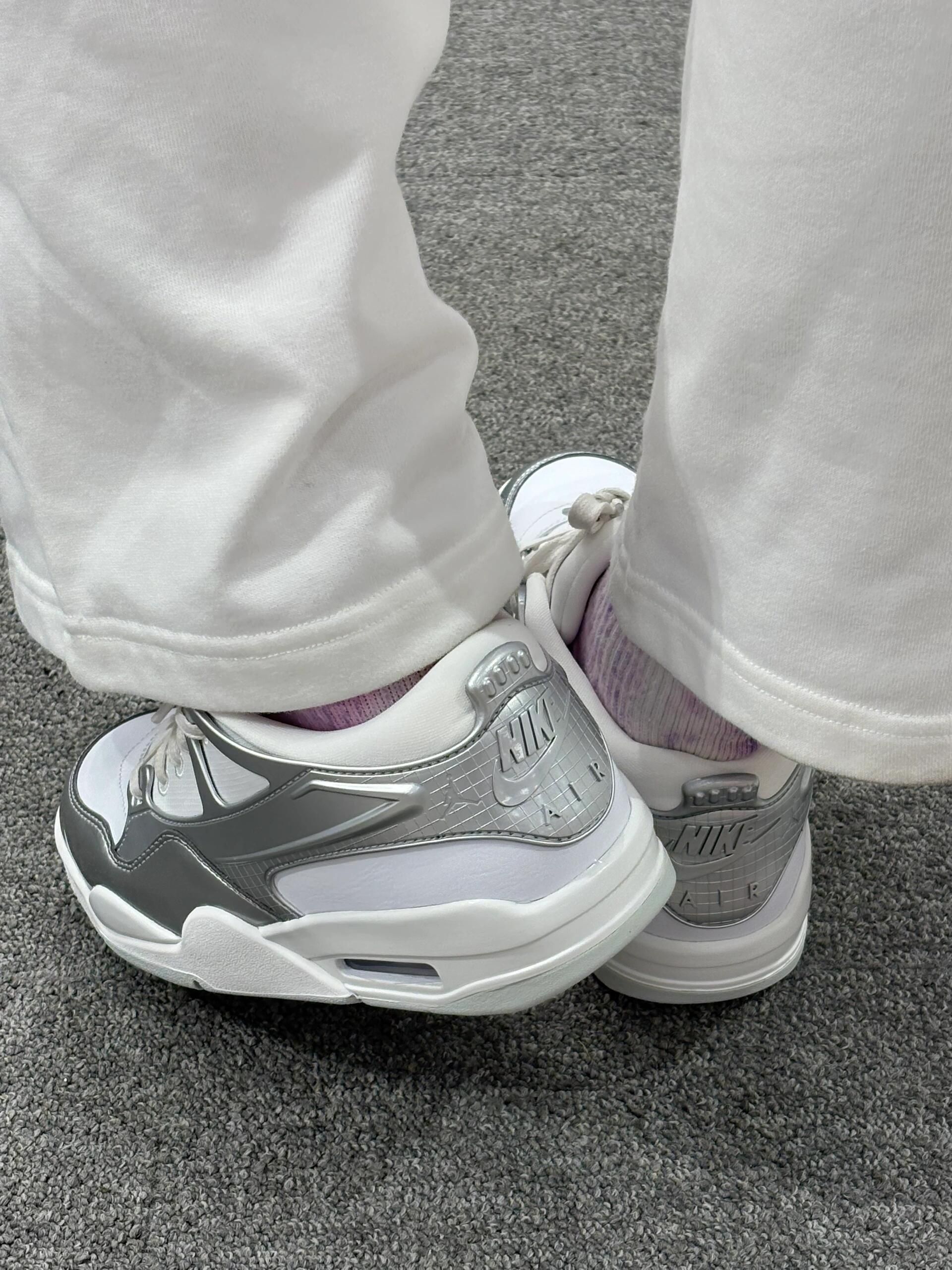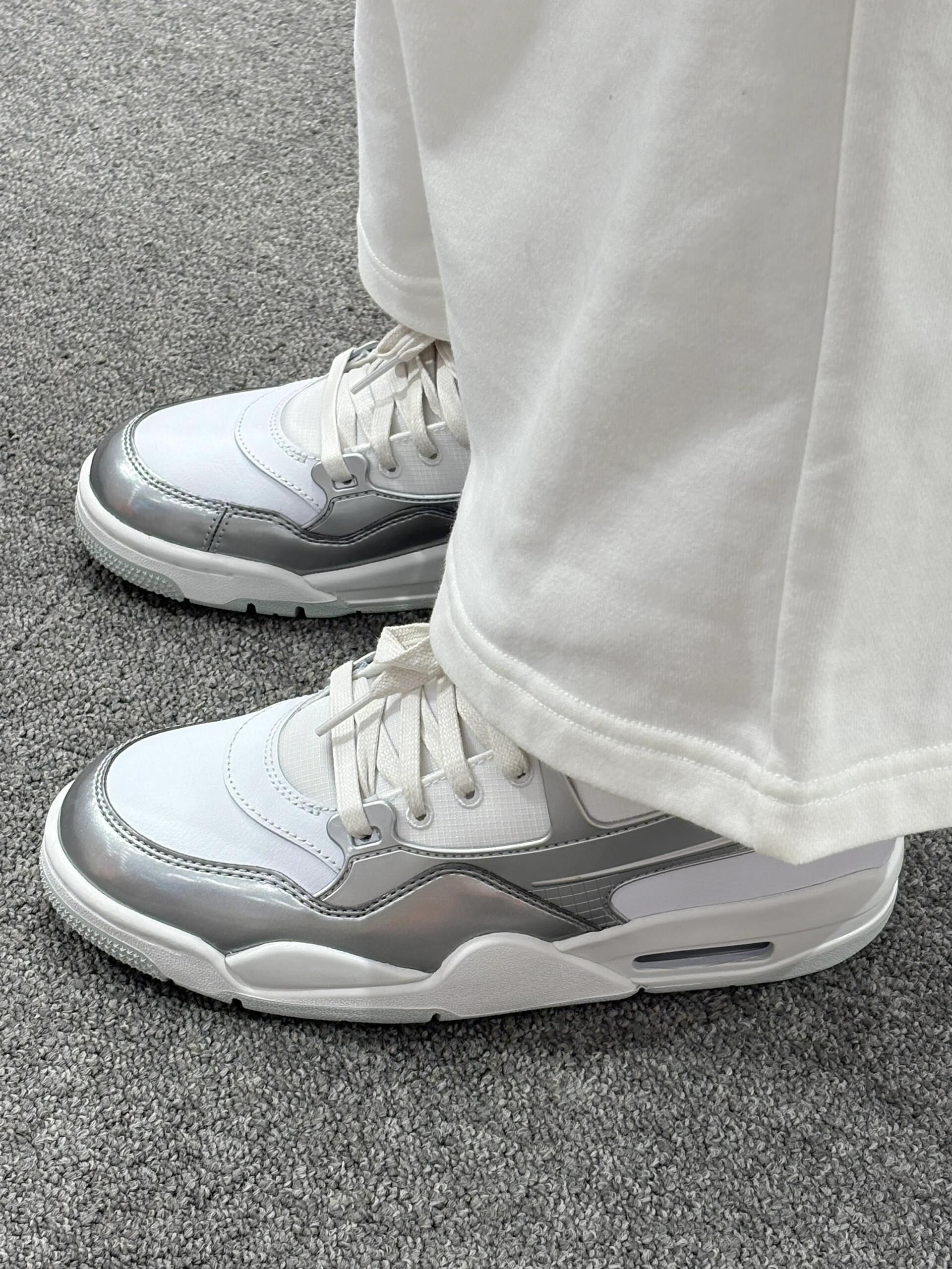 AJ4 RM白银配色一整个高级!✨ 白色鞋面在阳光下仿佛自带高光,💡 未来感十足,穿上它,回头率爆表 。👽 沿用AJ4鞋型,流畅的线条搭配利落的剪裁, 不仅修饰腿型,更将酷飒的街头风格展现得淋漓尽致。独特的金属质感,让这双鞋在一众球鞋中脱颖而出。 无论是搭配运动裤,还是牛仔裤、短裙,📸 它都能完美适配,轻松打造出时尚感爆棚的穿搭。