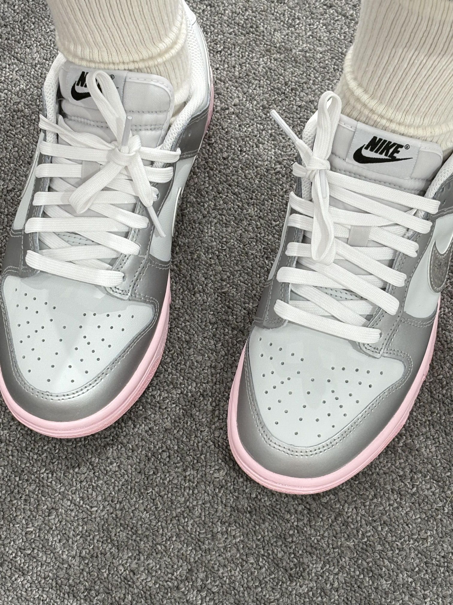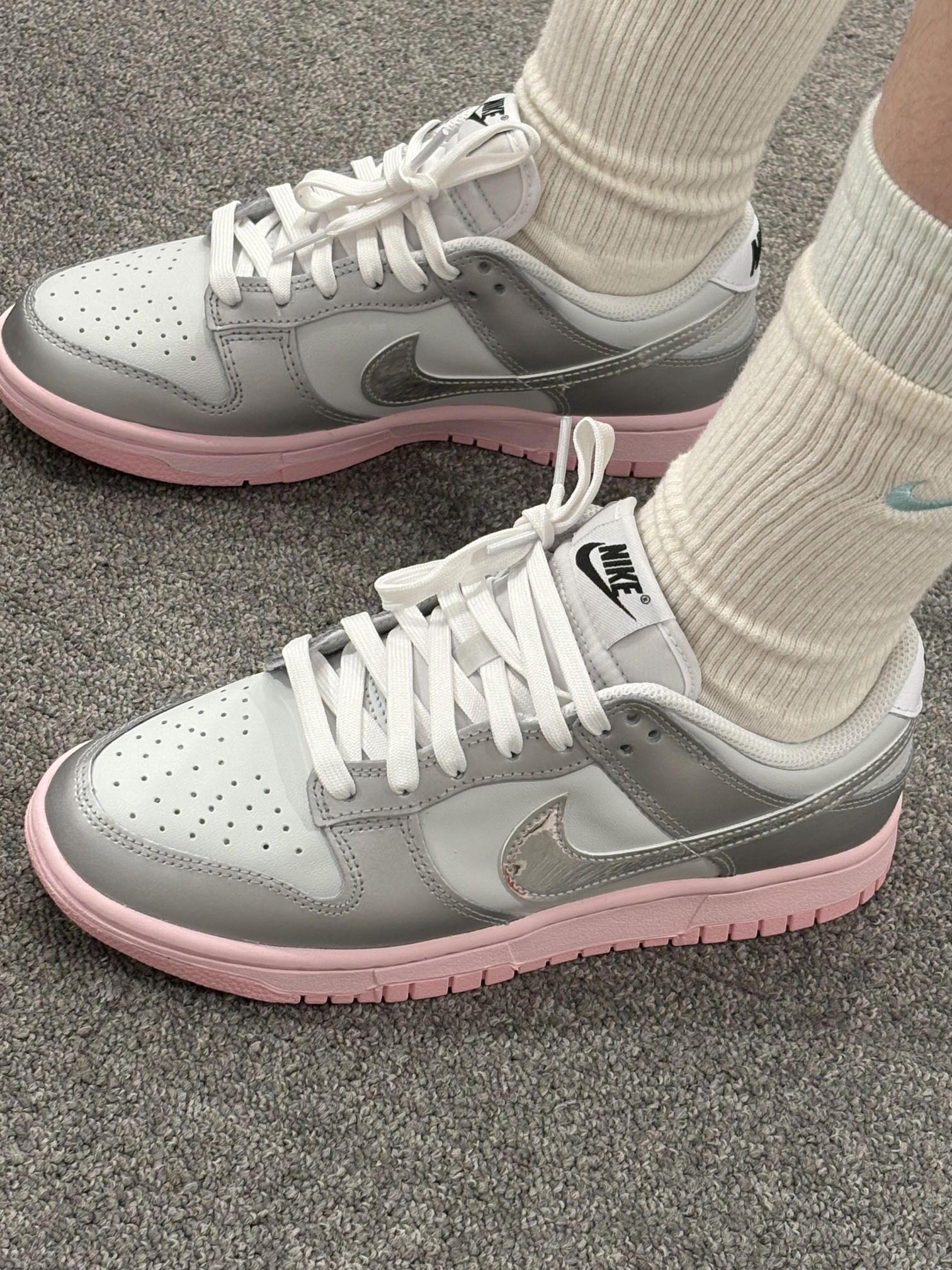 Nike Dunk LOW低帮板鞋,🫧 电镀银➕粉色也太好看啦! 甜酷又有Y2K少女感~ 夏天穿这种色就很耐看!简单又高级! 随便搭牛仔还是裙子都好看,✨ 属于夏天的精致感!🌷🌷