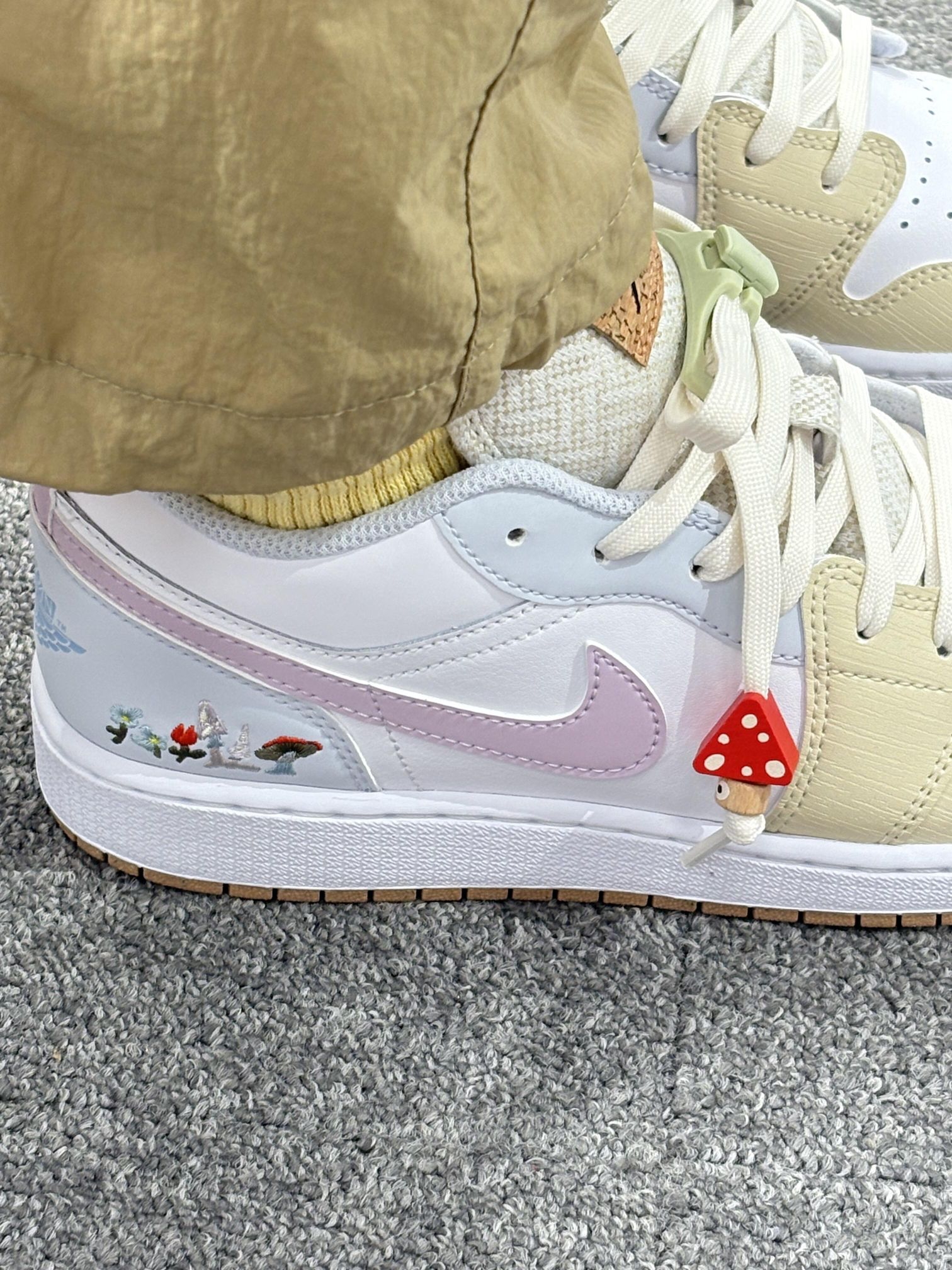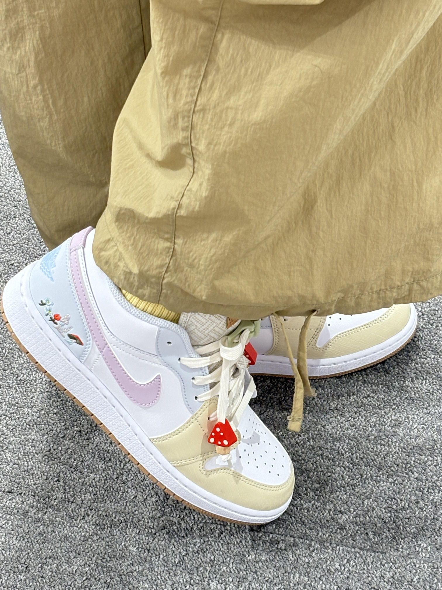 AJ1 GS新配色真的很好看, 刺绣绣花小粉勾,长在了我的审美上。 鞋带自带鞋扣不用系,谁懂这个细节的用心! 简直是懒人神扣!🍍🍍🍍 方便百搭,甜出圈的心动好鞋!✨