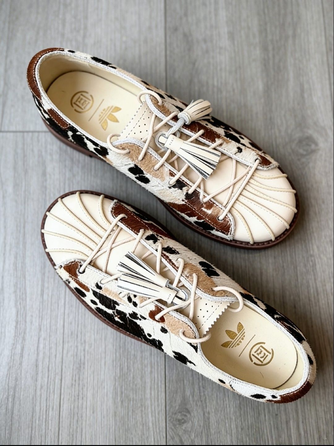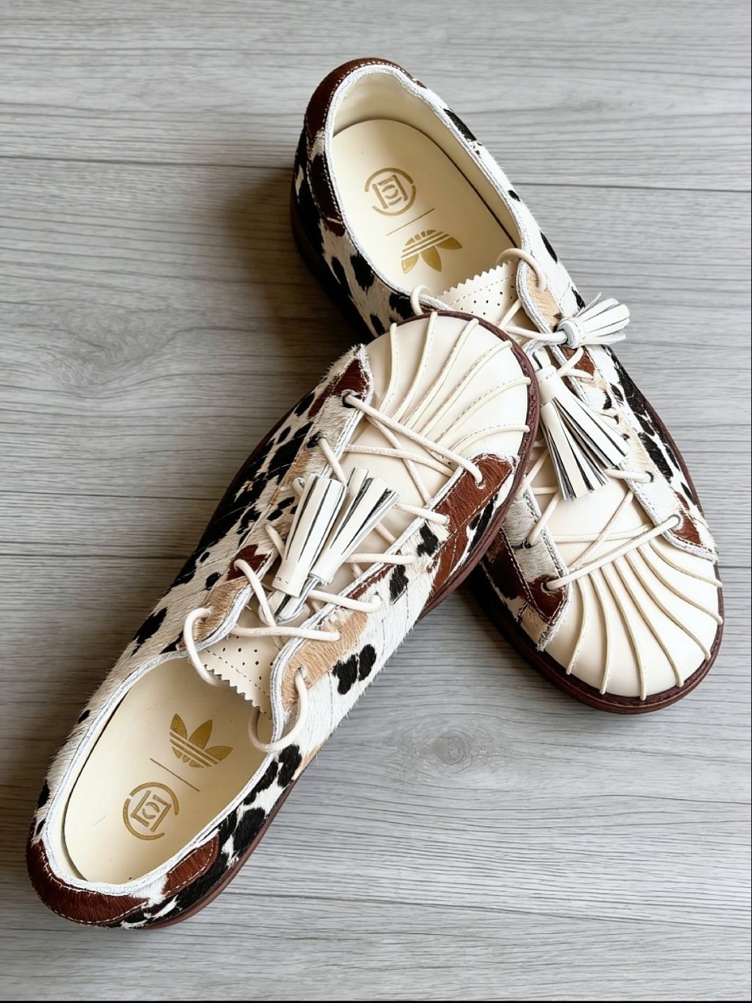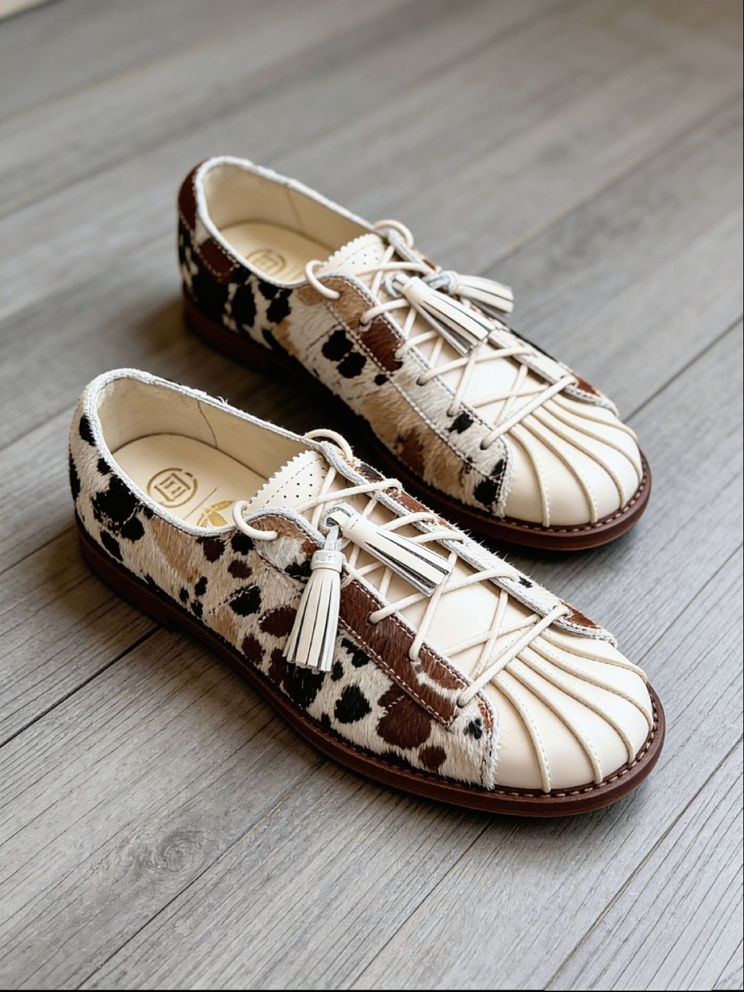 情人节的仪式感从一双鞋开始~ 这双奶牛纹单鞋真的又乖又特别,流苏走路的时候轻轻晃,自带氛围感! 打算配一条米白色长裙穿,走在街上应该会被要链接吧😌