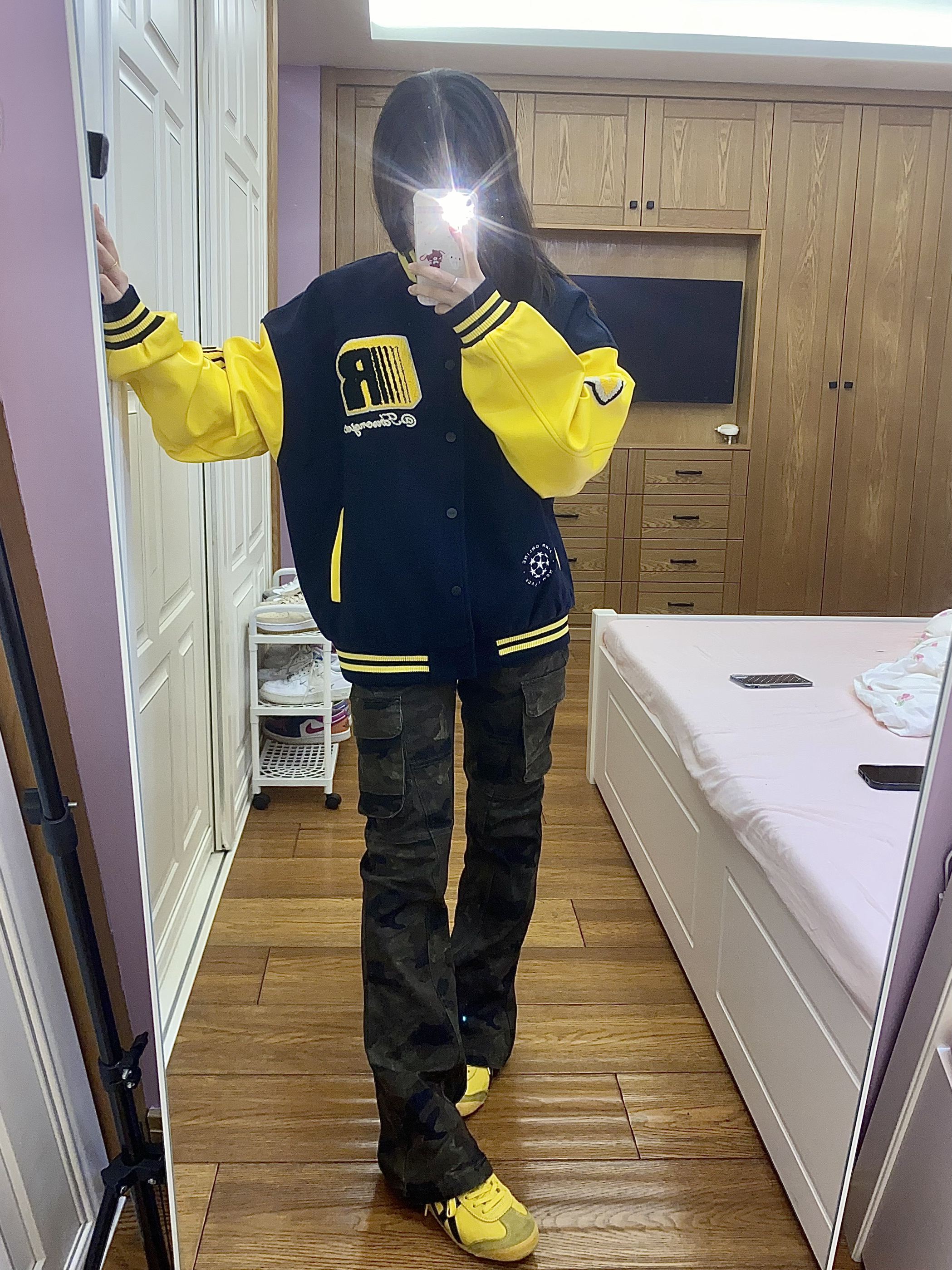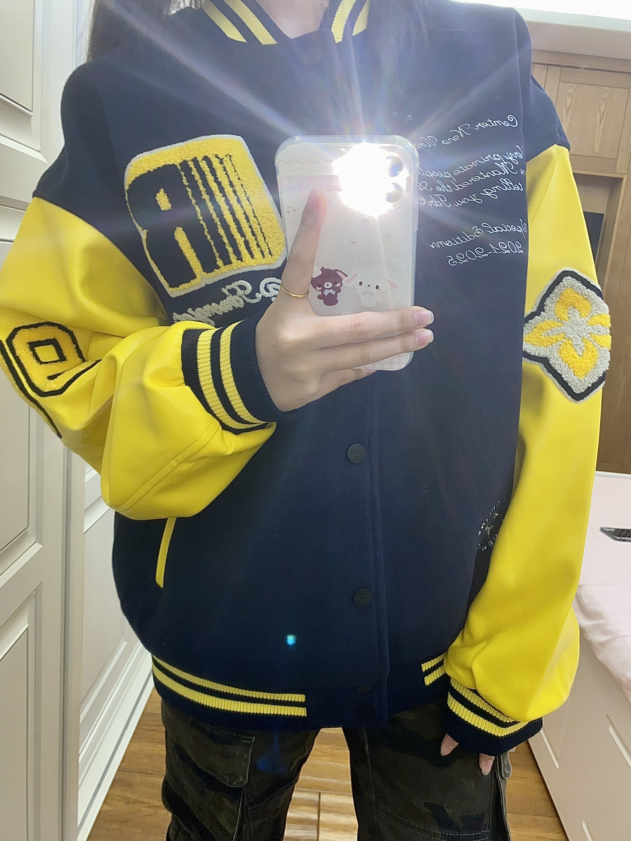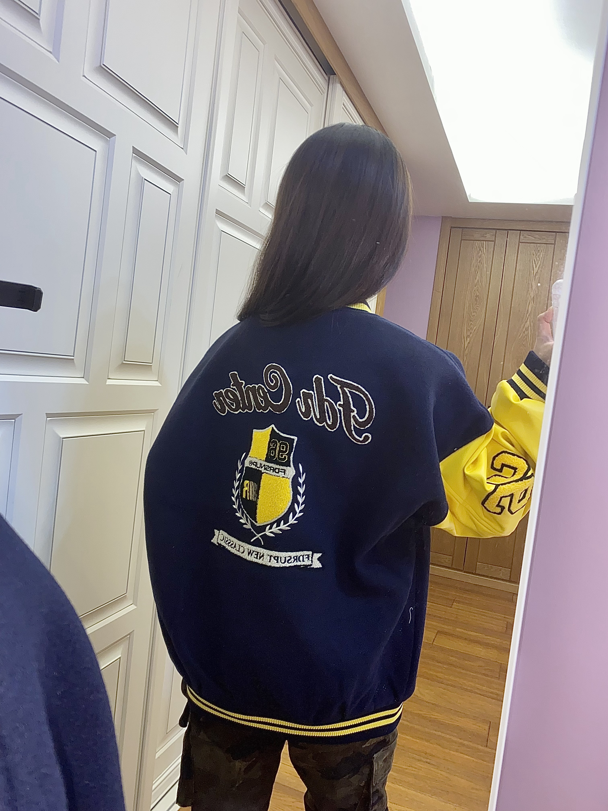 今天穿的一件 FDR 家的衣服 藏蓝色与黄色的夹克外套 本身藏蓝色就很显白耐看的啦 再搭配一个黄色的撞色设计 整体又帅又酷滴!![耍帅_blue][耍帅_blue] 很适合秋冬穿 怎么搭都好看 衣服面料也是很厚实的秋冬穿很舒服保暖噢 我160 93穿的m码~[惊喜_blue][惊喜_blue]