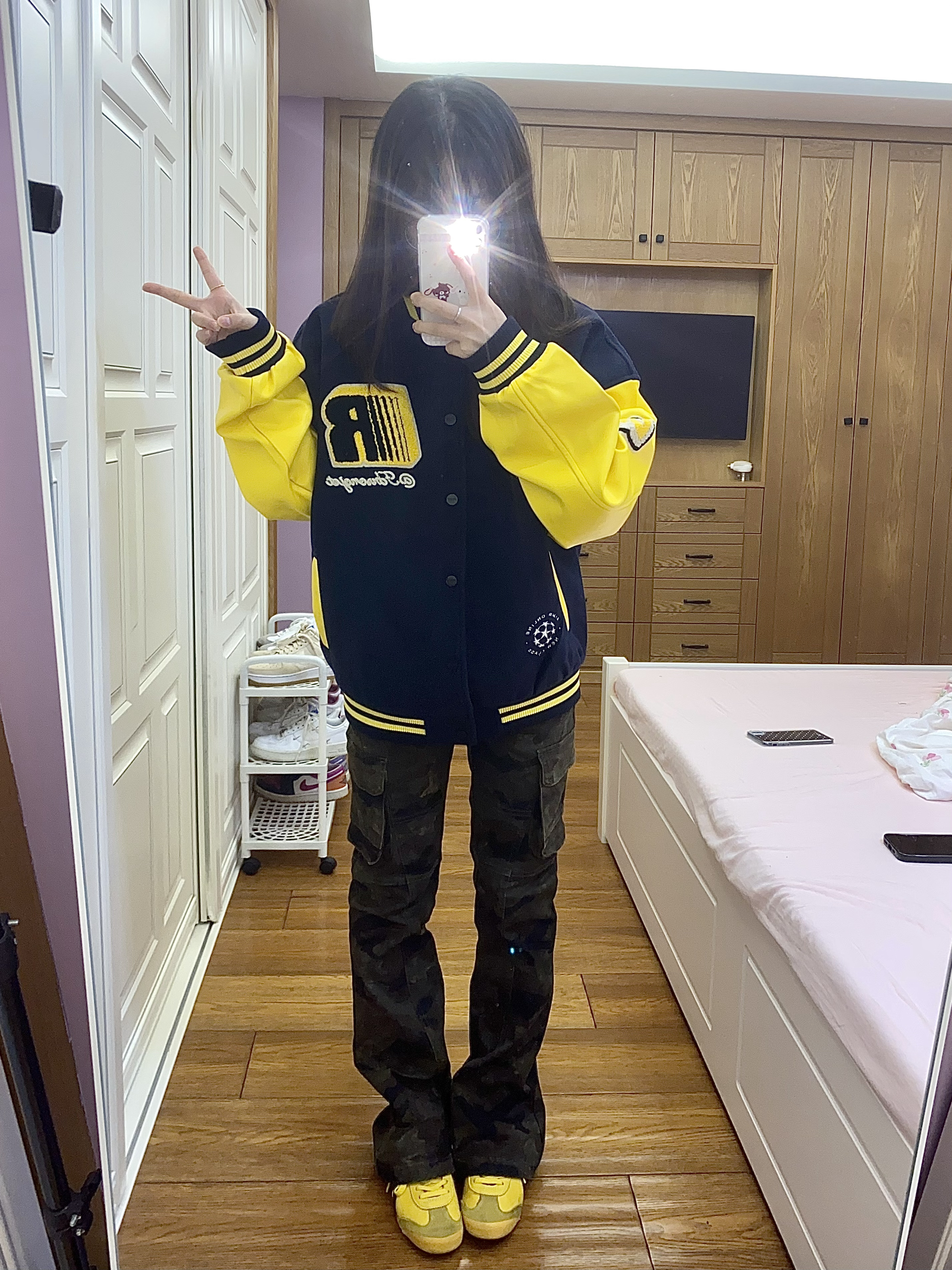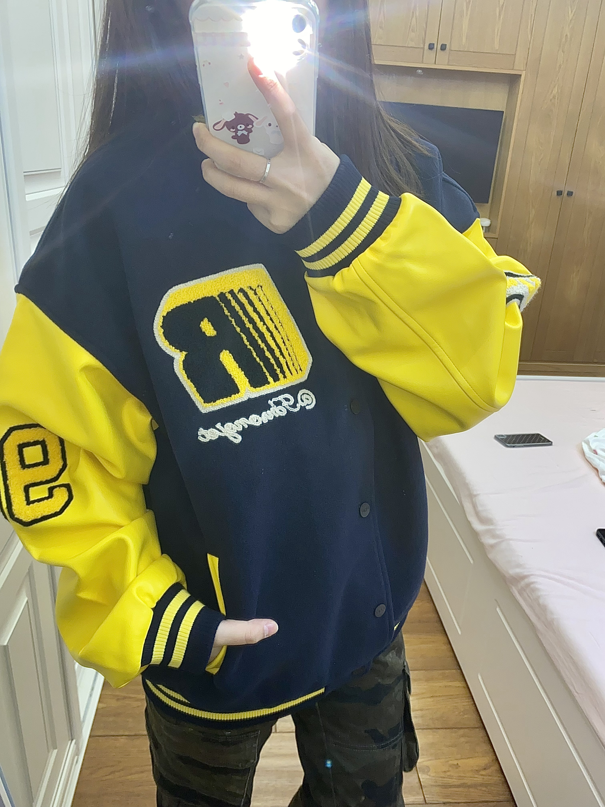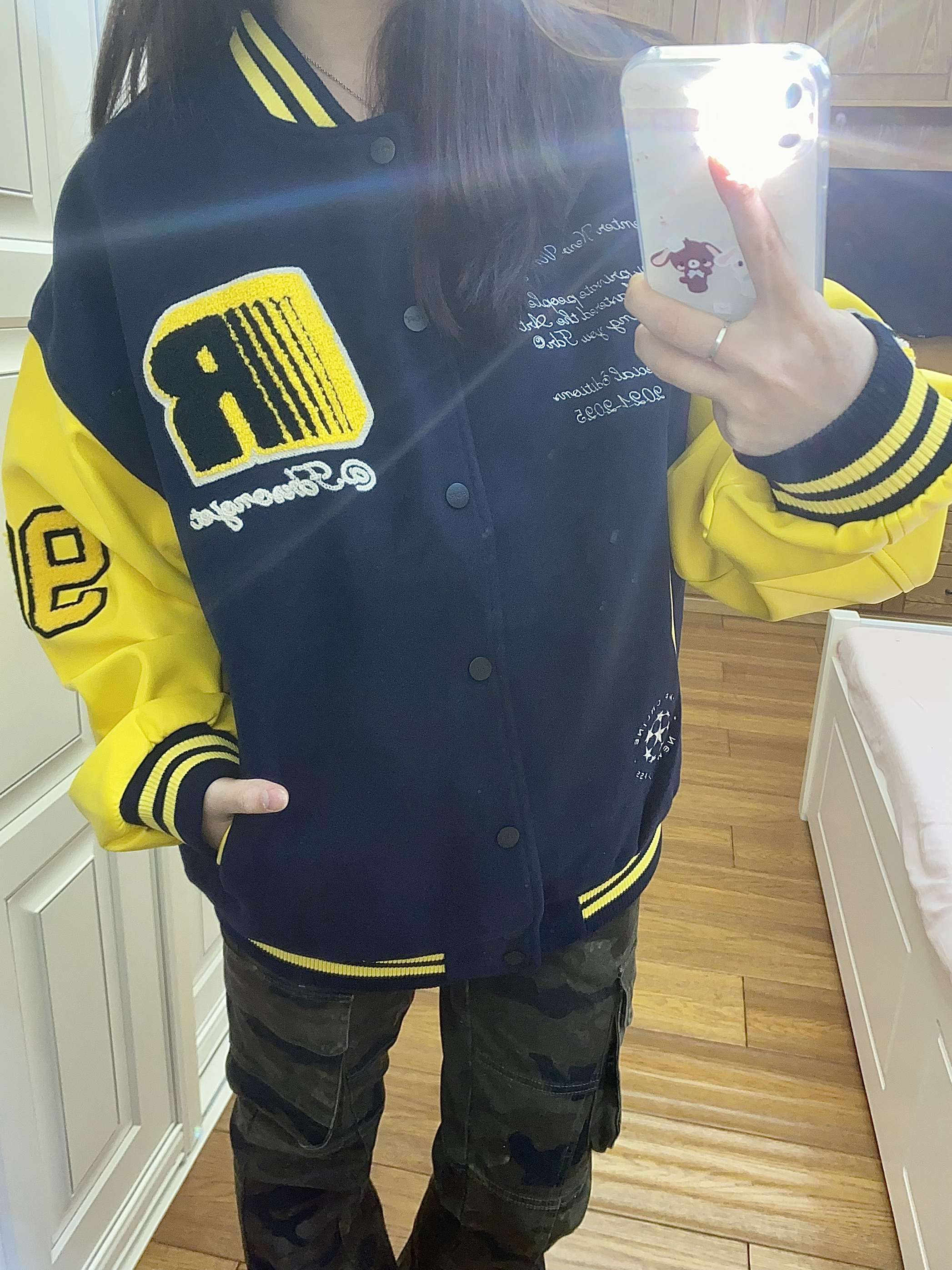 今天穿的一件 FDR 家的衣服 藏蓝色与黄色的夹克外套 本身藏蓝色就很显白耐看的啦 再搭配一个黄色的撞色设计 整体又帅又酷滴!![耍帅_blue][耍帅_blue] 很适合秋冬穿 怎么搭都好看 衣服面料也是很厚实的秋冬穿很舒服保暖噢 我160 93穿的m码~[惊喜_blue][惊喜_blue]
