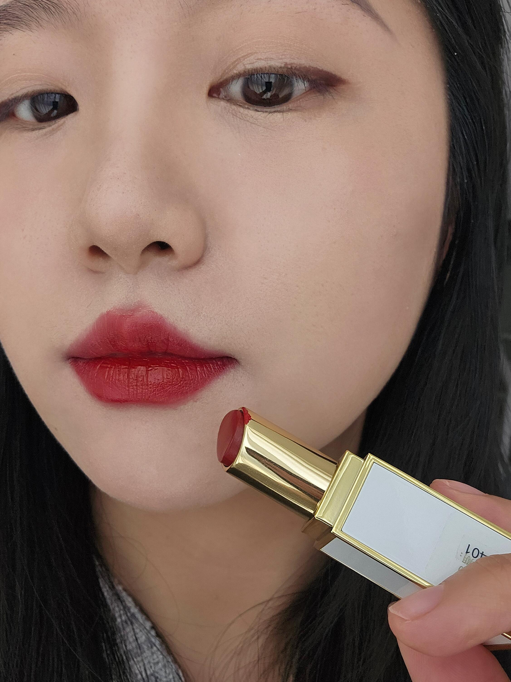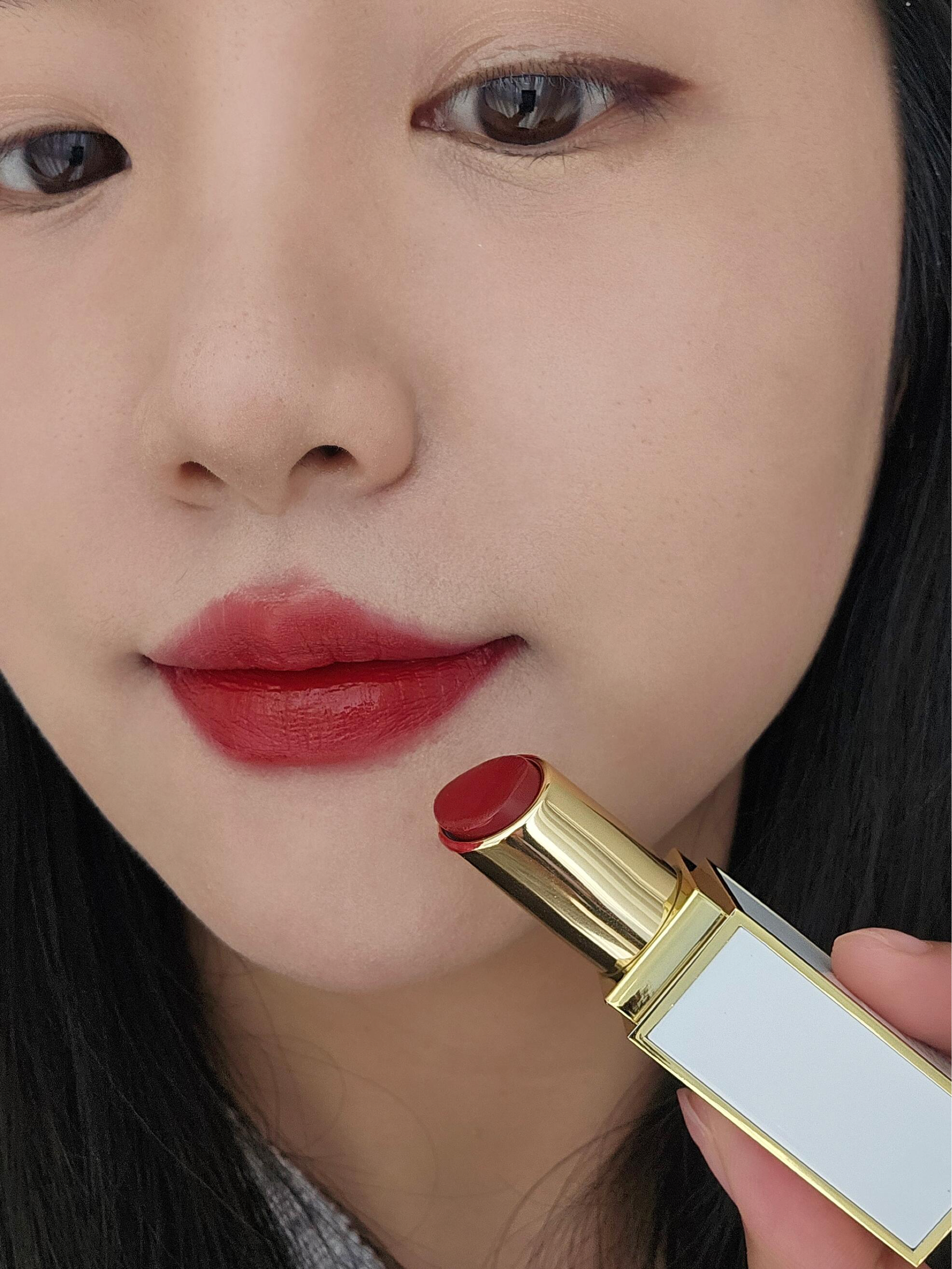 质感还是得看大牌 Tf白管160 优点:带紫调的红,带妆厚涂气场拉满 比较滋润,上嘴是缎光质感 缺点:价格贵,网上可以找到平替的颜色 不能素颜,素颜黄皮会显村