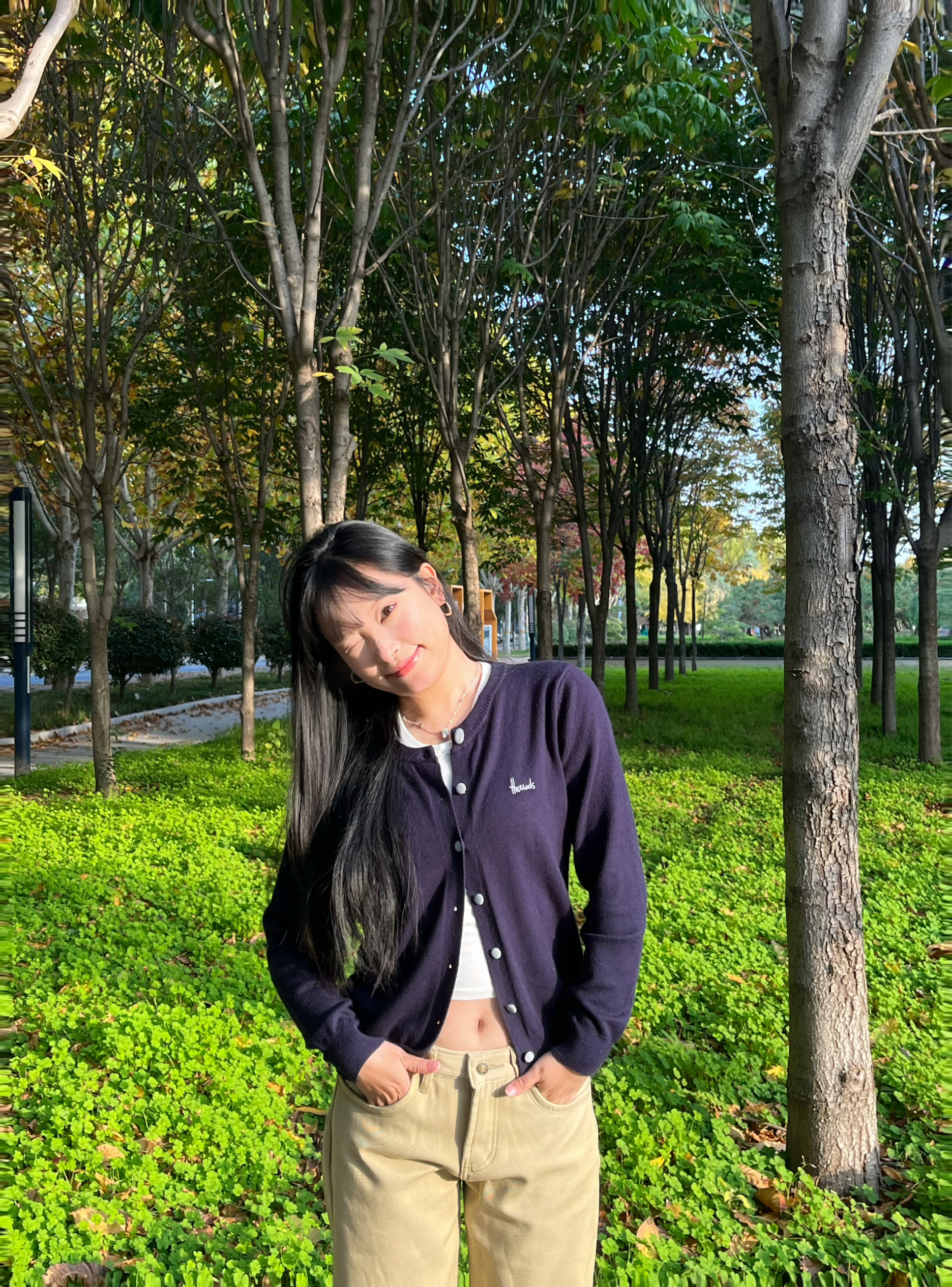早秋穿搭被这件开衫锁死辣! 身上这件Navigare藏青开衫 真的太戳我了 经典的藏青色巨显白,黄皮穿也毫无压力,版型是微宽松的H型,能悄悄遮肉显瘦 面料摸着软糯又挺括,贴身穿不扎肤,春秋单穿、冬天内搭都合适 不管是配牛仔裤还是半身裙,通勤、逛公园出片率都超高 细节做工也在线,简约不花哨,穿个三五年都不过时 我165穿M码,长度刚好盖过胯部,比例直接拉满