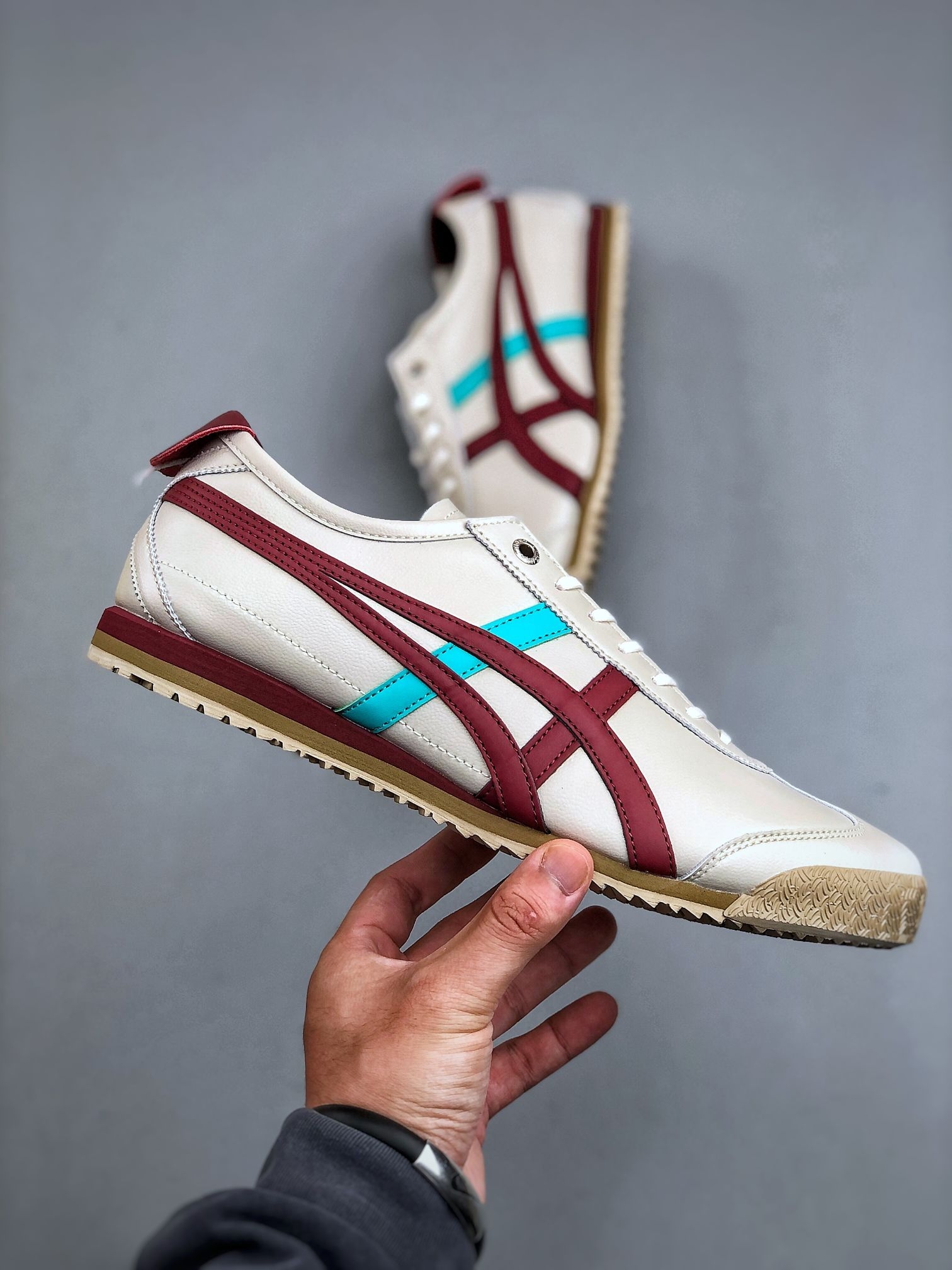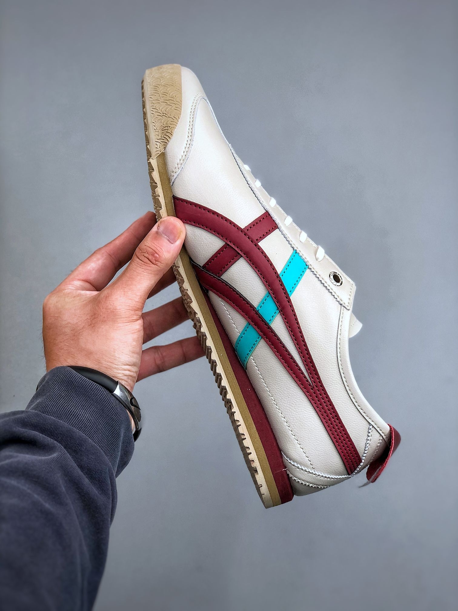 我妹想买一双“不会错的小白鞋”,要求是:别太运动,能搭裙子也能配裤子,最好还有点故事。我几乎没犹豫,就指了指鬼塚虎这双MEXICO 66。它可能是市面上最“古早”的小白鞋之一,但恰恰是这份资历,让它成了不会出错的那个选项。 它给你的第一份礼物,是“辨识度的分寸感”。 和那些纯白板鞋不同,它侧边那两道酒红与宝蓝的条纹,像一句低调的自我介绍,瞬间就和满大街的空白区别开来。我妹后来告诉我,就是这个设计...