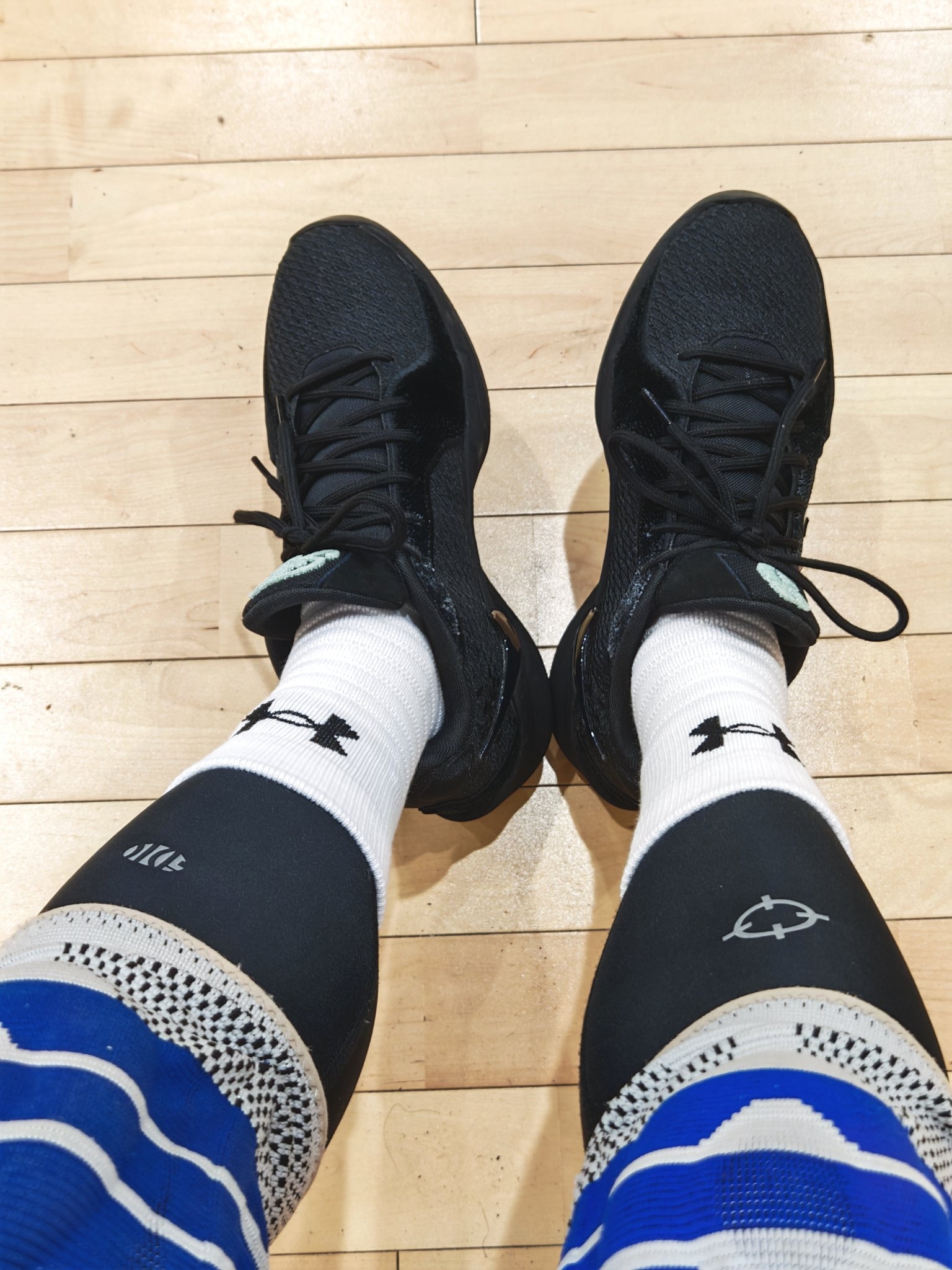 越是胶着的局,越得讲究点“仪式感”。 今天这身行头,专门为硬仗准备。穿上我心爱的Sabrina2“黑标”,配一双全新的UA篮球,包裹感直接拉满,袜筒的压缩带锁得很牢,做急停跳投时,脚在鞋里一点都不打滑。毛巾底的厚度刚刚好,既缓震又不会觉得闷脚,打一下午实战,足底的反馈依旧在线。 顺带夸一句手里这个UA头箍,拿到手里第一感觉就是轻,戴在头上几乎没存在感,完全不会像传统头箍那样勒得脑门疼。面料亲肤...