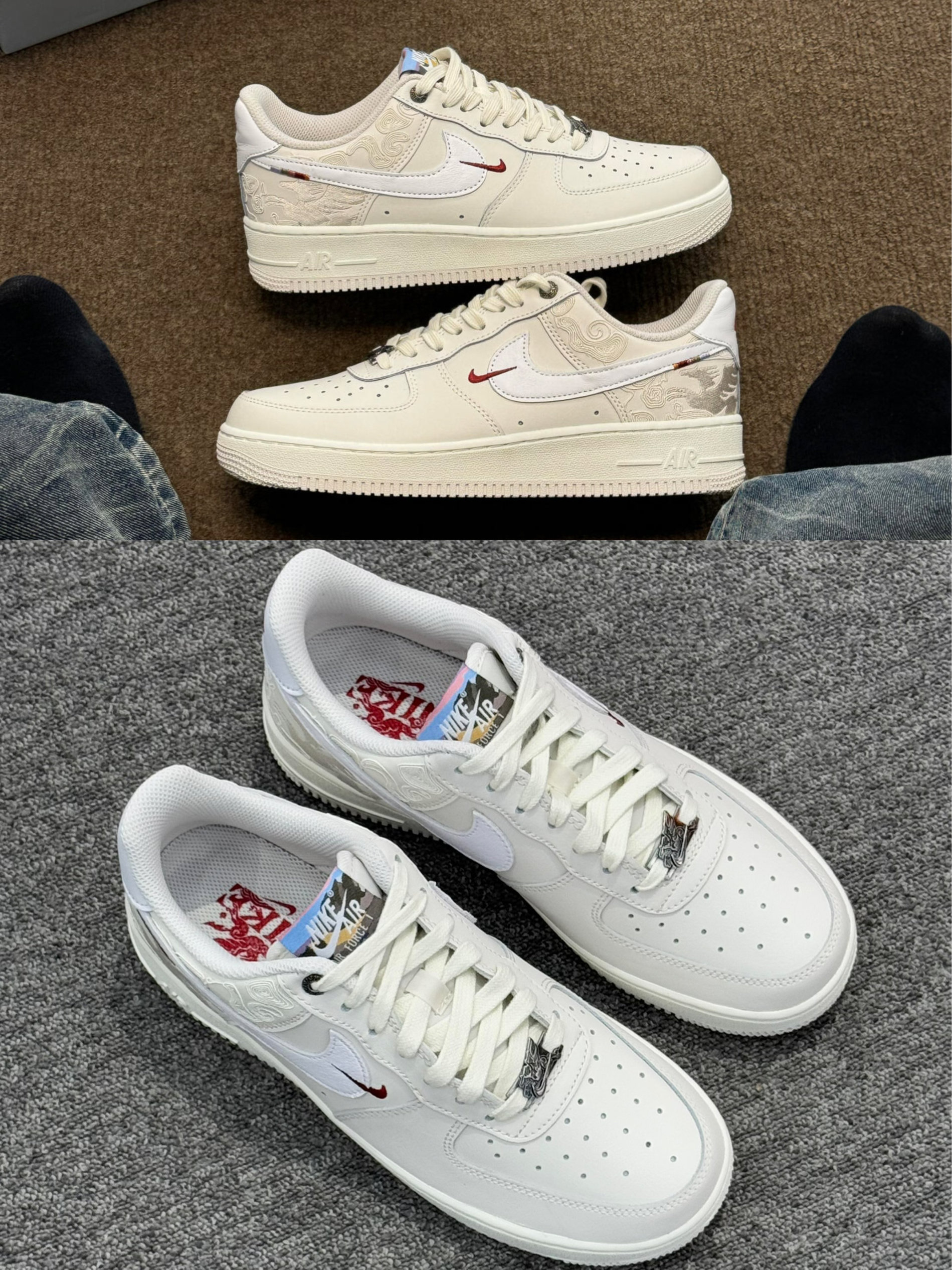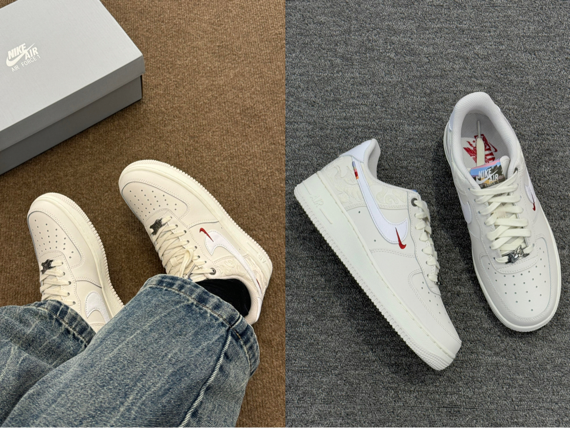 马年入手这双空军一号真的很合心意,米白底色搭配鞋侧暗纹,红勾细节藏着马年的喜庆,不张扬却很有心意。上脚脚感软糯,日常走久了也不累,皮质鞋面用软布擦拭就能保持干净。搭配牛仔裤出门,不管是日常通勤还是出门拍照,都能穿出马年专属的清爽质感,越看越耐看。