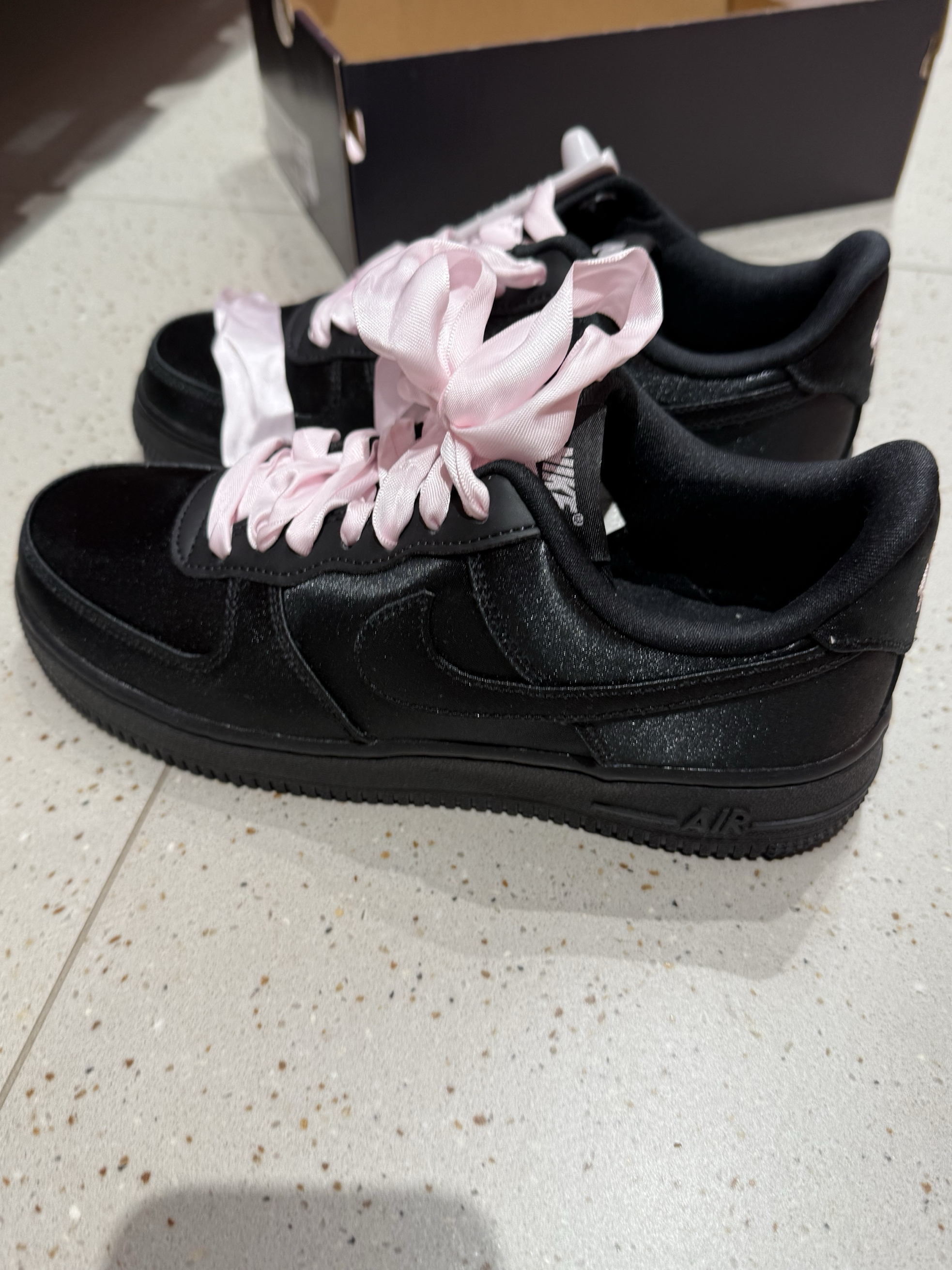 我这双是丝绒质感的鞋面,摸起来滑溜溜的,自带细腻光泽感,全黑底色配上粉嫩嫩的丝带鞋带,甜酷感直接拉满!我搭黑裙、工装裤都超绝,走在路上回头率直接翻倍✨ 上脚第一周我还担心会磨脚,结果发现鞋里的软垫特别软,穿一天逛展都不累,而且丝绒面比皮面耐脏多了,不用天天擦。唯一要吐槽的是丝带鞋带有点容易散,我每次出门都要重新系一遍😂 #黑丝绒AF1 #甜酷穿搭 #少女心鞋子 #真实上脚体验 #本命鞋分享