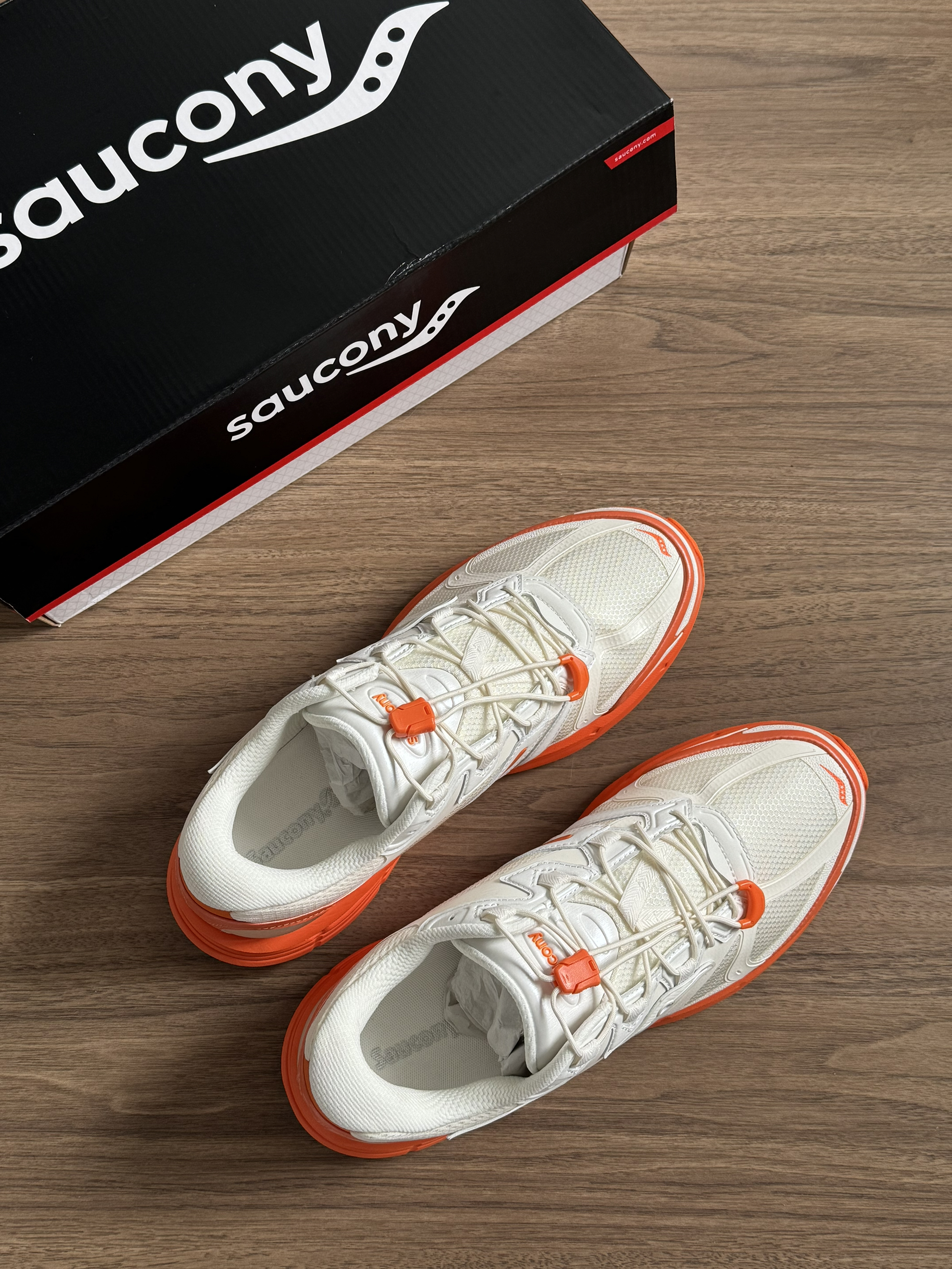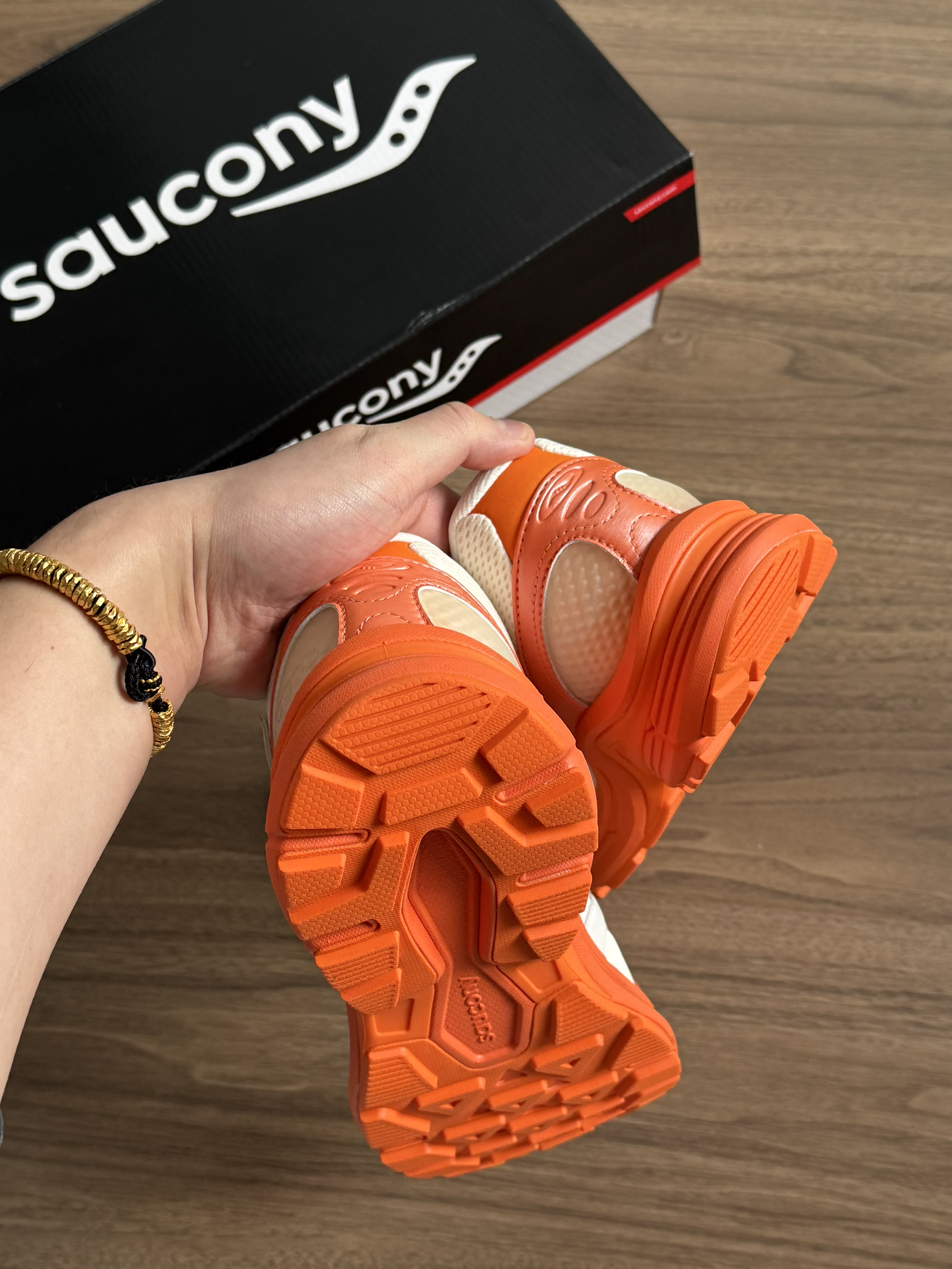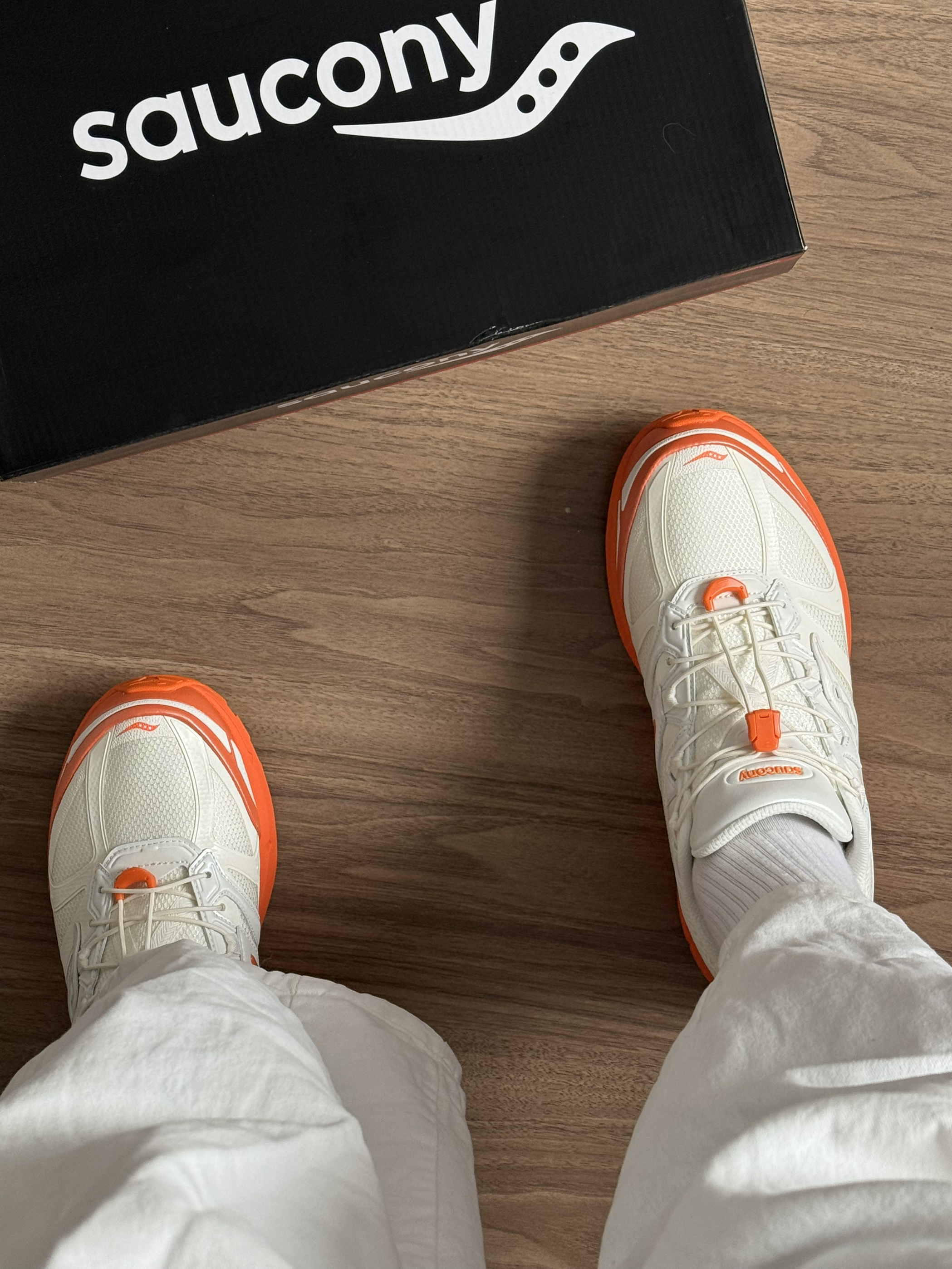 别再穿全白鞋了👋 这双Saucony的奶白+亮橙低饱和不挑皮🍊 上脚直接白两个度! 鞋底点缀活力,日常出街回头率超高📷