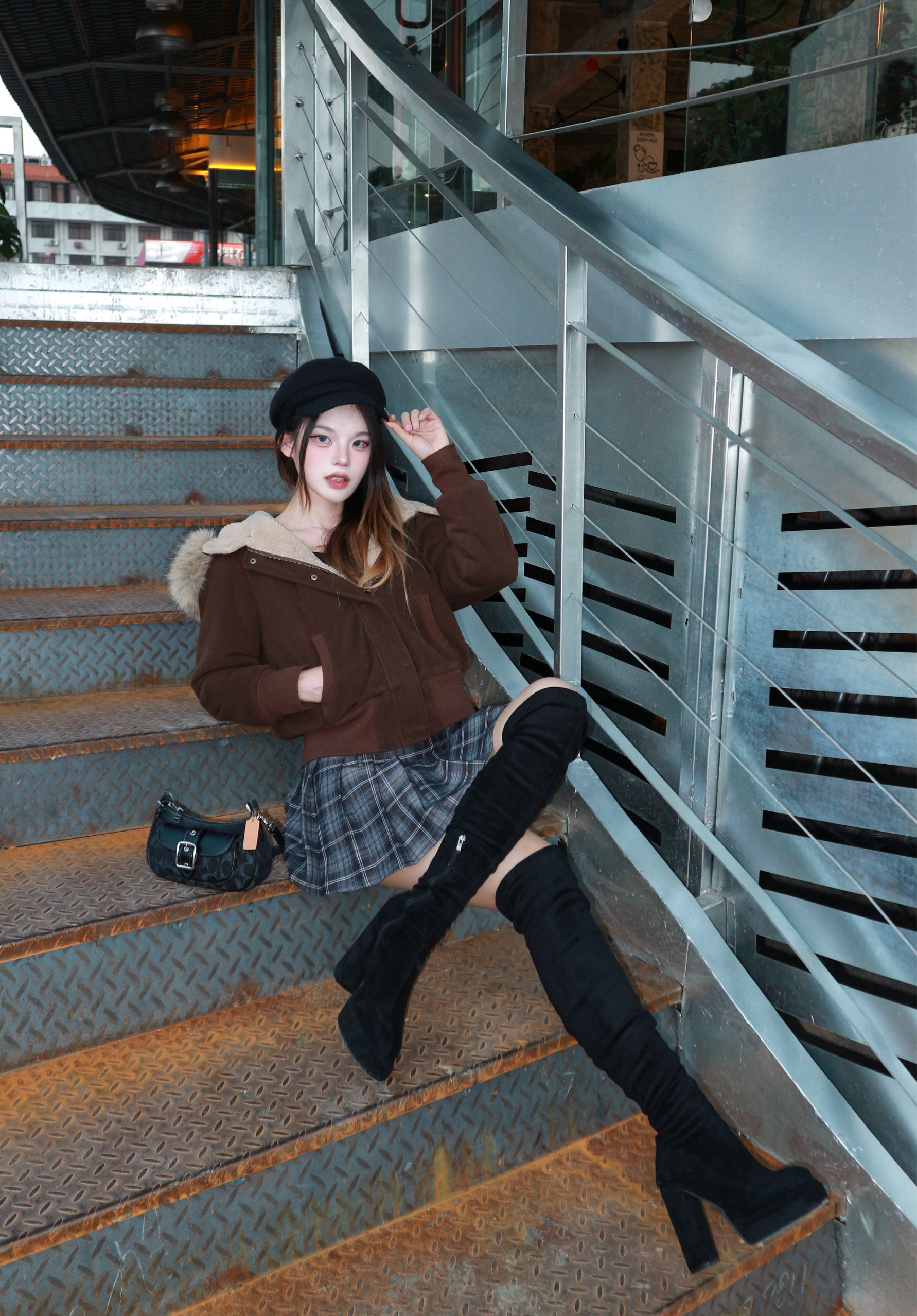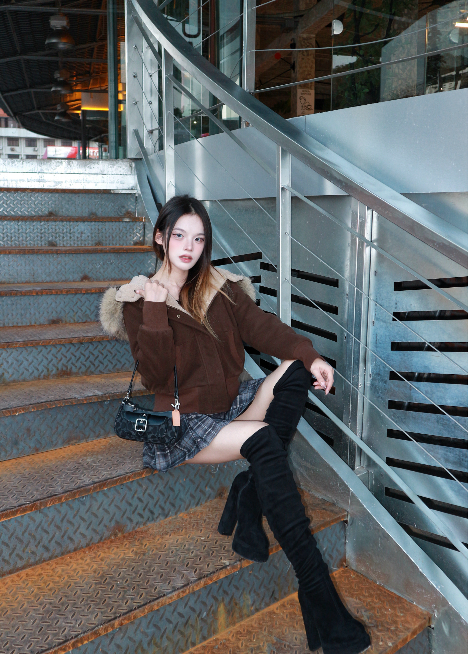 我今天的风格是韩系千金穿搭💕 焦糖色短外套+格纹百褶裙,再配上这只黑色腋下包,复古感up⬆️ 包身的经典老花压纹,低调又有质感,斜挎或单肩都很随性。💼 不管是日常通勤还是周末探店,都能轻松hold住各种场合,秋冬氛围感稳稳拿捏住了~ #