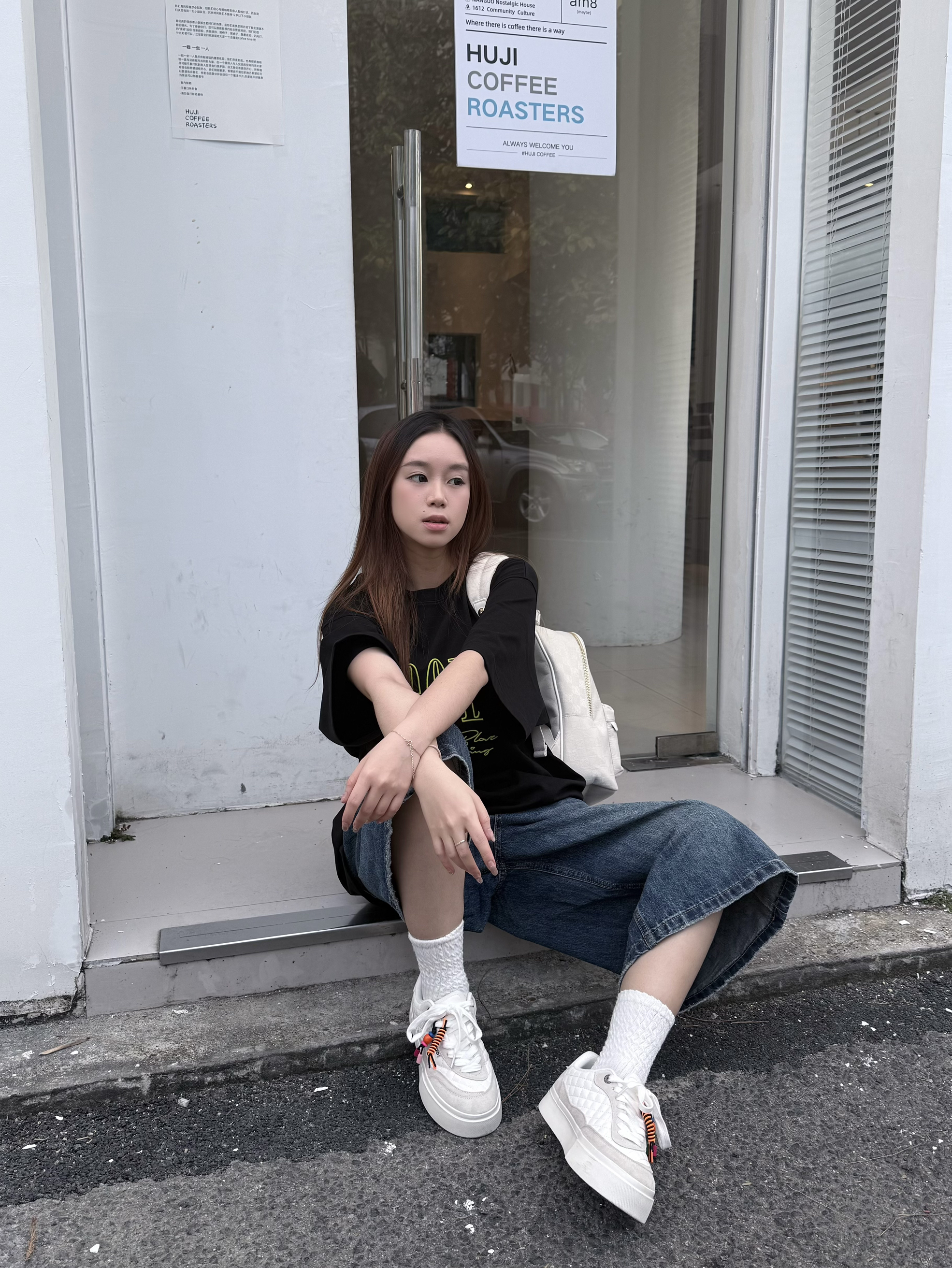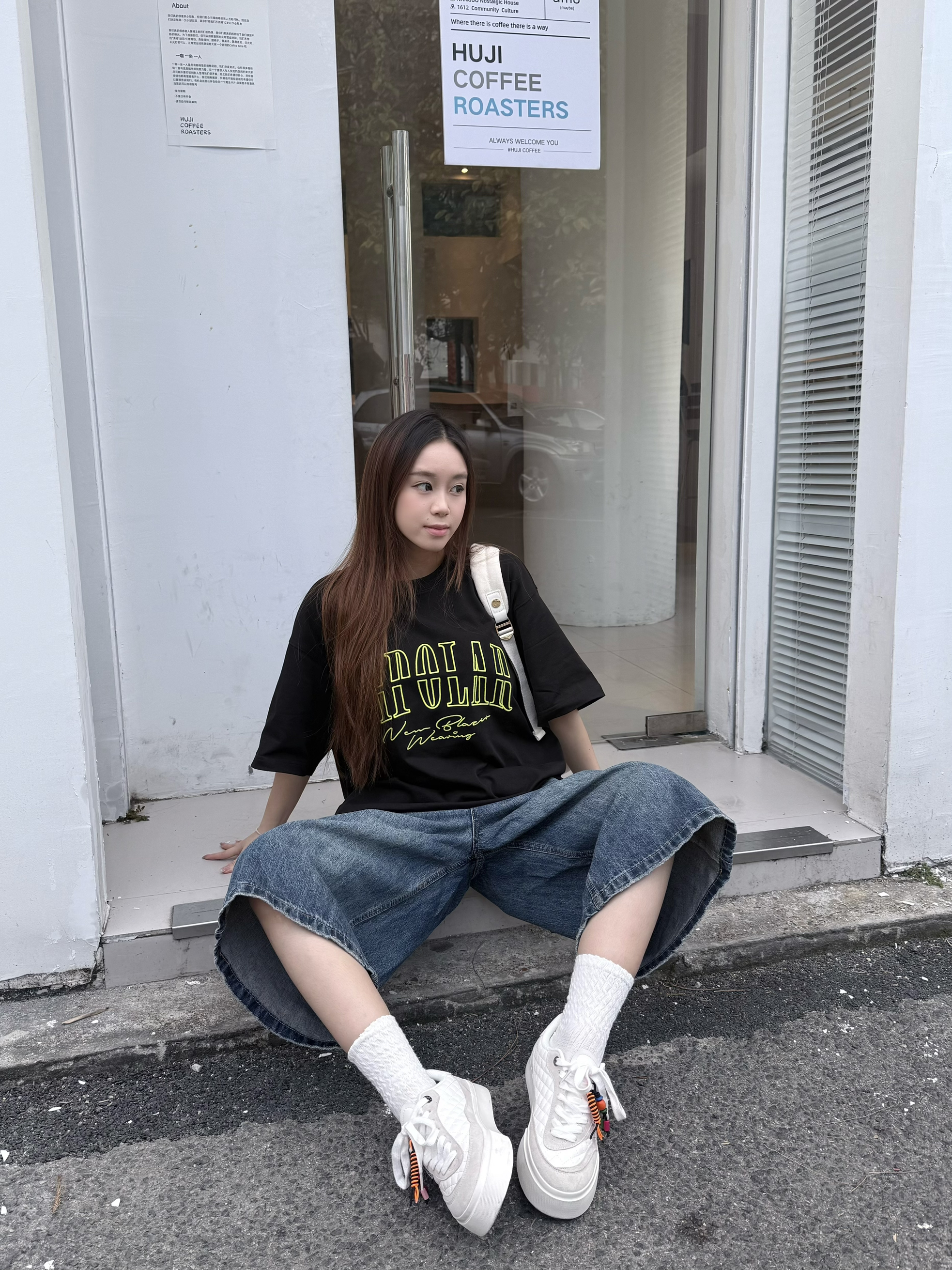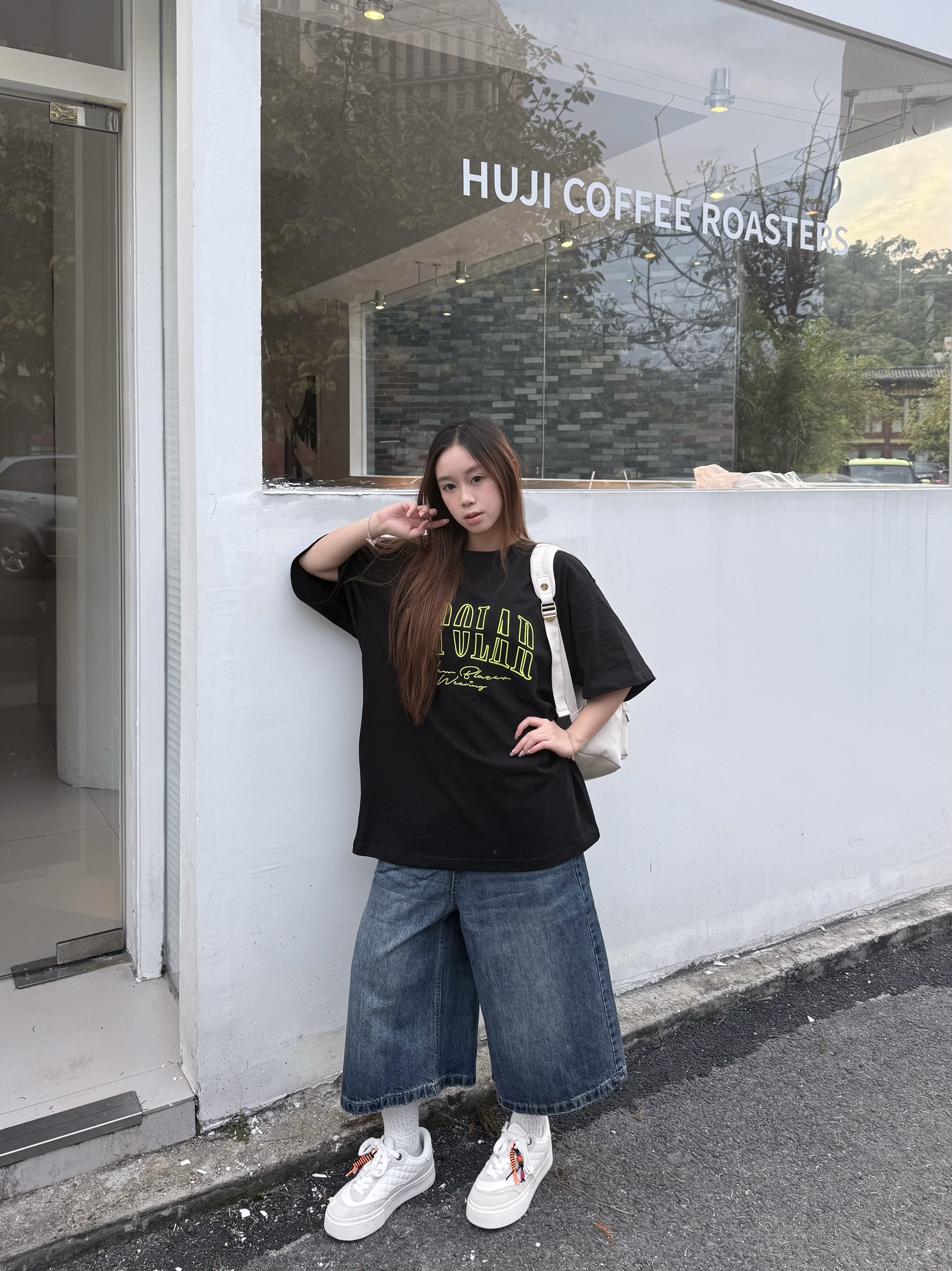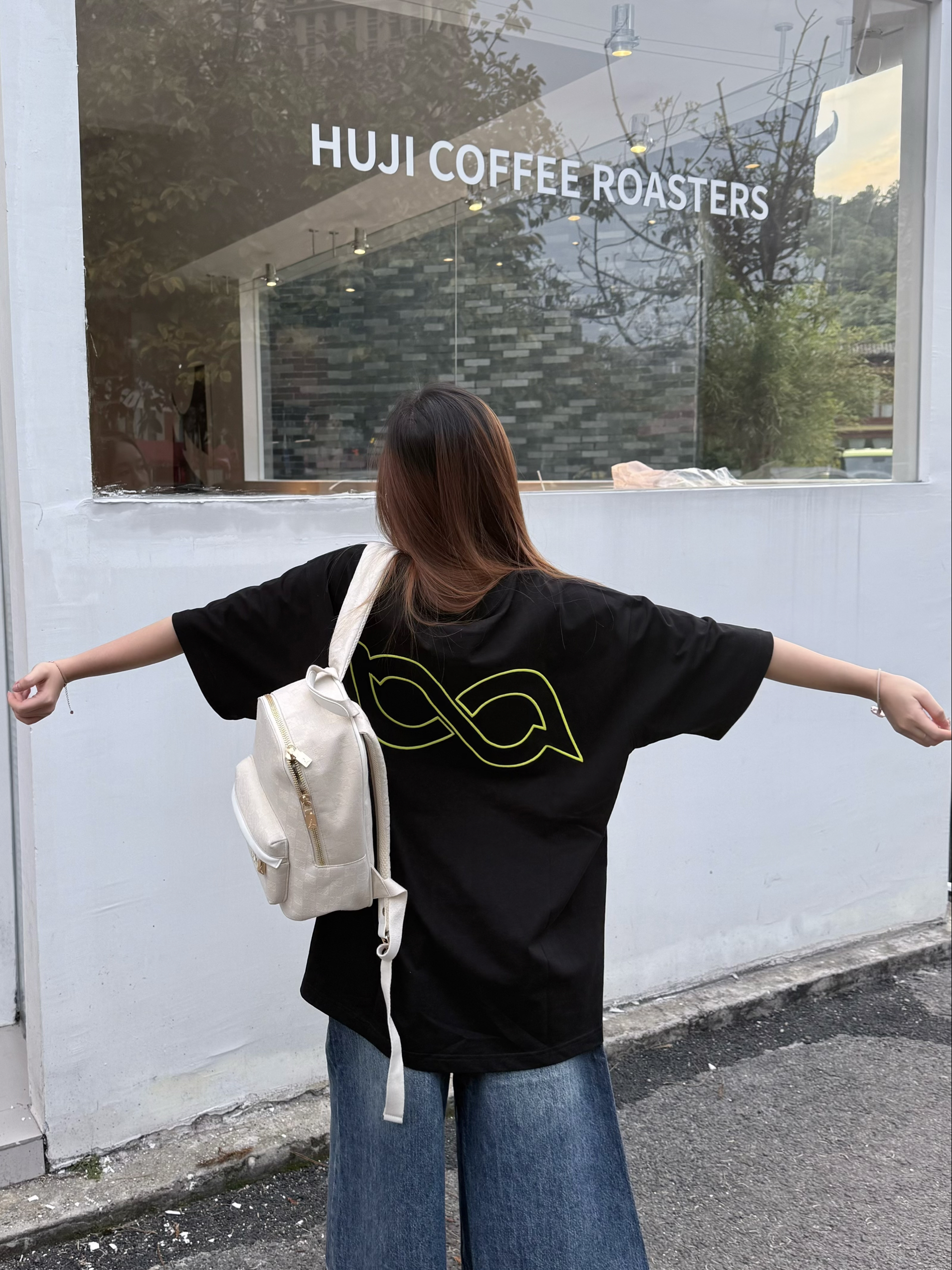 这套穿搭的帅气不用我多说了吧~ 上衣bipolar家,黑色和荧光绿搭配在一起清爽好看🍃 下装配条九分牛仔裤特别有校园感 我160/45kg穿这件最小码是刚刚好的 衣服能盖完整个臀部 大家搭配短裙也很🉑!