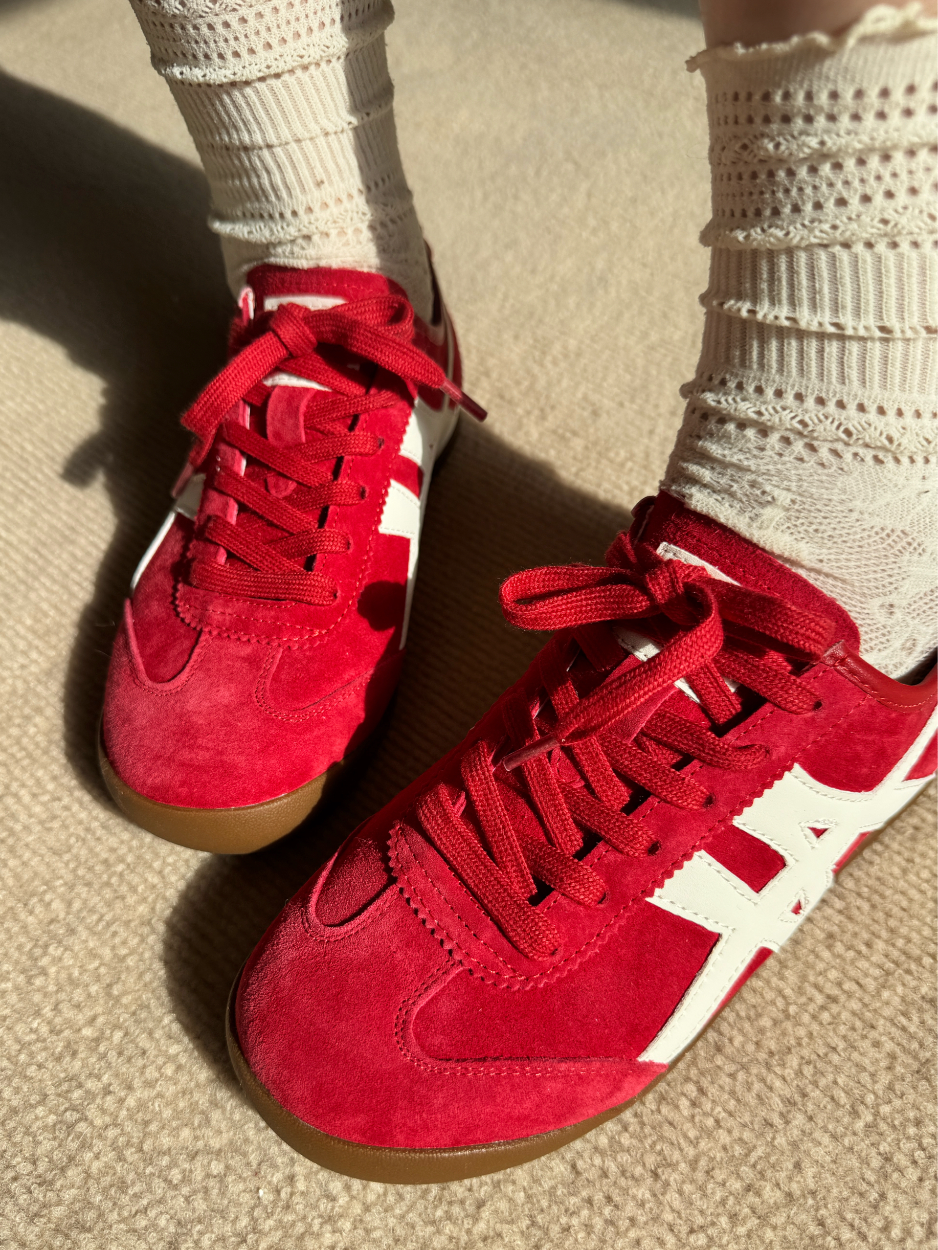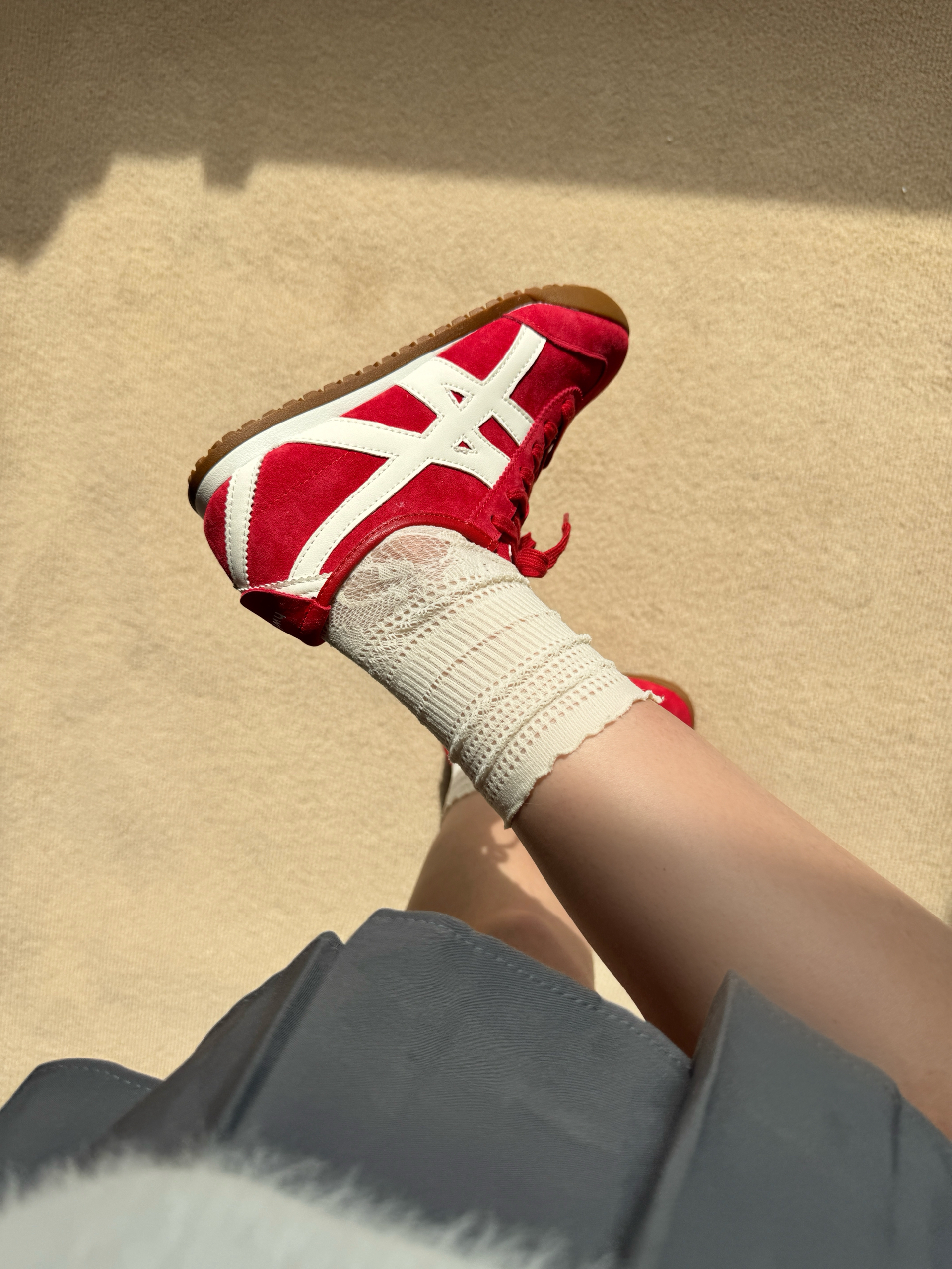同学,你的这双德训鞋好好看🤩 今天第一天去学校 就有同学问了我这双复古德训鞋 这双鞋不是那种很纯正的大红色 而是带点复古色调的砖红色🌈 2️⃣厘米的跟高让整个鞋子整体干净利落 很适合春天🌱 这个鞋子的鞋垫真的很软很有弹性 像一个会回弹的小云朵☁️ 复古🧱红会比想象的更好搭一些 搭配白色堆堆袜或者牛仔裤 都给整身的穿搭加了一层活力,满满的滤镜✨