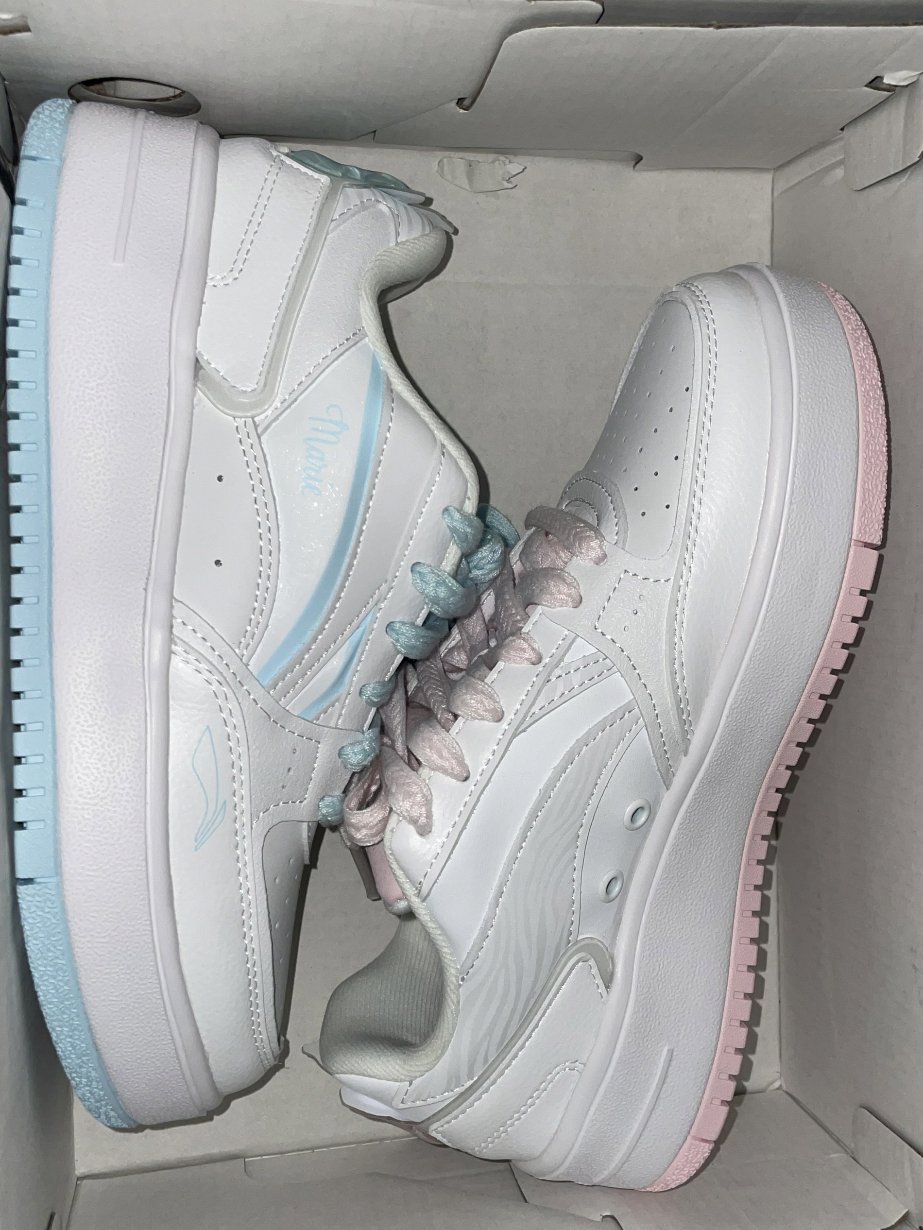 实物🉑真嘟比图片好看多啦! 白色搭配浅蓝色!夏天的感觉哇,蓝天白云映在眼前 这双板鞋来说说脚感叭,上脚挺舒适的,不磨脚哟,日常穿搭通勤一点问题都没,搭配起来也是简单,不用刻意搭配都很好看