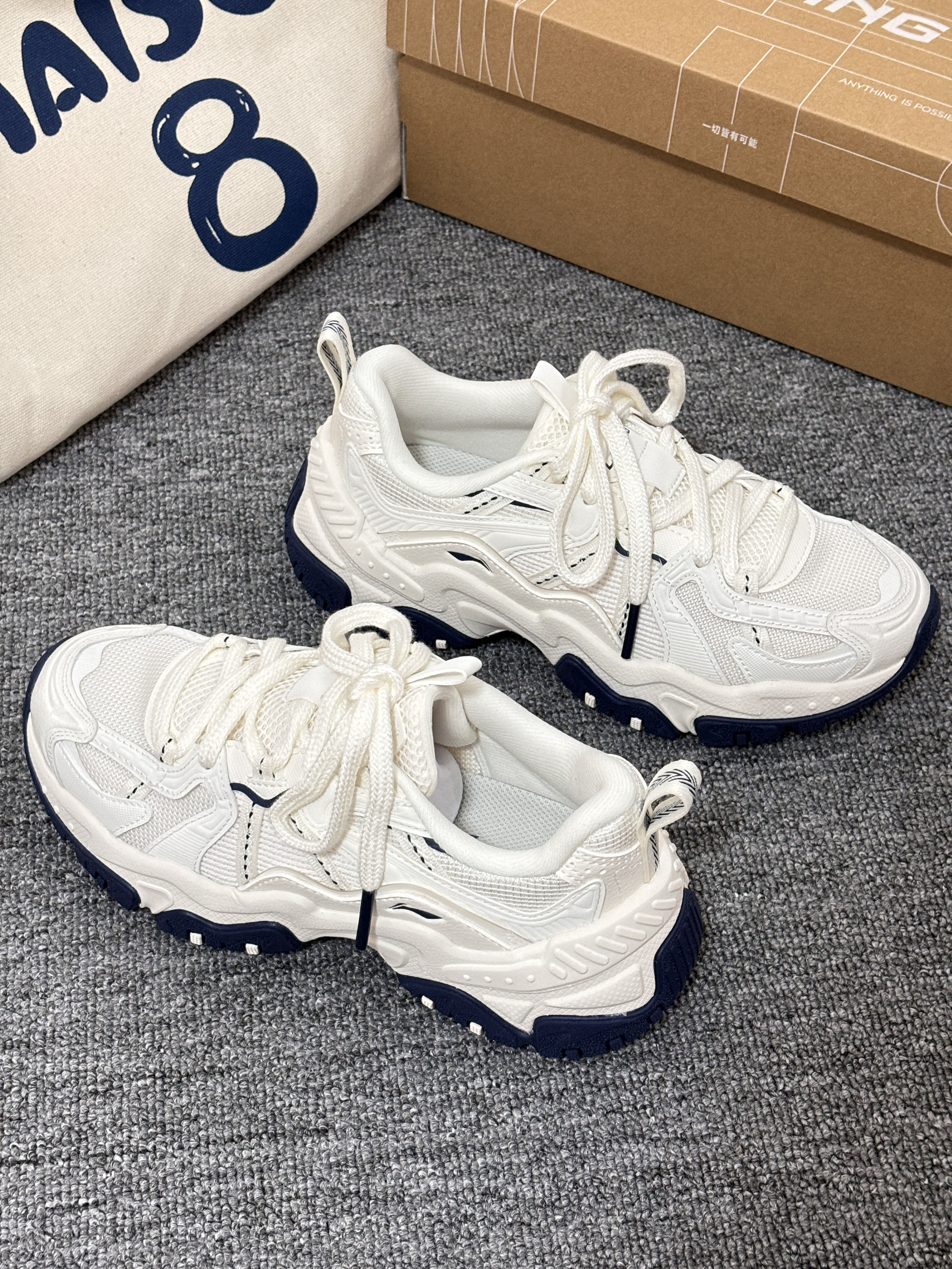 蓝白配色蛮有少年感 配色简单干净,日常真的百搭 鞋面做了网眼透气,不会捂脚 鞋型还蛮修饰脚型,轻便舒适 搭配小裙子、休闲裤都好看 码数标准,按照日常选就可以了